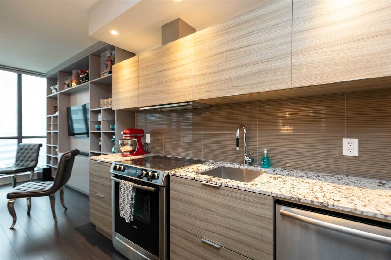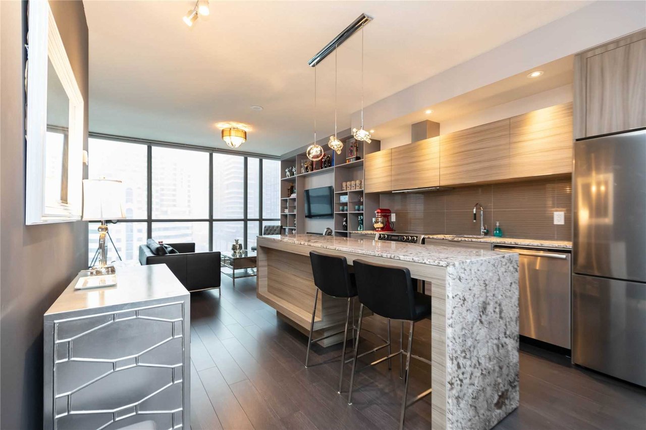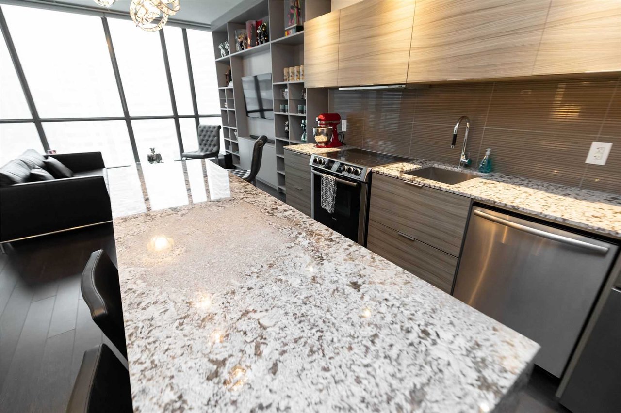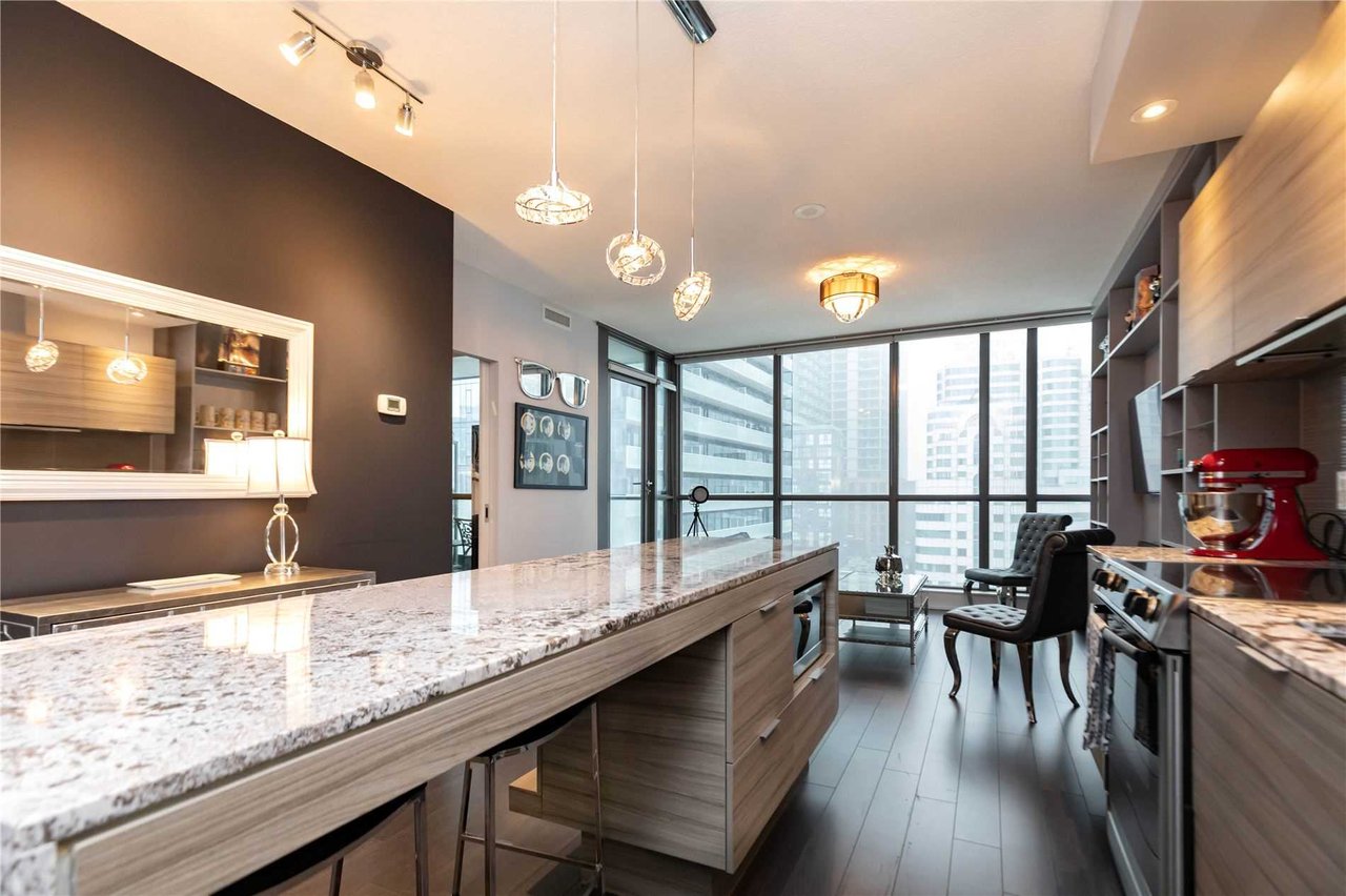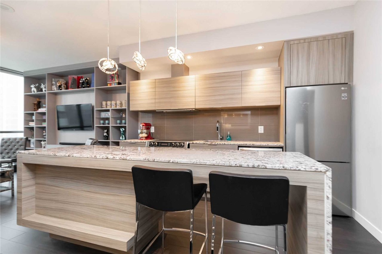 Live In The Heart Of The City! This Beautiful Updated 781 Sq Ft 1+Den Unit Has A Functional Wide Floor Plan And 56 Sq Ft Balcony. Stainless Steel Appliances, Center Island With Granite Counter Tops. Luxury Amenities: Gym, 24/7 Concierge, Visitors Parking, Party Room, Outdoor Pool And Lounge, Steam Room. Unit Includes: Parking & Locker!