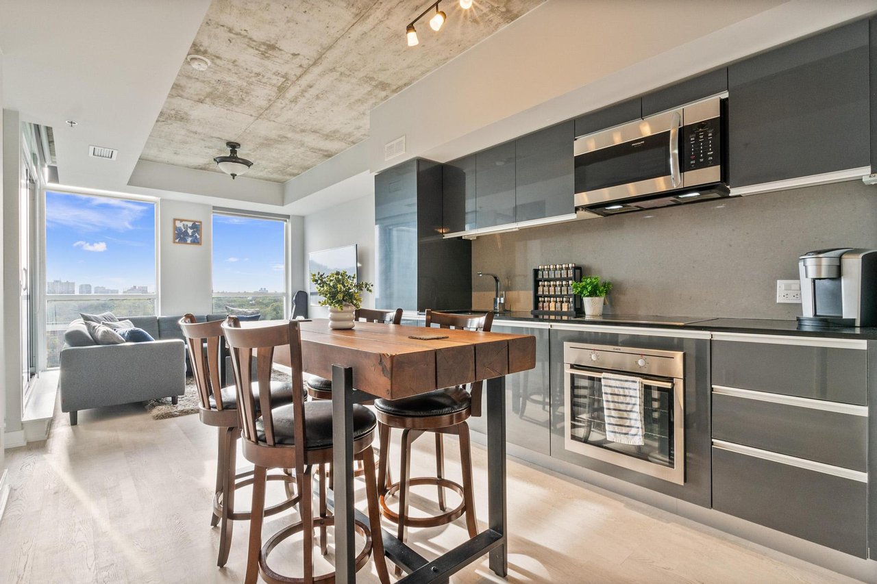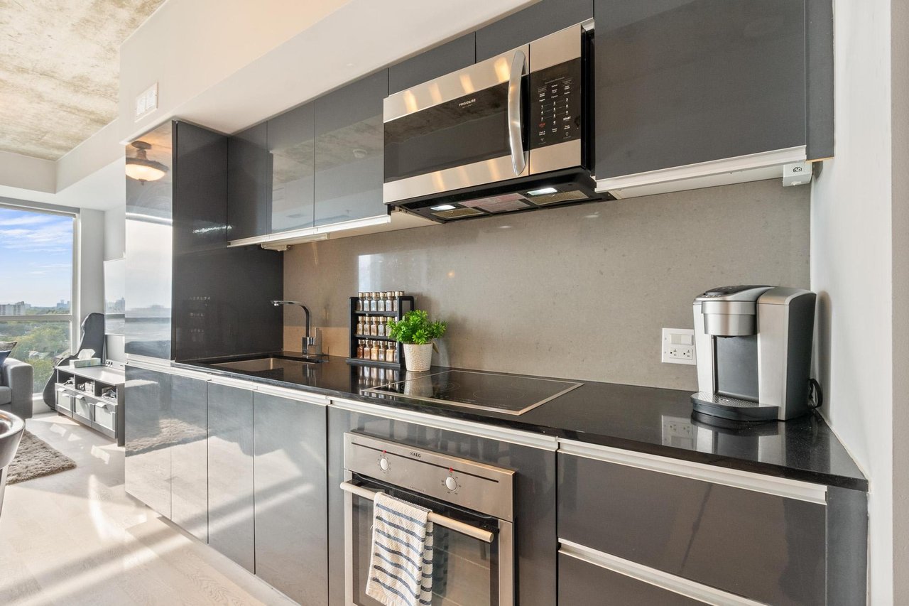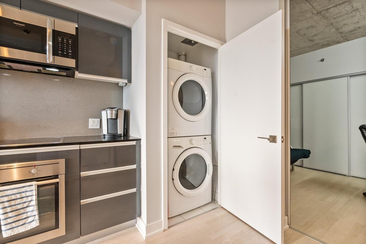 Perfectly Designed Split 2 Bedroom 2 Full Bathroom Suite At The Ever Popular Carnaby Located In The Heart Of Queen West. This Suite Feature 9" Exposed Concrete Ceilings, Large Window, Modern Finished With A Full Size Kitchen, Engineered Hardwood Throughout And Great West View For Those Beautiful Sunsets. Two Sleek Bathrooms Mean No Fighting For Mirror Time. The Building Features 24 Concierge, Amazing Gym With A Yoga Room, Massive Rooftop Terrace With Loungers, Tables And BBQ's As Well As An Incredible Party Room For Hosting Gatherings And Visitor Parking. Starbucks, Metro And Dollar Store Are Located In The Building With Direct Access For Super Easy Living. You'll Be Steps From All The Best Lounges, Cafes, Resto's Of Queen West And Ossington St!! Multiple TTC Stops Are Just Outside The Front Door And You'll Be Super Close To The Gardiner For Easy Commuting Not To Mention The Future King Liberty Smart Track Station That Will Be A 3 Min Walk Away. Parking & Lock Included.