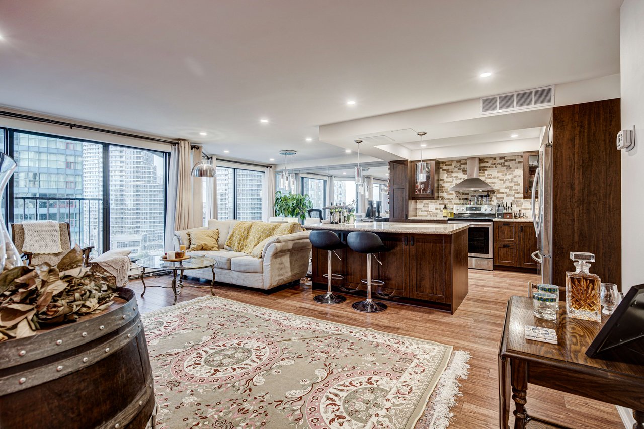 Waterfront Living At It's Finest! Completely Updated And Renovated 1 Bedroom Unit For Lease At Harbour Square Including 1052 Sq Ft, Parking Locker & All Inclusive Utilities. This Unit Has Been Tastefully Renovated W/ Open Concept Layout, Gourmet Kitchen, Island, Walk-In Closet & Floor To Ceiling Windows Exposing South West Views Of The Garden, Lake & City. Amenities Include 60ft Pool, Roof Top Garden, Gym, Squash Courts & Much More With A Prime Location!