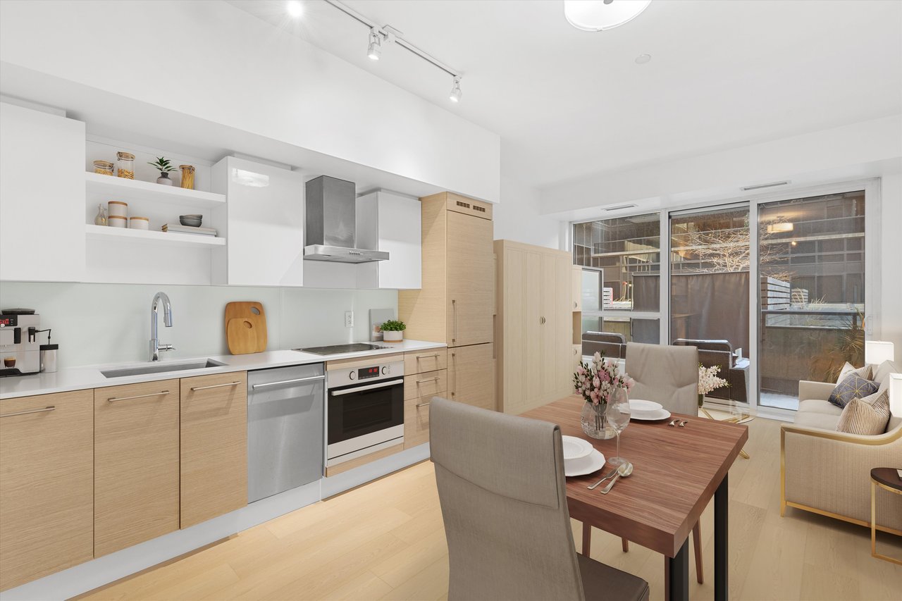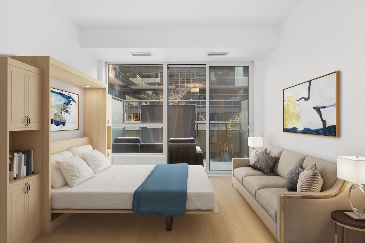 Refined and fully refreshed studio residence at the highly regarded DNA3 Condos, set in the heart of King West. This thoughtfully designed suite showcases floor-to-ceiling windows, brand new wide-plank vinyl flooring, fresh paint throughout, and new contemporary window coverings. The sleek, modern kitchen is outfitted with a new Fulgor Milano wall oven and cooktop, delivering both style and performance.A private terrace extends the living space outdoors, offering an ideal setting for entertaining or quiet moments. Residents of DNA3 enjoy premium amenities including a fully equipped fitness centre, rain room, private movie theatre, rooftop terrace with BBQs, party and entertainment lounge, concierge service, and visitor parking.Street-level retail provides everyday convenience with a grocery store and Tim Hortons at your doorstep. Exceptional connectivity with public transit immediately outside the building, seamless access to major highways, Liberty Village, and the downtown core. Well-managed building with low maintenance fees.An excellent opportunity for a discerning end-user or investor seeking a sophisticated urban lifestyle in one of Toronto's most dynamic neighbourhoods.