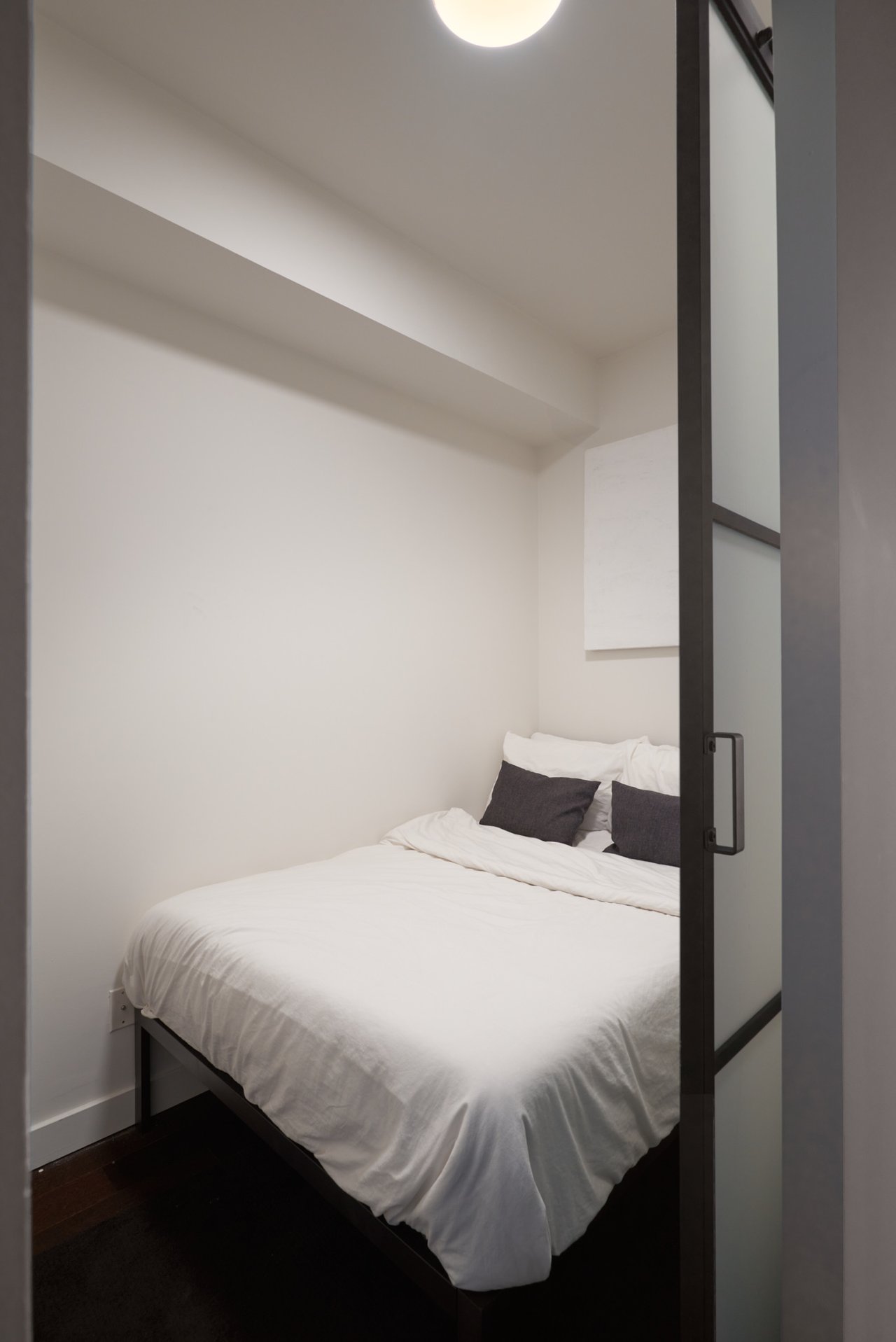 ceilings on both levels and keyless code entry. The second floor offers a spacious primary bedroom with large closets, and a versatile den currently set up as a second bedroom (fits a double bed). Stylish, luxurious bathroom included. Fully furnished, with a queen/double bed, just