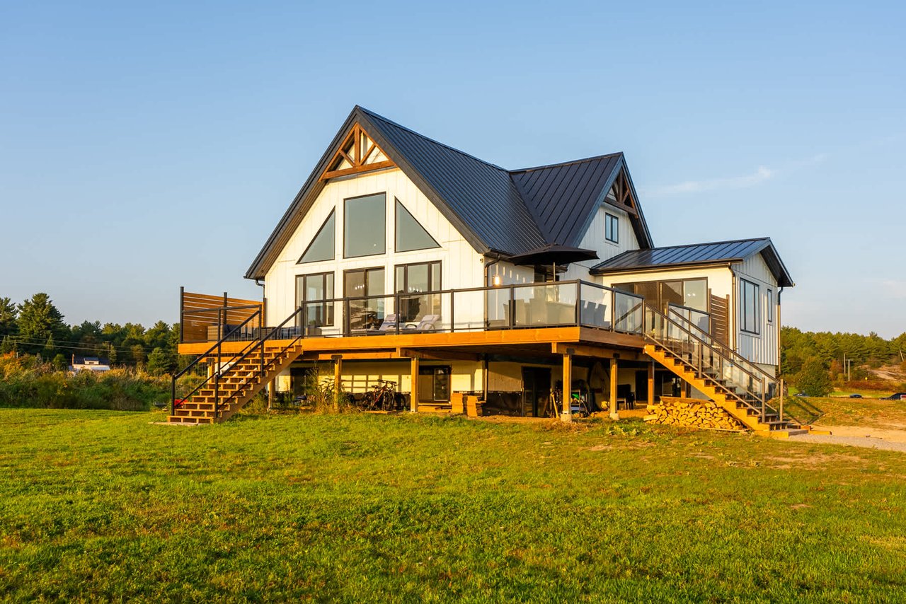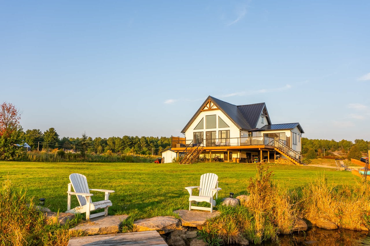 Exquisite Custom-Built Waterfront Home On Doe Lake! This Magnificent, Newly Constructed Home On Doe Lake Offers An Unparalleled Waterfront Lifestyle, Featuring 417 Feet Of Pristine Southwest Frontage. With Its Flat Lot, Perfect For Outdoor Activities, This Property Invites You To Enjoy A Wide Range Of Leisure Pursuits, From Swimming To Boating To Fishing, All In The Comfort Of Your Private Retreat. Elegantly Designed, This Home Features 4 Spacious Bedrooms And 3 Beautifully Appointed Bathrooms. The Open-Concept Living Area Is Designed For Modern Living, With A Seamless Flow Between Spaces, Vaulted Ceilings, And Expansive Windows That Frame Panoramic Southwest Views. A Propane Fireplace On The Main Floor Adds Warmth And Charm To The Living Space, While The Wraparound Deck Offers The Perfect Vantage Point For Taking In Stunning Sunsets Over The Lake. The Gourmet Kitchen, Fitted With Premium Frigidaire Professional Stainless Steel Appliances, Including An Induction Cooktop And A Double-Wide Fridge And Freezer, Is Ideal For The Culinary Enthusiast. Its Thoughtful Layout Allows You To Prepare Meals While Soaking In The Breathtaking Views. The Main-Level Primary Suite Is A Private Sanctuary, Complete With A Luxurious Ensuite And A Walk-Through Closet With Its Own Laundry Facilities. An Additional Large Main-Floor Office Easily Provides The Perfect Working Space Or Can Be Used As A Bedroom. The Lower Level, Featuring 9-Foot Ceilings And Prepped For In-Floor Heating, Offers Expansive Space For Future Development. Already Roughed-In For An Additional Bedroom, Den, Laundry/Bathroom Combo, And Storage, The Basement Is A Blank Canvas. Set In A Highly Desirable Location Just 10 Minutes From Gravenhurst And All Amenities, This Remarkable Property Combines The Tranquility Of Lakeside Living With The Convenience Of Modern Life. Whether You're Looking To Entertain Or Simply Relax, This Home Is The Perfect Setting For Creating Lasting Memories By The Water.