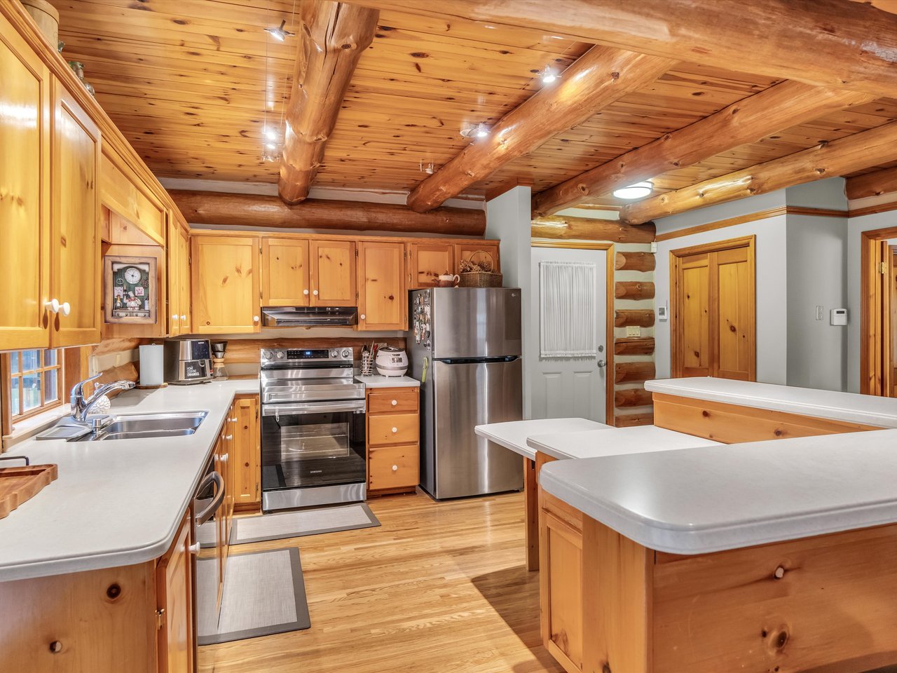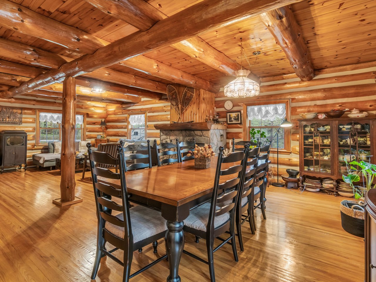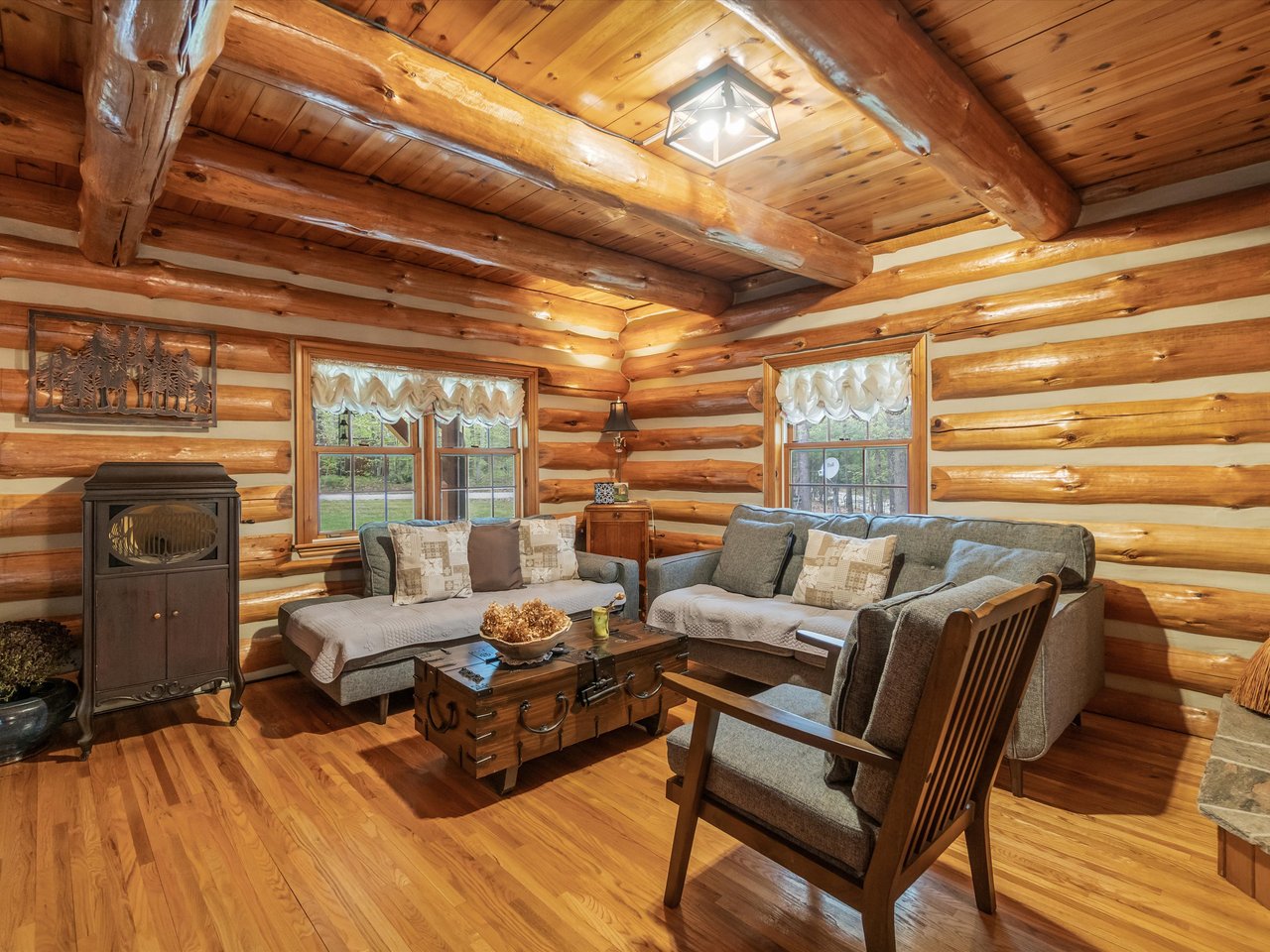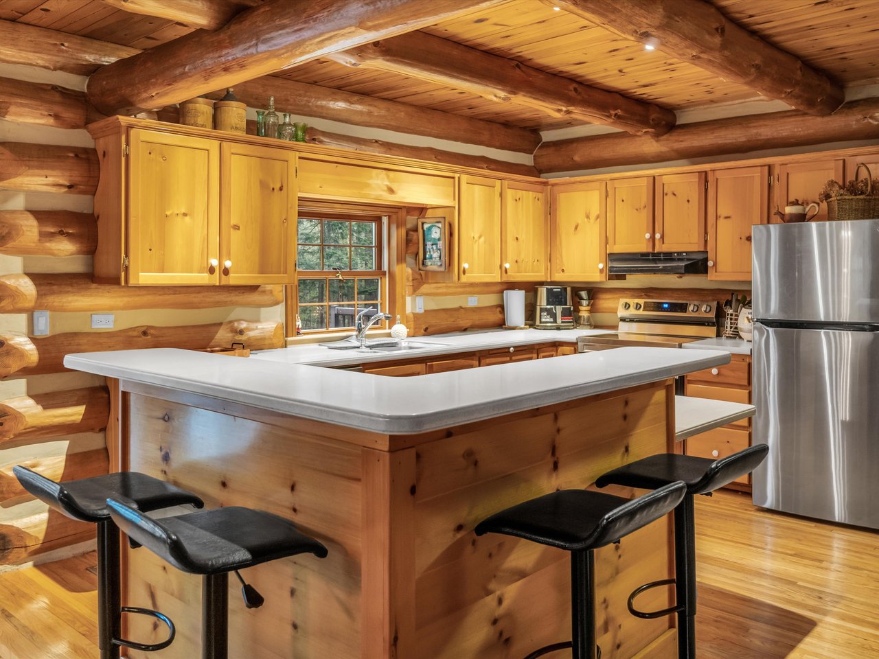 Welcome to this truly exceptional, custom-built log home, lovingly maintained by its owners. Nestled at the end of a quiet street on nearly 1.5 acres, this property offers wonderful privacy and timeless Muskoka charm. Featuring 3 bedrooms and 3 fully finished levels, including a bright walkout basement, this home showcases quality craftsmanship throughout, from the beautiful round log construction to thoughtful updates like a steel roof in 2015. The property also includes a double car garage, a spacious paved driveway, and two handy storage sheds. Inside, youll immediately feel the warmth and character of the impressive log interior. The main floor offers a seamless flow from the inviting living area with beautiful wood burning stone fire place to the large back deck, perfect for outdoor dining and entertaining. Upstairs, youll find three comfortable bedrooms, while each level of the home is conveniently served by a generously sized bathroom. The lower level walkout basement provides excellent additional living space, featuring a cozy rec room, a home office, and direct access to the private backyard. Whether youre relaxing indoors or enjoying the natural surroundings, this home delivers a lifestyle of peace, comfort, and character. All of this, just minutes from launching your boat on beautiful Kahshe Lake and only 10 minutes to the Town of Gravenhurst, where you'll find shopping, dining, and everyday essentials plus easy access to explore the open waters of Lake Muskoka. If you love log homes, this one will exceed your expectations.