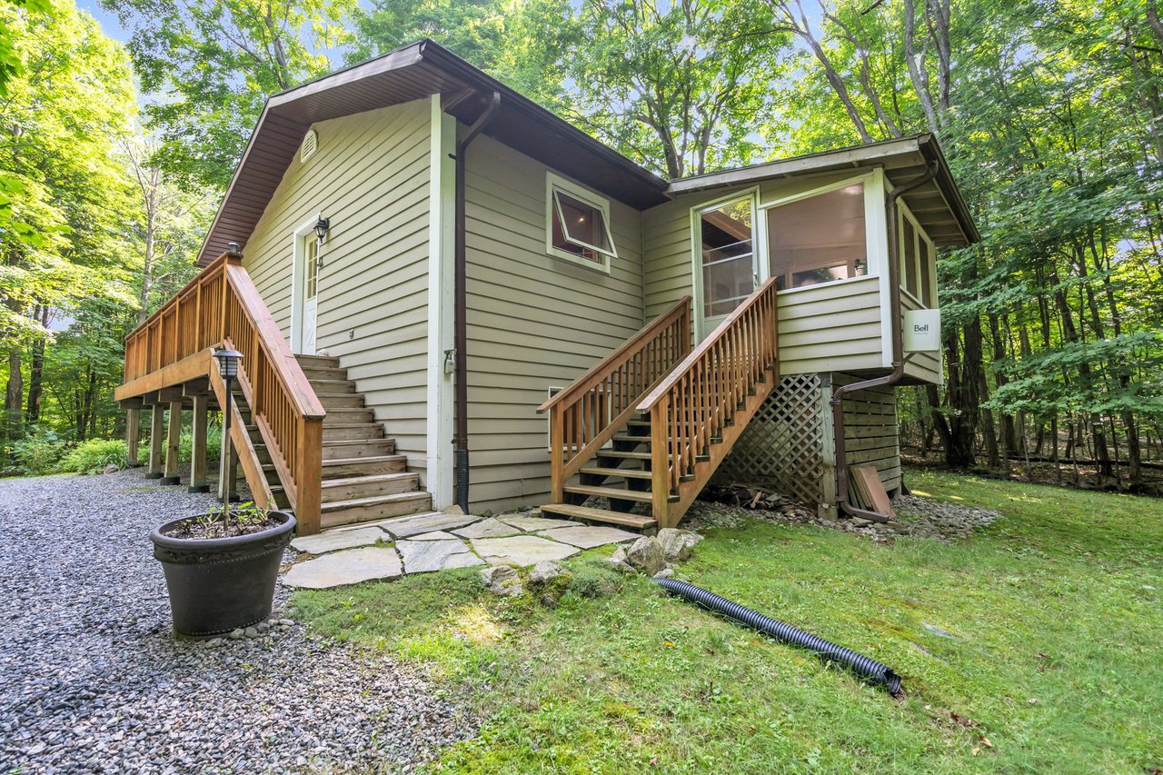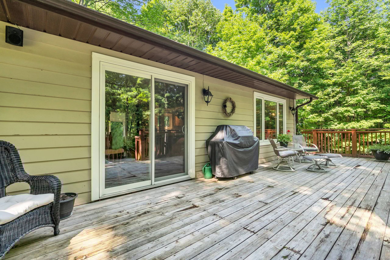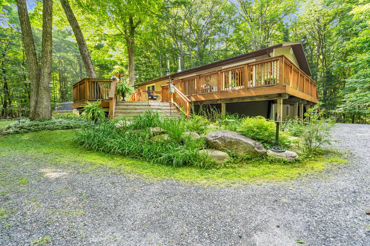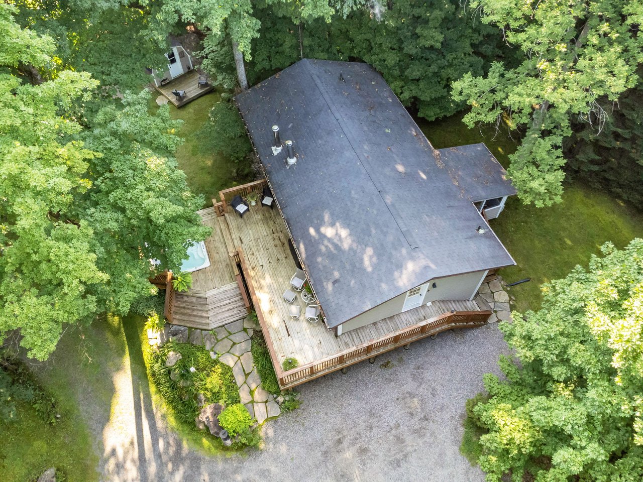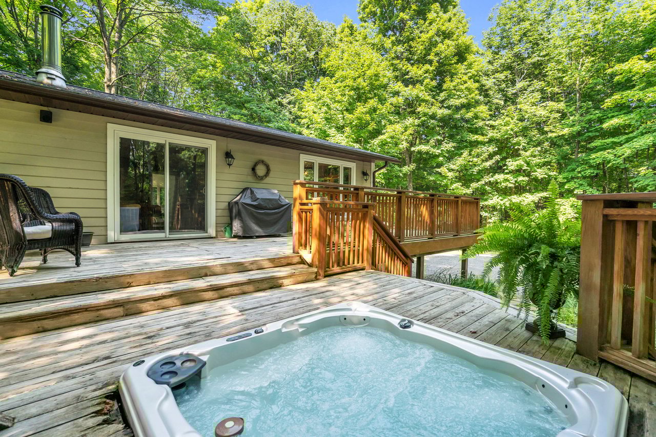 Welcome To This Enchanting Retreat, Nestled On 4.3 Acres In The Heart Of Muskoka, Just 15 Minutes From Port Carling. This Unique 2-Storey Raised Bungalow Blends Seamlessly With The Lush Muskoka Forest, Offering A Tranquil Escape From Everyday Life. As You Ascend The Winding Driveway, You'll Feel A Sense Of Privacy, Perfect For Unwinding. The Front Deck, With Its Sunken Hot Tub, Provides An Ideal Spot To Relax And Take In The Natural Beauty Around You. Inside, The Open-Concept Design Creates A Spacious Atmosphere, Giving You The Feeling Of Living Among The Treetops. This 2,200 Sq. Ft. Home Features 4 Bedrooms And 3 Full Bathrooms, Including A Main Floor Primary Bedroom With A 3-Piece Ensuite. The Lower Level Includes Three Additional Bedrooms And A Recreational Room, Perfect For A Growing Family Or Guests. The Property Boasts Several Updates, Including A New Roof In 2016, A New Deck In 2010, A Hot Tub In 2009, And Updated Windows (Dining, Sliding Doors, And Primary Bedroom) In 2010. Additionally, There's A Cozy 140 Sq. Ft., 4-Season Insulated And Heated Bunkie With A Fridge, Built In 2020, Perfect For Visiting Friends Or Family. Backing Onto "The Rock" Golf Course, This Property Offers Easy Access To The Clubhouse And Fine Dining. Situated Between Lake Rosseau And Bruce Lake, It Opens The Door To The Best Of Muskoka Living. With Nearby Lake Access, This Location Is A Dream Getaway For Families Or A Great Short-Term Rental Opportunity To Add To Your Portfolio.