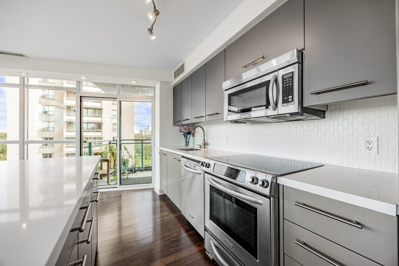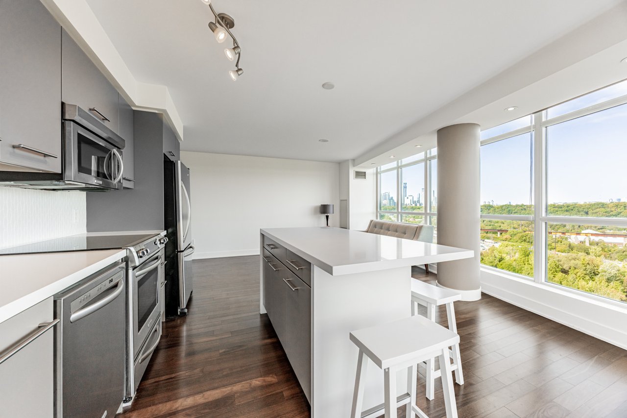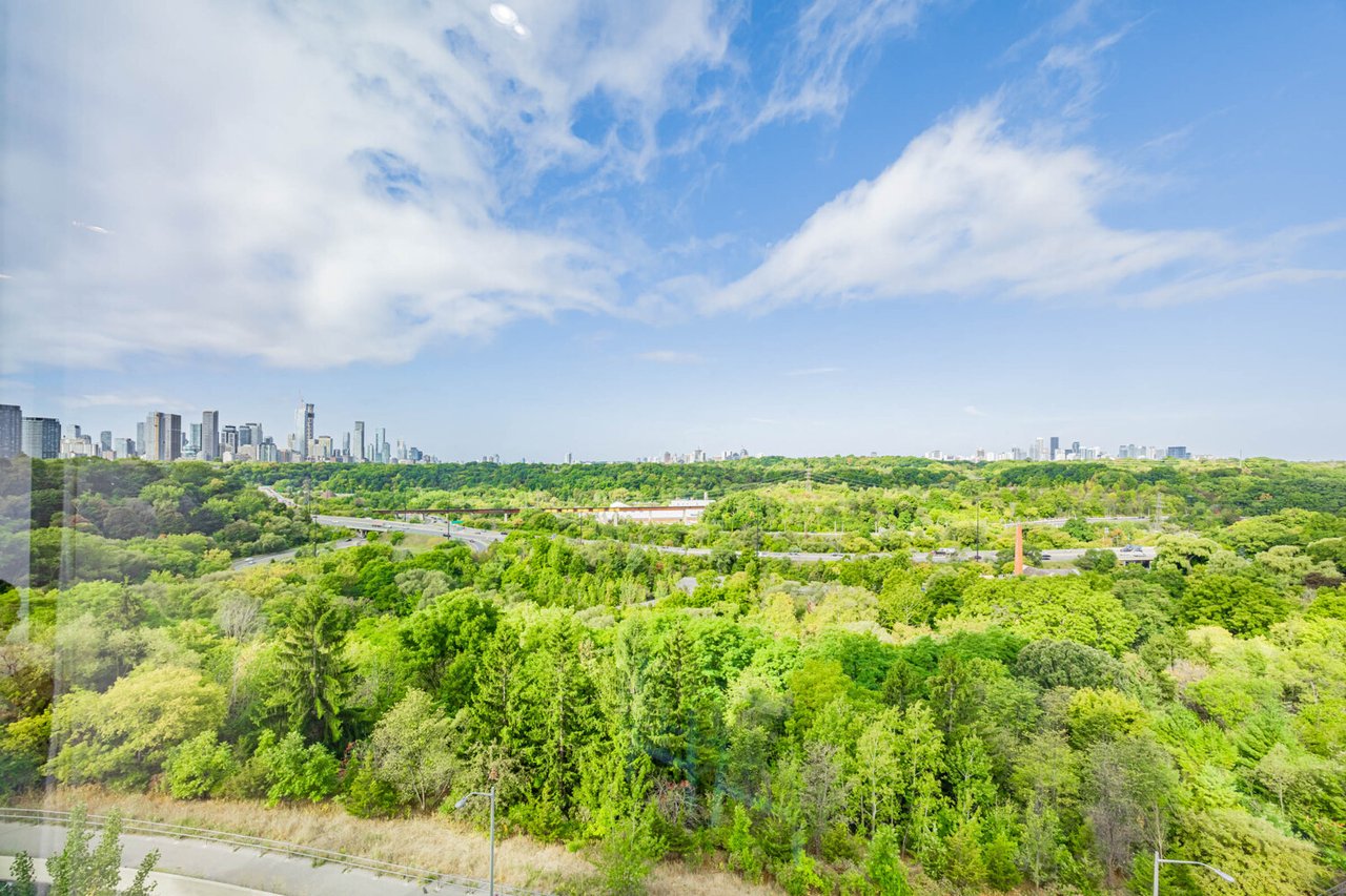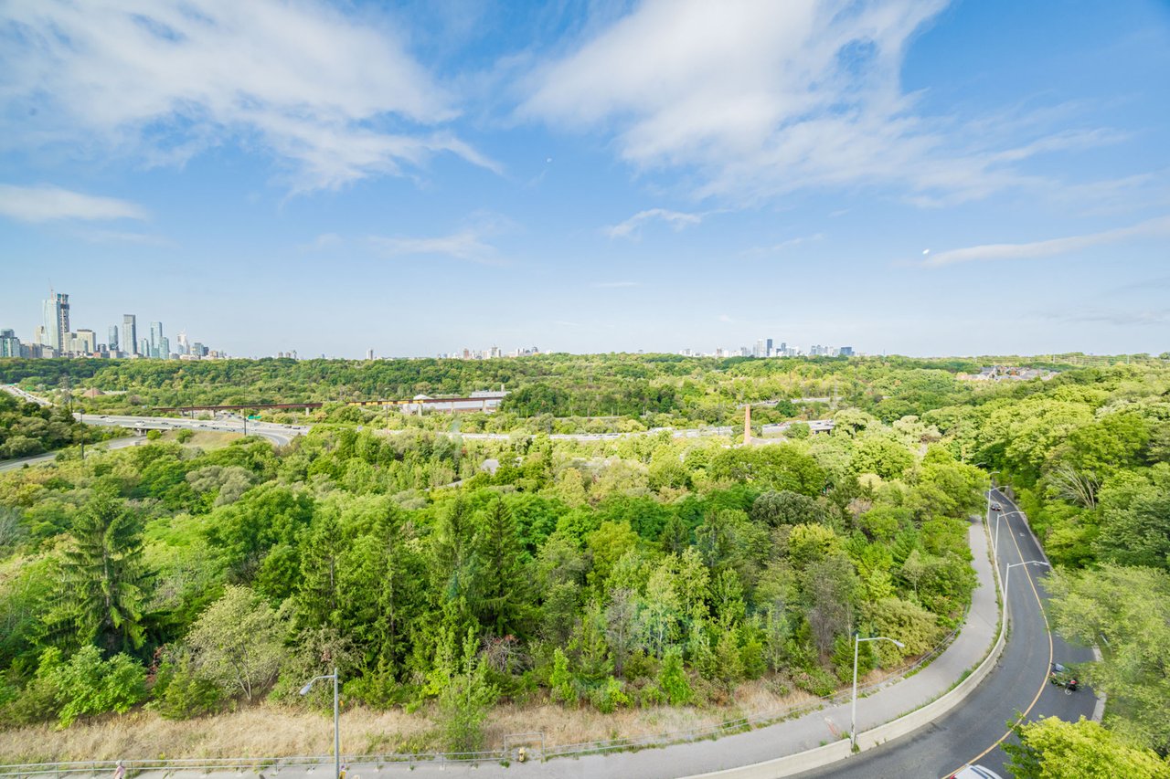 Welcome to Minto Skyy! This beautifully updated 2-bedroom condo offers breathtaking, unobstructed west-facing views of the ravine and city skyline. Enjoy golden hour sunsets from the comfort of your living room or private balcony truly a rare find! This condo boasts an updated kitchen with refreshed finishes and modern touches, seamlessly flowing into the open-concept living and dining area. The layout is ideal for relaxing or entertaining, with large windows bringing in tons of natural light. Both bedrooms are well-sized with ample closet space. The primary bedroom also has an ensuite 3-piece washroom. Minto Skyy offers a beautiful gym, sauna, party room, concierge and bike storage. Set in a desirable location close to parks, trails, Brickworks, TTC, grocery stores, and all your daily essentials. Locker and one underground parking spot included.