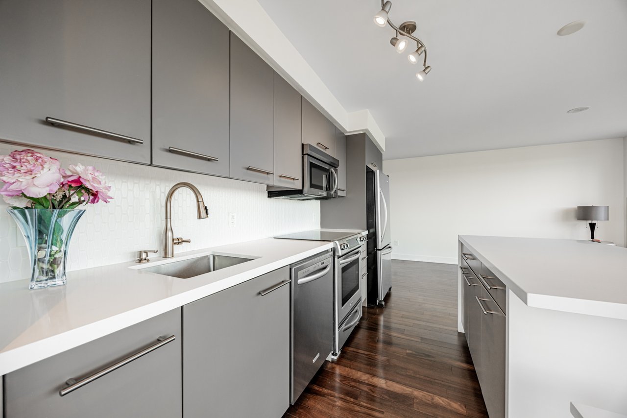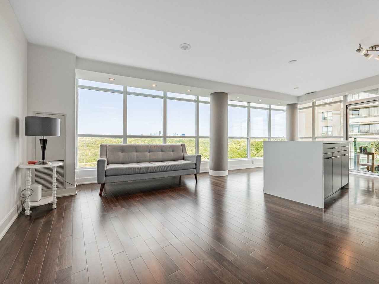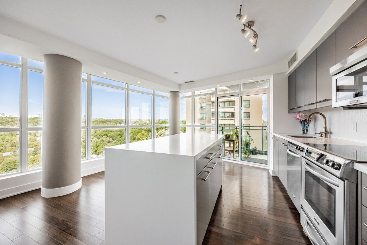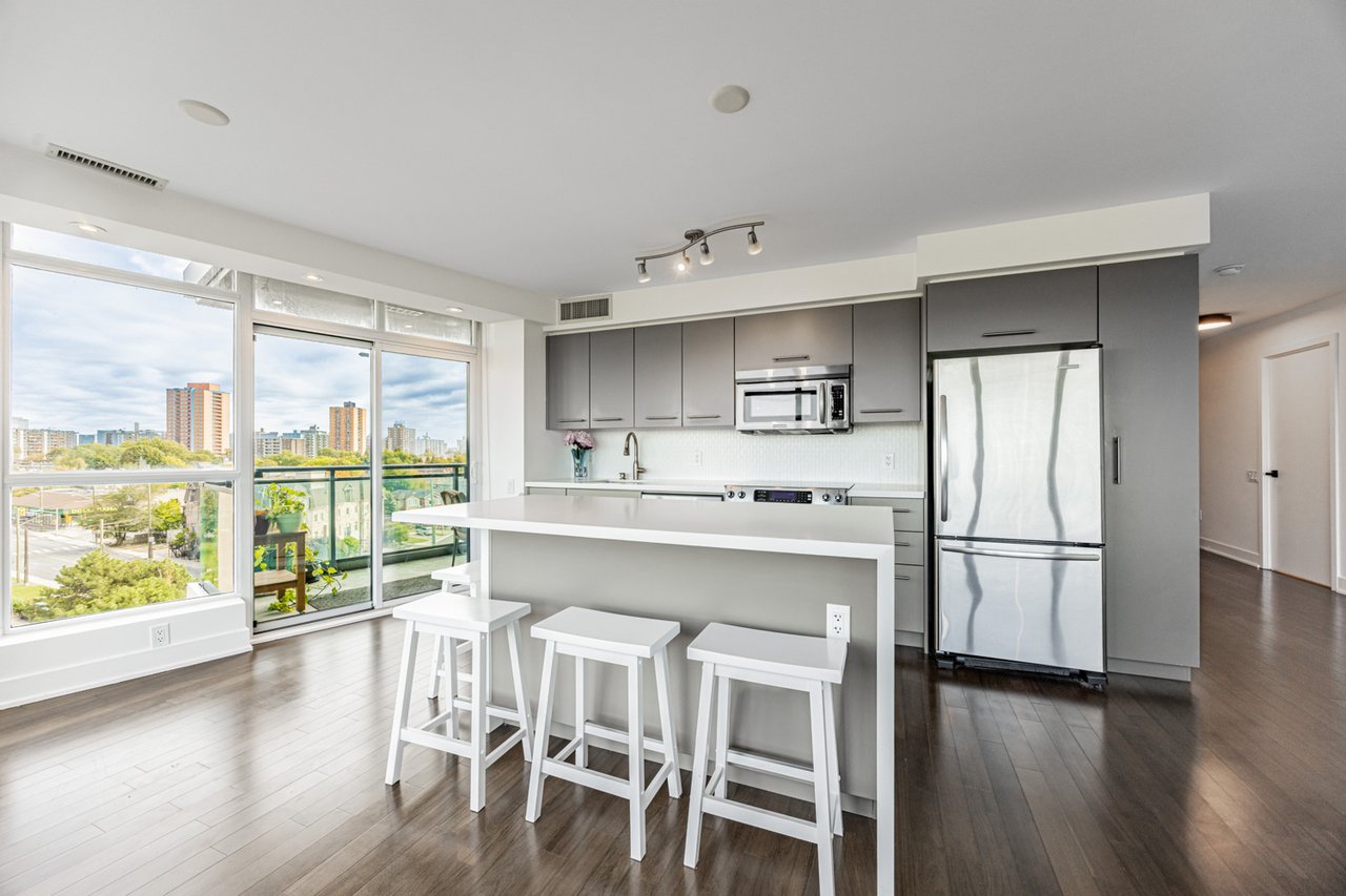 Welcome to Minto Skyy! This beautifully updated 2-bedroom condo offers breathtaking, unobstructed west-facing views of the ravine and city skyline. Enjoy golden hour sunsets from the comfort of your living room or private balcony truly a rare find! This condo boasts an updated kitchen with refreshed finishes and modern touches, seamlessly flowing into the open-concept living and dining area. The layout is ideal for relaxing or entertaining, with large windows bringing in tons of natural light. Both bedrooms are well-sized with ample closet space. The primary bedroom also has an ensuite 3-piece washroom. Minto Skyy offers a beautiful gym, sauna, party room, concierge and bike storage. Set in a desirable location close to parks, trails, Brickworks, TTC, grocery stores, and all your daily essentials. Locker and one underground parking spot included.