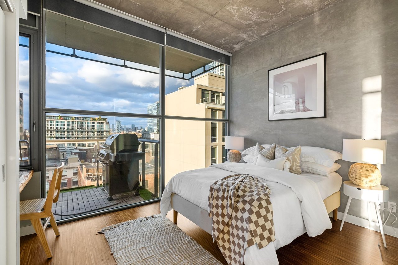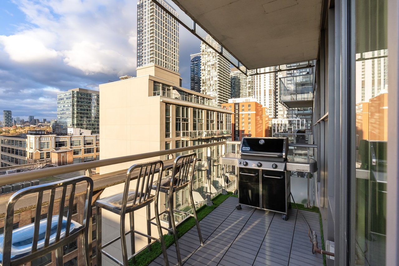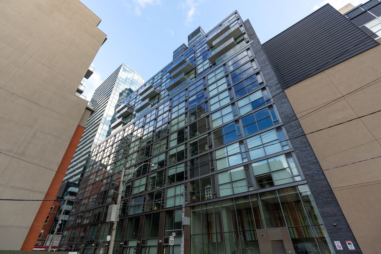 Soft Loft Dreams Are Made Of These - Welcome Home To Glas Lofts! Beautifully Appointed 2 Bedroom, 2 Bathroom Corner Suite In The Heart Of Entertainment District. Rarely Available Floorplan, Being 1 Of Only 5 In The Building - Boasts An Open Concept Living, Dining, & Modern Kitchen w/ Full Sized, Stainless Steel Appliances, Stone Countertops, & Breakfast Bar. Soaring 10ft. Ceilings + Exposed Concrete Ceilings & Feature Walls Throughout. Enjoy Sweeping North West Views From Your Oversized Balcony w/ BBQ Gas Line Hookup. Spacious Primary Bedroom Retreat Offers Sizeable Walk-in Closet & 3pc. Ensuite. Steps From Everything The Downtown Core Has To Offer - Restaurants, Cafes, Parks, TTC, & Much More!