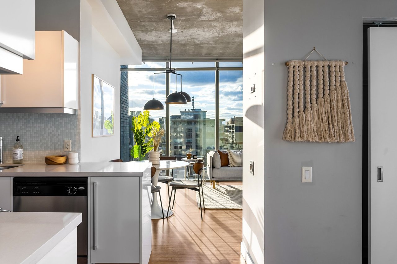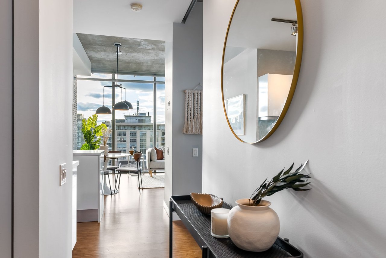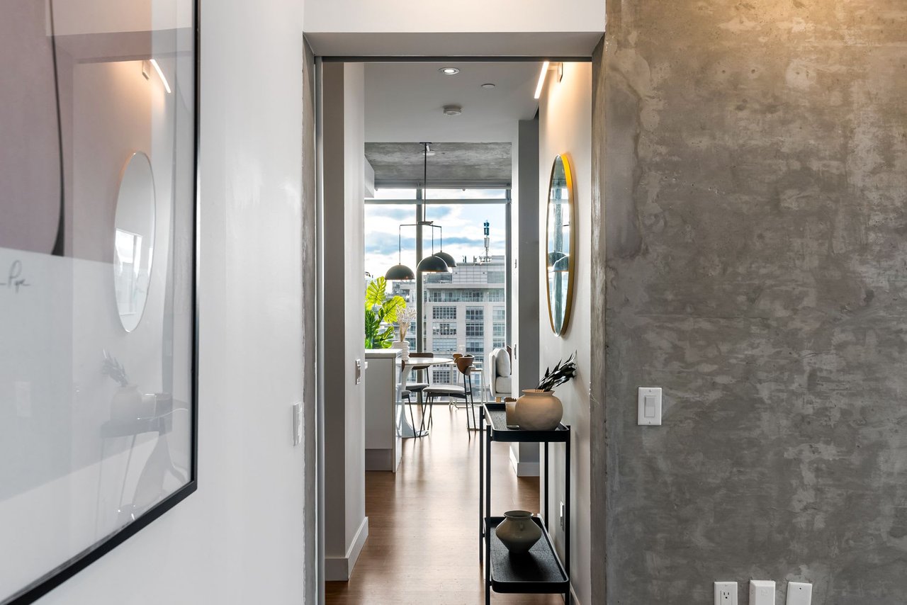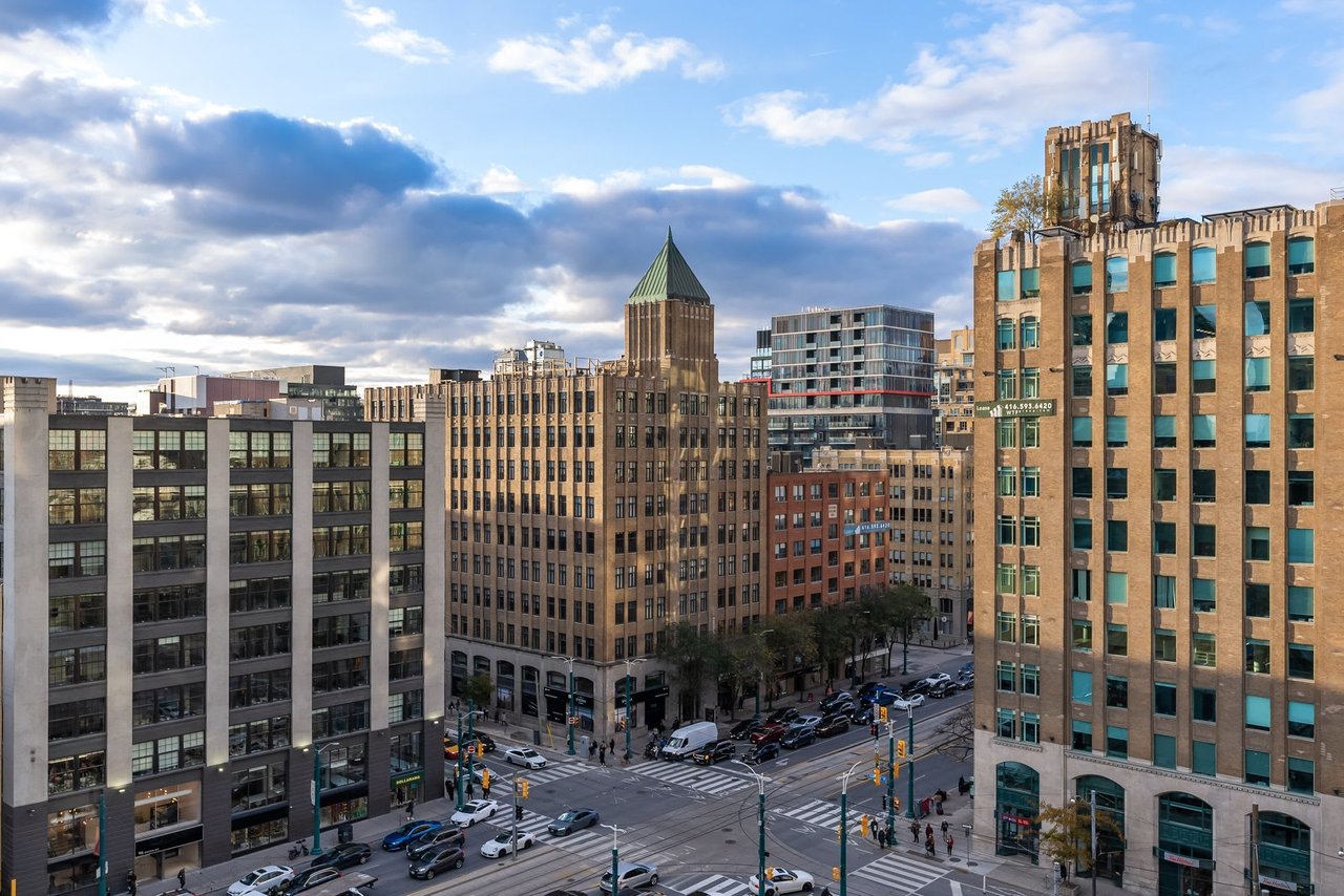 Soft Loft Dreams Are Made Of These - Welcome Home To Glas Lofts! Beautifully Appointed 2 Bedroom, 2 Bathroom Corner Suite In The Heart Of Entertainment District. Rarely Available Floorplan, Being 1 Of Only 5 In The Building - Boasts An Open Concept Living, Dining, & Modern Kitchen w/ Full Sized, Stainless Steel Appliances, Stone Countertops, & Breakfast Bar. Soaring 10ft. Ceilings + Exposed Concrete Ceilings & Feature Walls Throughout. Enjoy Sweeping North West Views From Your Oversized Balcony w/ BBQ Gas Line Hookup. Spacious Primary Bedroom Retreat Offers Sizeable Walk-in Closet & 3pc. Ensuite. Steps From Everything The Downtown Core Has To Offer - Restaurants, Cafes, Parks, TTC, & Much More!