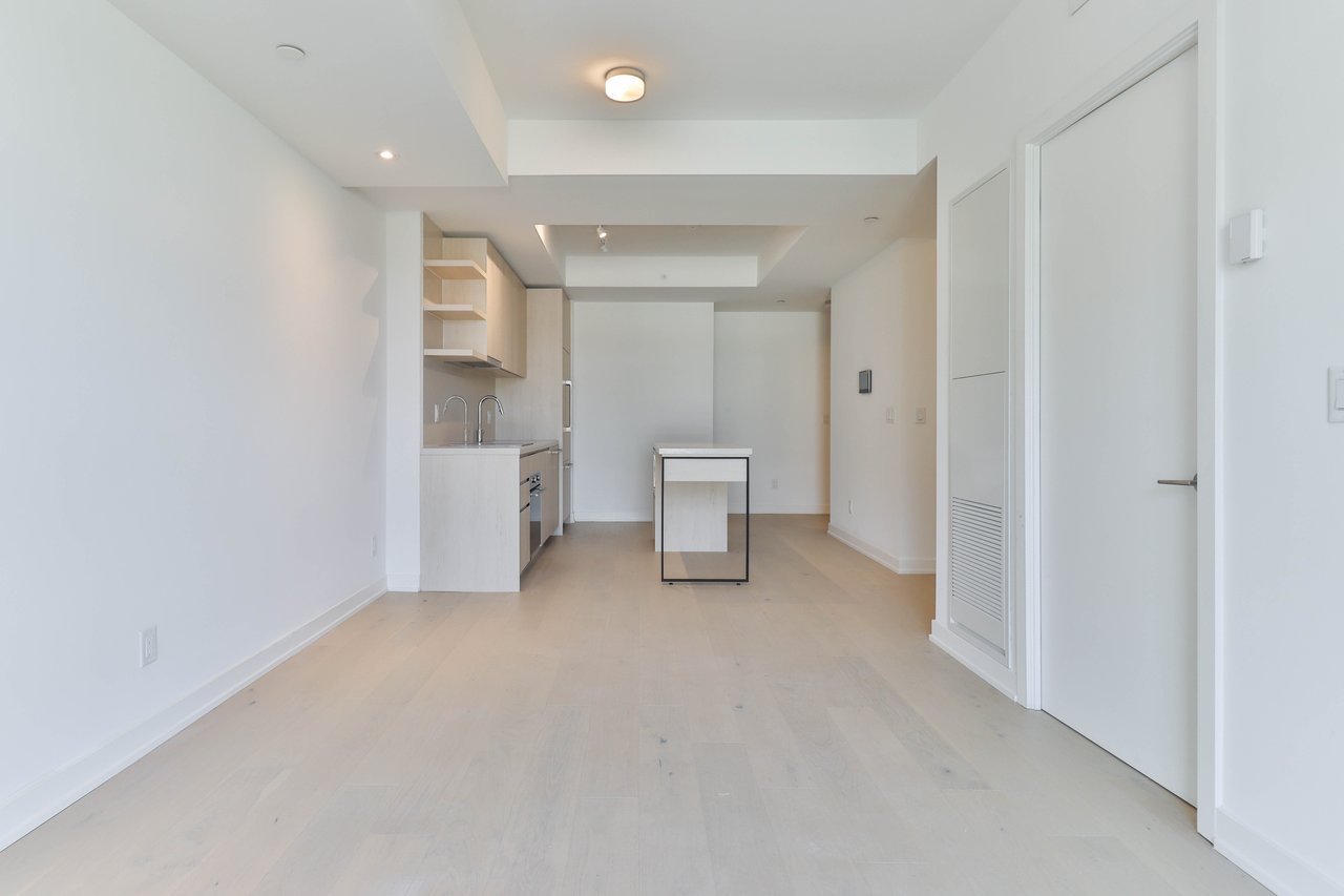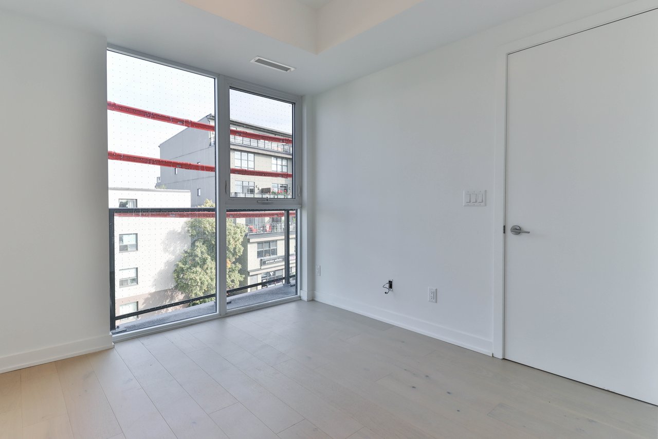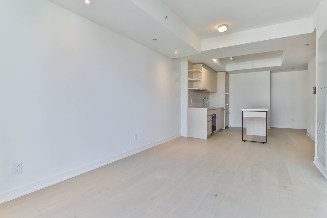Welcome To Courcelette, A Stunning New Boutique Residence In The Upper Beaches Area! This Bright And Airy 1+Den Suite Has Never Been Lived In And Features Thoughtfully Curated, Light-Toned Finishes That Create An Inviting And Serene Space. This Super Functional Floor Plan Features 9 Ft Smooth Ceilings, Engineered Hardwood Floors, And Expansive Floor-To-Ceiling Windows That Fill The Space With Natural Light. Thoughtfully Designed For Everyday Living, This Unit Includes A Den Ideal For A Home Office Or Reading Nook And A Private Balcony For A Breath Of Fresh Air. The Kitchen Is Sleek & Modern, Featuring Designer Cabinetry, Quartz Countertops, Integrated Appliances, And A Kitchen Island With Breakfast Bar Seating. Pot Lights, Track Lighting, And Under-Cabinet Lighting Create A Bright, Well-Lit Ambience Throughout. Developed By Windmill, One Of Canada's Leading Sustainable Builders, Courcelette Is Targeting LEED Platinum Certification With A Focus On Eco-Conscious Living. Enjoy Geothermal Heating And Cooling, Energy Recovery Ventilators, Low-VOC Finishes, And High-Efficiency Systems That Reduce Environmental Impact Without Compromising Comfort. Perfectly Located In A Highly Underrated Pocket Of The Upper Beaches, This Boutique Community Puts You Steps From Local Shops, Cafes, Eateries, Parks, And The Waterfront. Enjoy A True Neighbourhood Feel With Quick Access To Queen Street, Excellent Transit Connections, And A Straightforward Commute Downtown - All In An Area Poised For Continued Growth And Exciting Revitalization. Move In And Be The First To Call This Exceptional Suite Home!