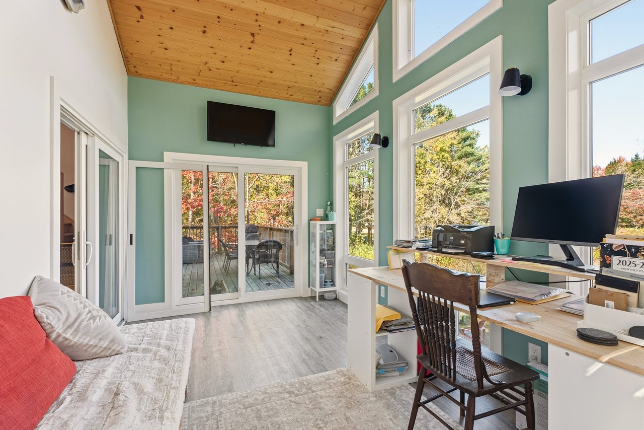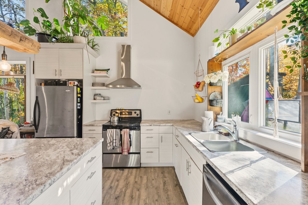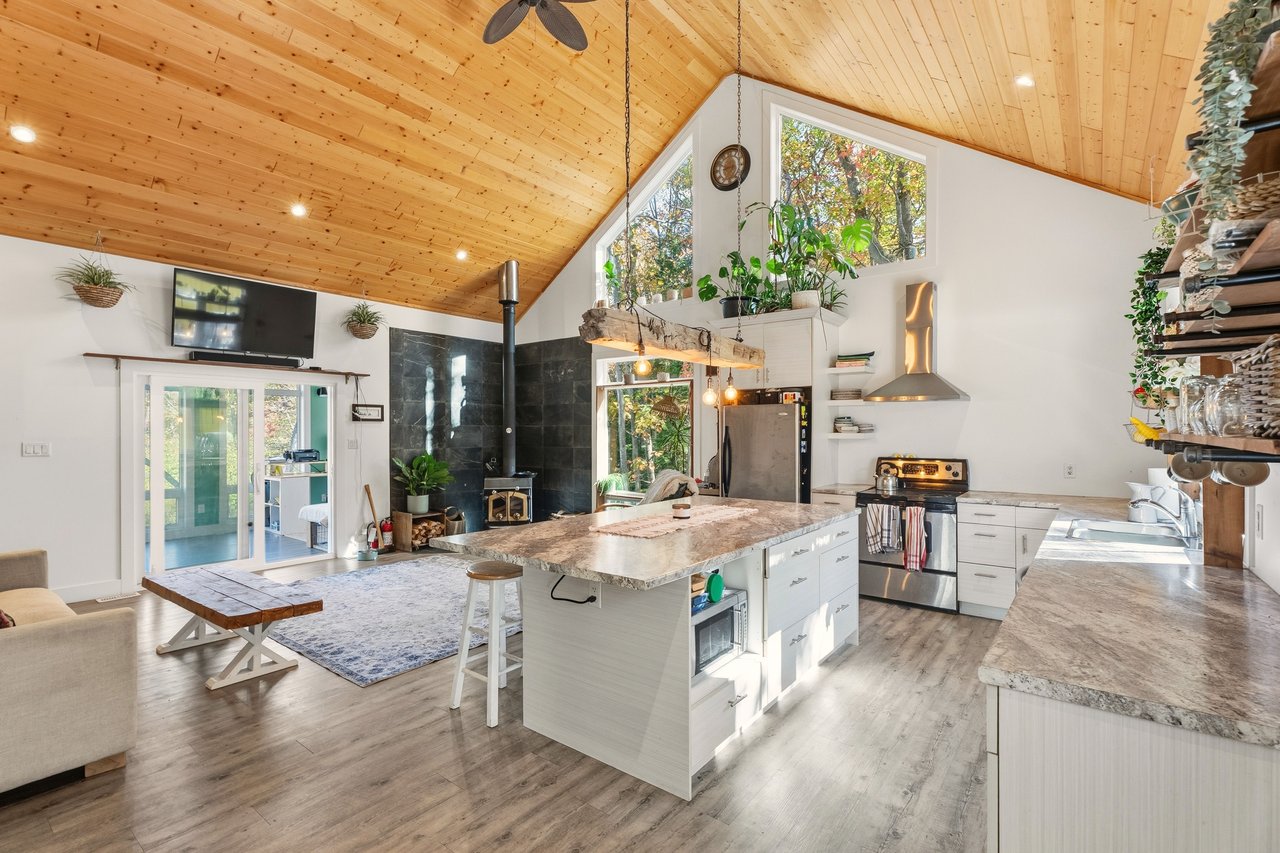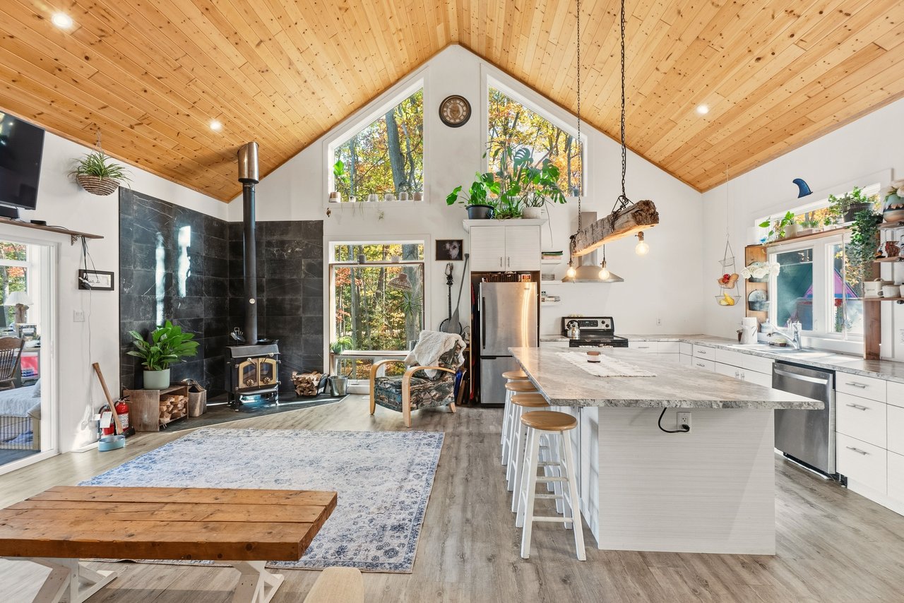 morning coffee, evening sunsets, or cozy winter nights by the fire. This home offers 3 spacious bedrooms and 1 elegant bath, thoughtfully designed for year-round living or weekend retreats. The loft adds flexibility, ideal for guests, kids, a home office, or a quiet reading nook. Outside, enjoy the tranquillity of 8.5 km of navigable waterways, perfect for boating, swimming, kayaking, or simply watching the gentle current drift by.