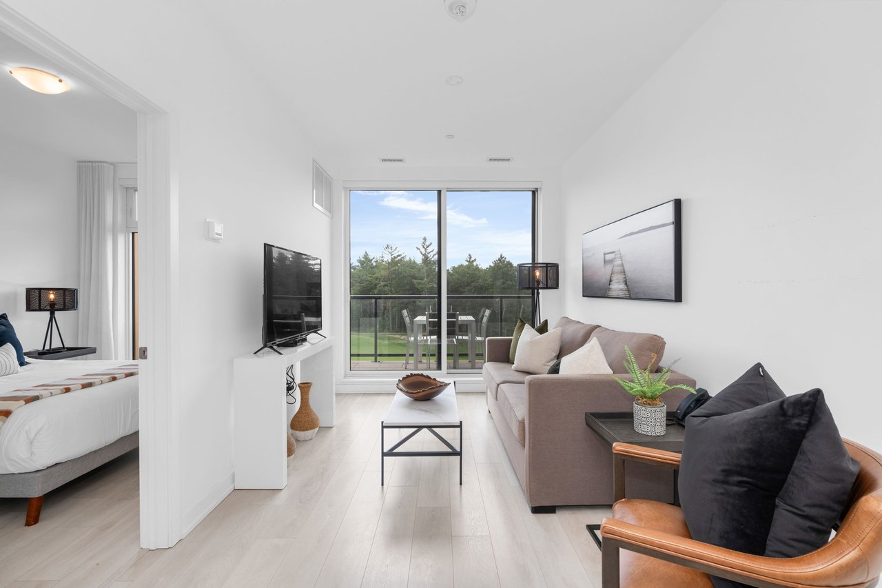 Discover effortless elegance in this fully furnished, turn-key one-bedroom plus den suite at the prestigious Muskoka Bay Resort. Perched on the 4th floor, this bright and open-concept condo showcases breathtaking views of the 18th fairway of the world-class Muskoka Bay golf course. Every detail has been designed with luxury in mind, from the beautiful finishing selections to the versatile den, perfect for a home office, guest space, or private retreat. Enjoy the unmatched lifestyle of a 4-season luxury resort, featuring fine dining, two outdoor pools, a state-of-the-art fitness facility, and world-class golf right at your doorstep. With even more amenities and enhancements coming through the resorts ongoing development, ownership here offers both indulgence and investment. Whether you're seeking a sophisticated year-round residence, a relaxing weekend escape, or an investment opportunity, this suite embodies the very best of modern Muskoka living.