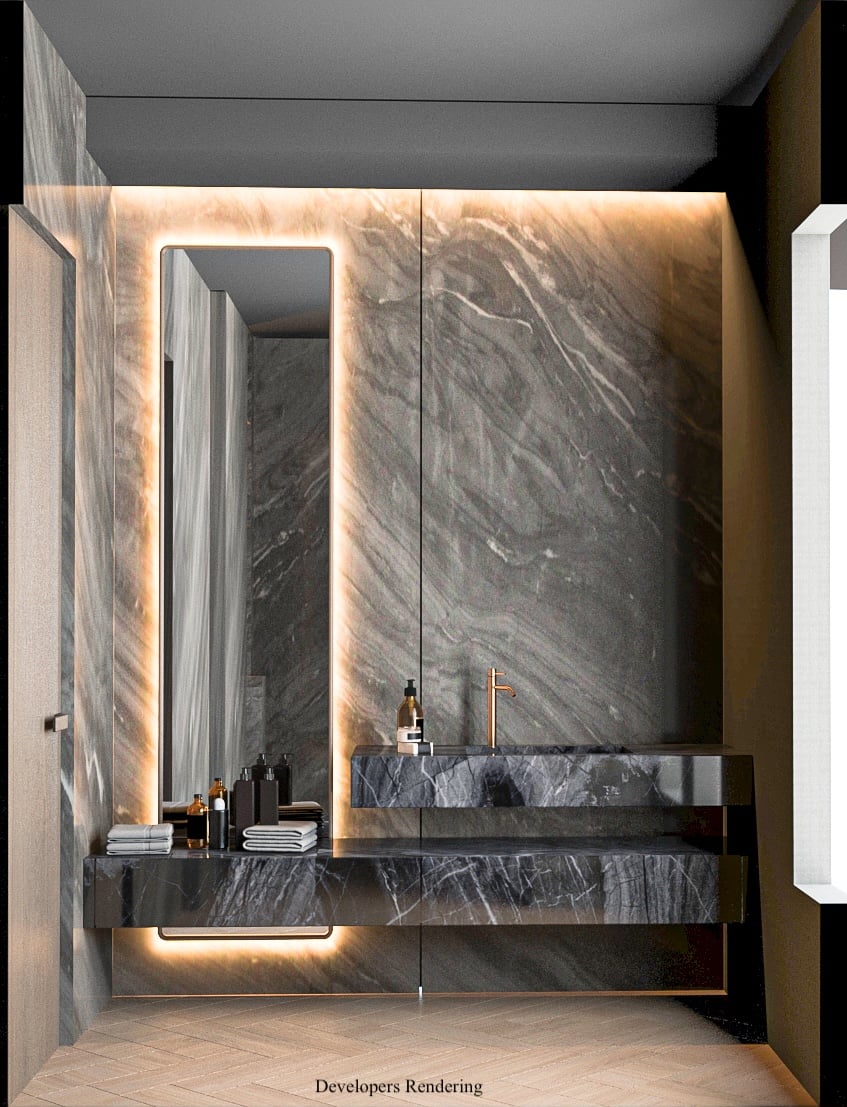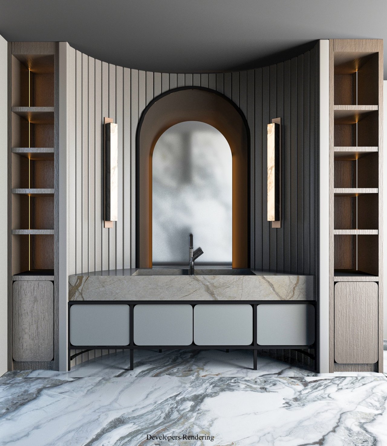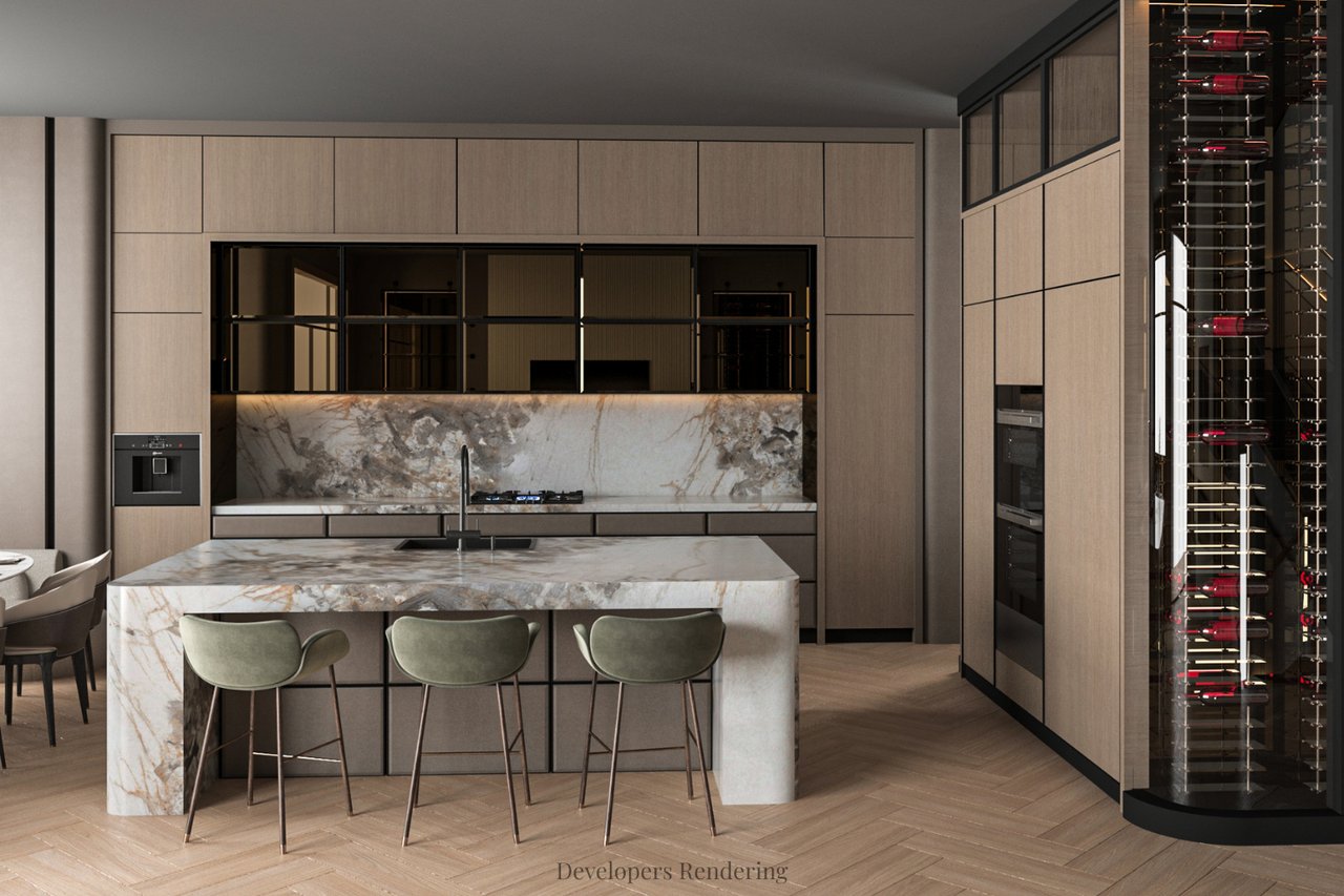 A landmark residence in the heart of Forest Hill, masterfully developed and designed by Danieli Development Group, a name synonymous with precision, craftsmanship, and timeless luxury. Spanning approximately 10,000 sq ft across the entire property, this architectural statement blends modern-classical symmetry with refined contemporary interiors. A grand stone facade, formal landscaping, and commanding presence set the tone. Inside, 12-foot ceilings on the main floor and herringbone flooring create scale and cohesion. The home is serviced by a private elevator and features three fireplaces, including a striking natural stone living room focal point. The chef's kitchen and fully equipped butler's kitchen are appointed with premium Miele appliances, bespoke cabinetry, and natural stone surfaces. Entertain with a custom-designed wine cellar featuring leather accents, wine peg detailing, glass, mirror, and warm wood veneer finishes. The second-floor hallway is defined by mirrored walls that enhance light and depth. The primary suite offers a fireplace, separate his-and-hers walk-in closets, and dual spa-inspired ensuites with steam showers and bespoke finishes. Two additional bedrooms are located on the second floor, with two more on the third level. The lower level offers a private theatre, nanny suite with ensuite, and a resort-inspired wellness retreat. The indoor Sicis saltwater pool with iridescent mosaic tile is complemented by a dramatic double-sided fireplace, along with a bar, heated floors, steam room, and gym. Completing the home is a rare five-car garage, plus a heated two-car driveway, front porch walkway, and rear porch. Currently nearing completion, this residence presents a rare opportunity for the buyer to participate in final design selections and finishing touches.
