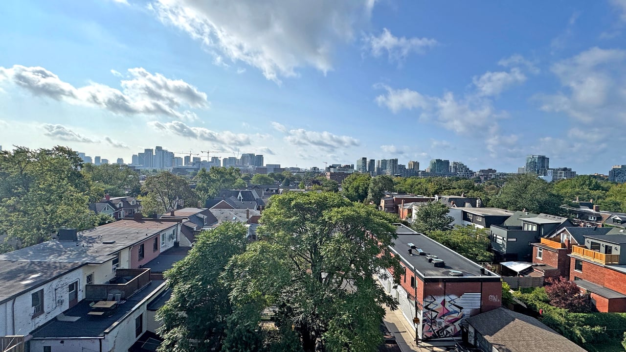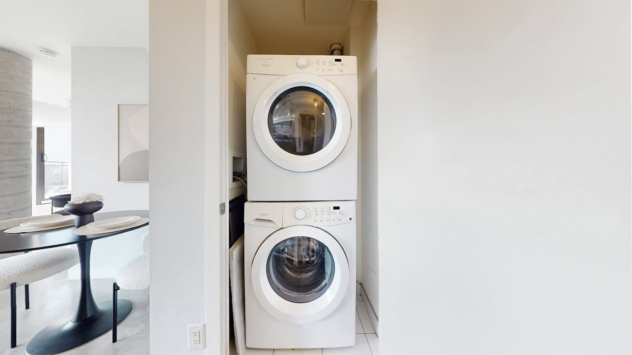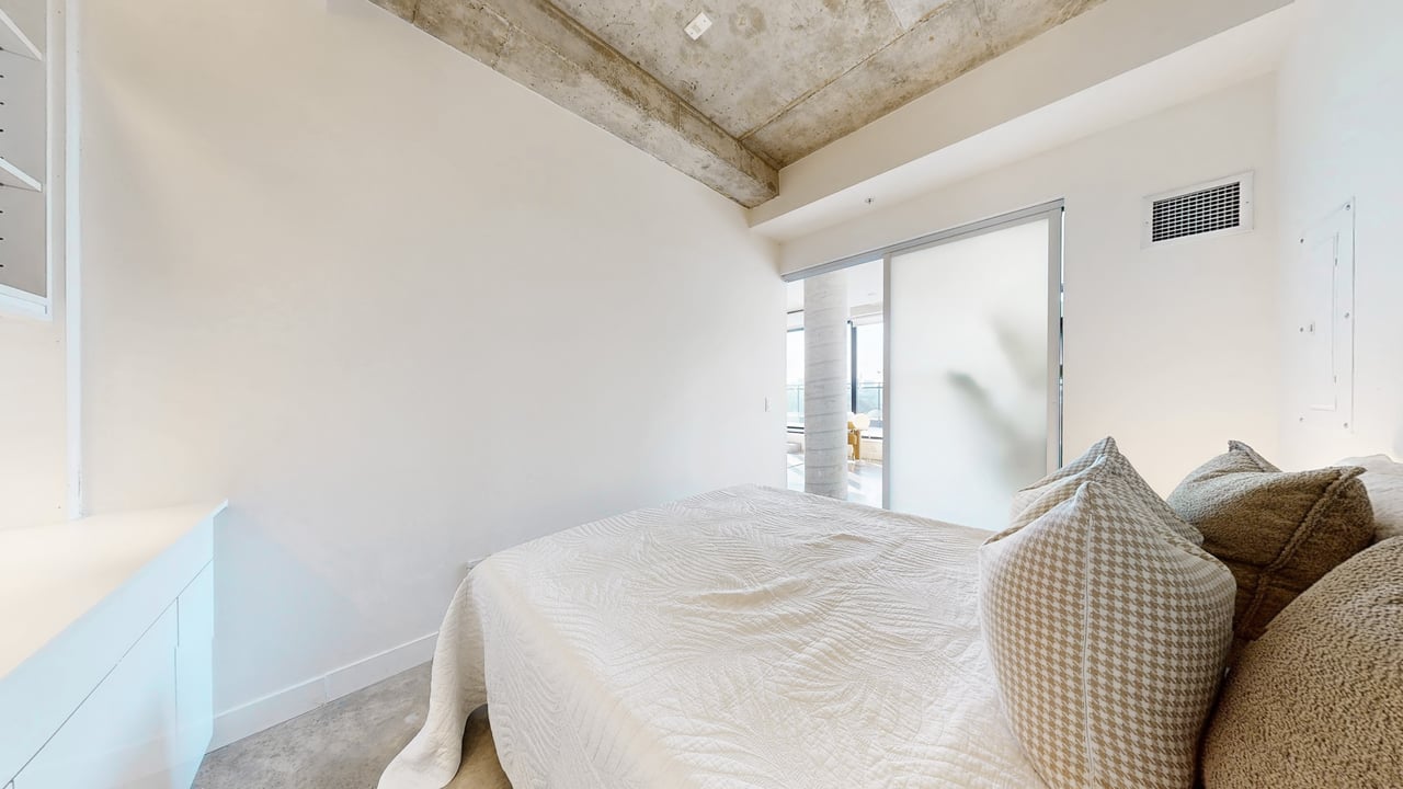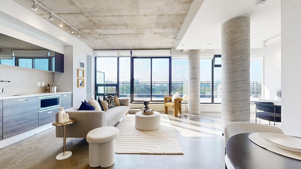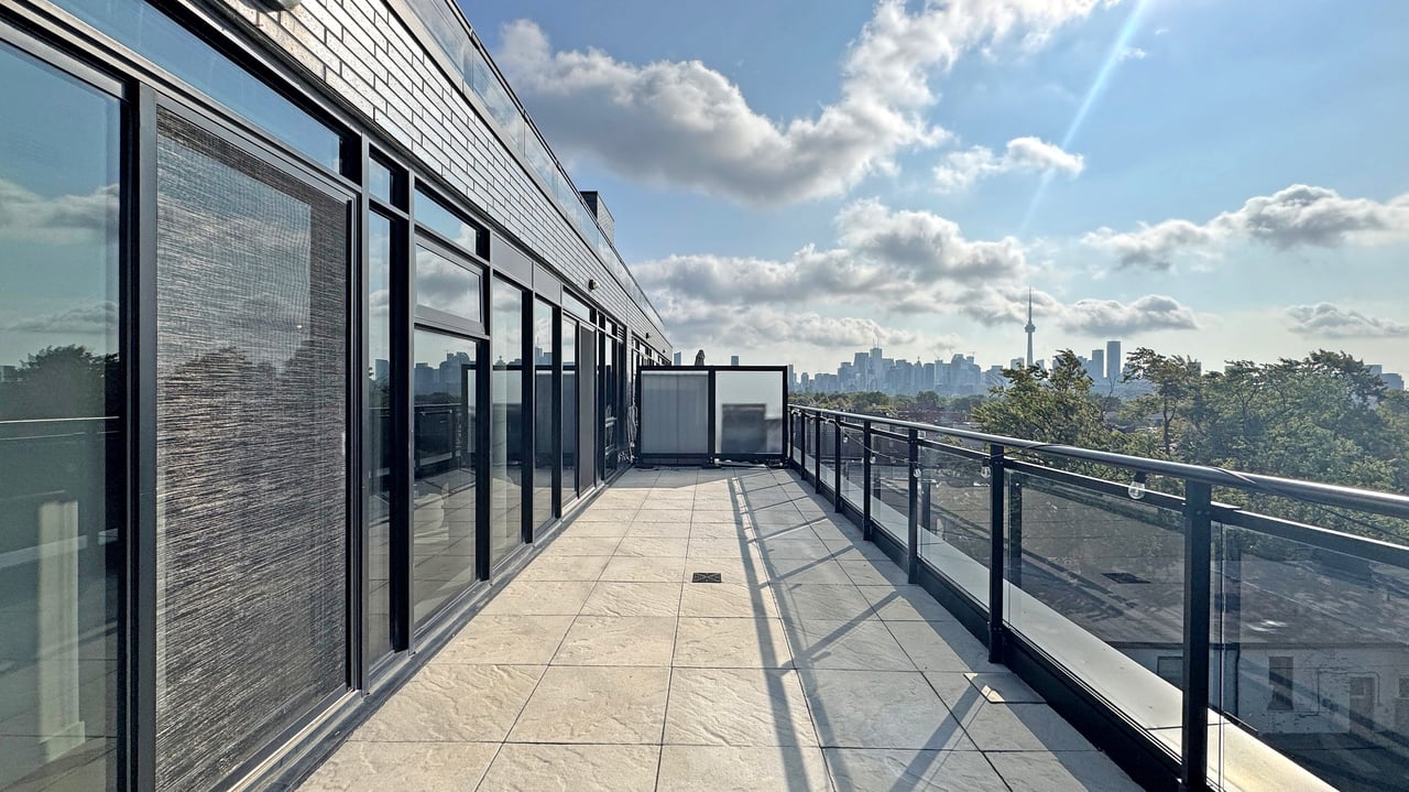 Rarely Offered The Exquisite Abacus Loft! 2 + Den with Stacked Parking and Locker. This stunning loft features a spacious living and entertaining area, soaring 9-ft ceilings, polished concrete floors, and an impressive 300+ SF terrace with southern exposure offering unobstructed views of the city skyline and CN Tower. Sun-drenched floor-to-ceiling windows fill the home with natural light all year round. Located in the heart of Trinity Bellwoods / Ossington, you'll enjoy top-notch restaurants, shops, and venues, all within walking distance yet the building is peacefully tucked away from street noise. The Abacus is a well-managed mid-rise building with strong reserve funds, making it an ideal opportunity for both end-users and investors.