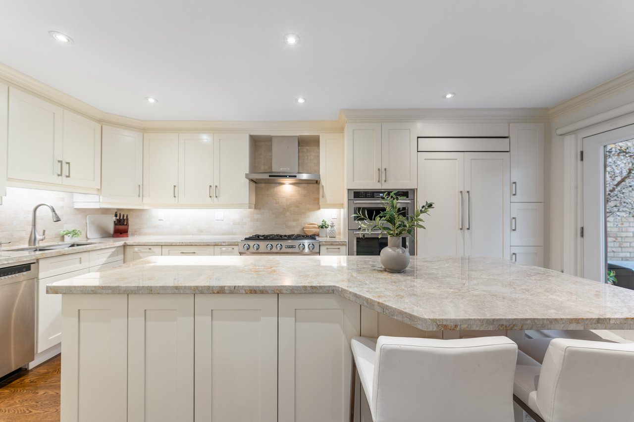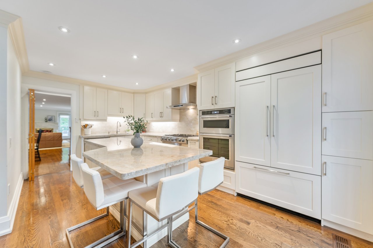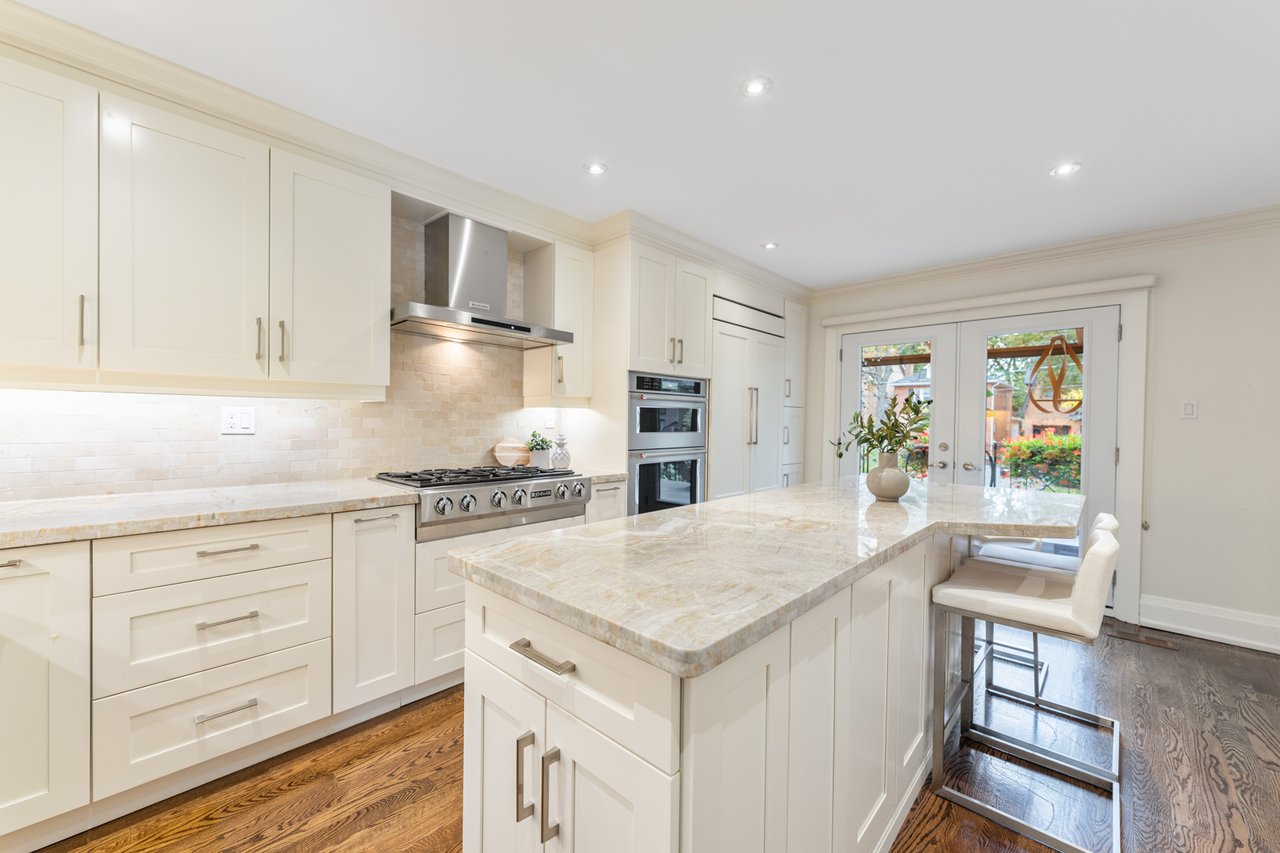 Welcome to 128 St. Clements Avenue a beautifully updated family home in Toronto's sought-after Allenby neighbourhood, offering exceptional space and thoughtful renovations throughout. This elegant residence combines comfort and functionality across three spacious levels. The main floor features a newly renovated chef's kitchen with custom cabinetry, granite counters, a large centre island with seating for four, and premium Jennair appliances including a double fridge and six-burner gas cooktop. A bright solarium floods the space with natural light, and the walkout from the living room leads to a private backyard and patio - perfect for entertaining or family living. The open concept living and dining rooms offer wonderful flow and abundant natural light. Upstairs, the second floor includes three generous bedrooms with hardwood floors, ceiling fans, and ample storage. The primary suite boasts double closets and a stylish 3-piece updated ensuite. The additional bedrooms share a beautifully renovated 3-piece bath with porcelain tiling and a glass shower. The finished lower level expands the living space with a recreation room, gas fireplace, walkout to the backyard, powder room, laundry area with sink and storage, and direct access to a rare double car garage. Outside, enjoy a private backyard with mature trees and a deck. Perfectly located within walking distance to Yonge Street, shops, restaurants, transit, and top-rated schools ( Allenby and North Toronto CI), 128 St. Clements Avenue is truly move-in ready, blending quality craftsmanship, modern comfort, and convenience in one of Toronto's most desirable neighbourhoods