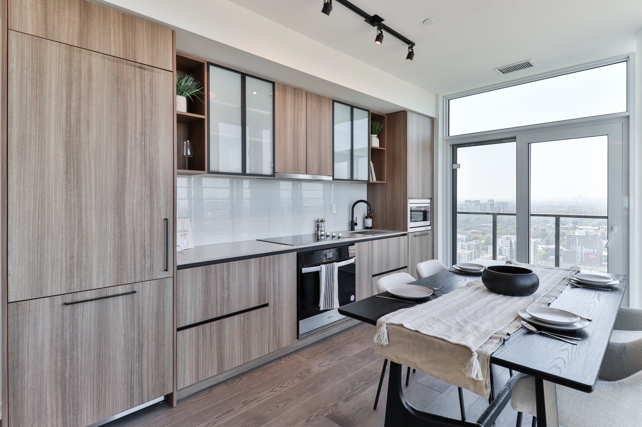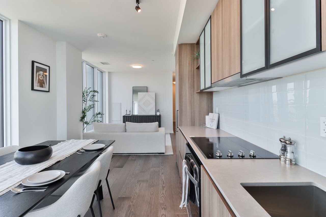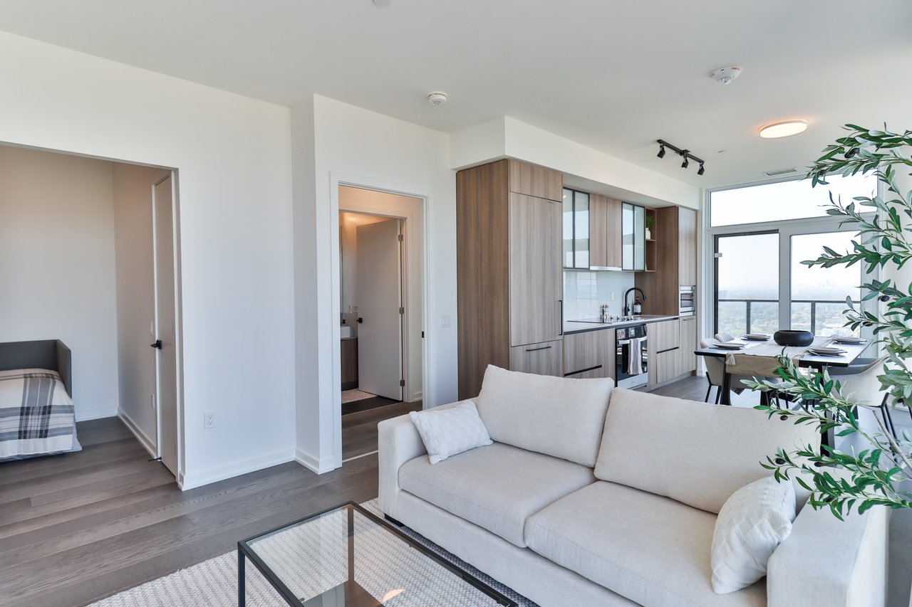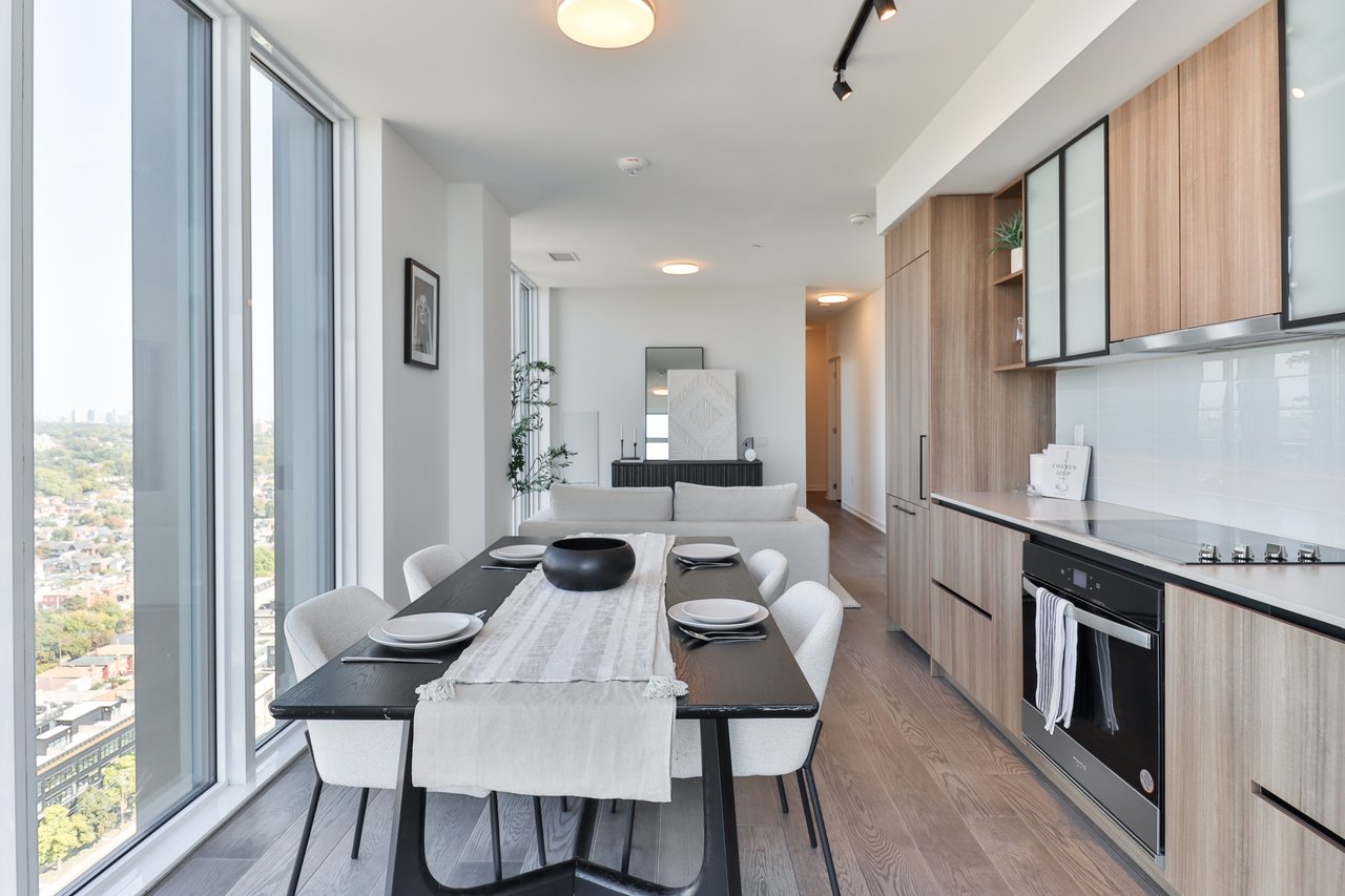 Welcome to this beautifully designed 3-bedroom top-floor suite! Offering 1,015 sq. ft. of thoughtfully planned interior space plus a 107 sq. ft. west-facing balcony, this home combines functionality with elevated modern design. Enjoy floor-to-ceiling windows, wide-plank laminate flooring throughout, and a sleek contemporary kitchen featuring integrated, panelled appliances. Residents have access to over 22,000 sq. ft. of world-class amenities, including a rooftop pool, 24-hour concierge, state-of-the-art fitness centre, kids' playroom, co-working lounge, theatre room, BBQ stations, fire pits, and so much more. Nestled within a vibrant, one-of-a-kind master-planned community, you'll be surrounded by over 300,000 sq. ft. of brand new retail and commercial space, a new 8-acre park, and a 90,000+ sq. ft. community centre currently under construction. Enjoy the convenience of multiple TTC stops, easy access to grocery stores, and the lively restaurants and bars along Geary Avenue, all while being moments from Bloor Street, The Junction, The Annex, and Ossington.