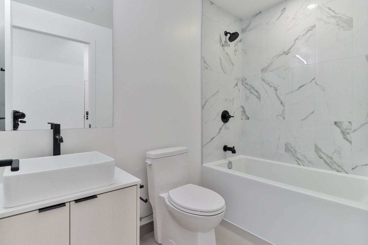 Be the first to live in this brand-new, never-lived-in 3-bedroom, 2-bathroom suite, and features modern finishes, a spacious private 129 sq/ft balcony, floor-to-ceiling windows that fill the space with natural light, and sleek laminate flooring throughout. The kitchen comes equipped with built-in appliances including a fridge, stove, oven, microwave, and dishwasher, along with in-suite laundry. Ideally located just steps from shops,