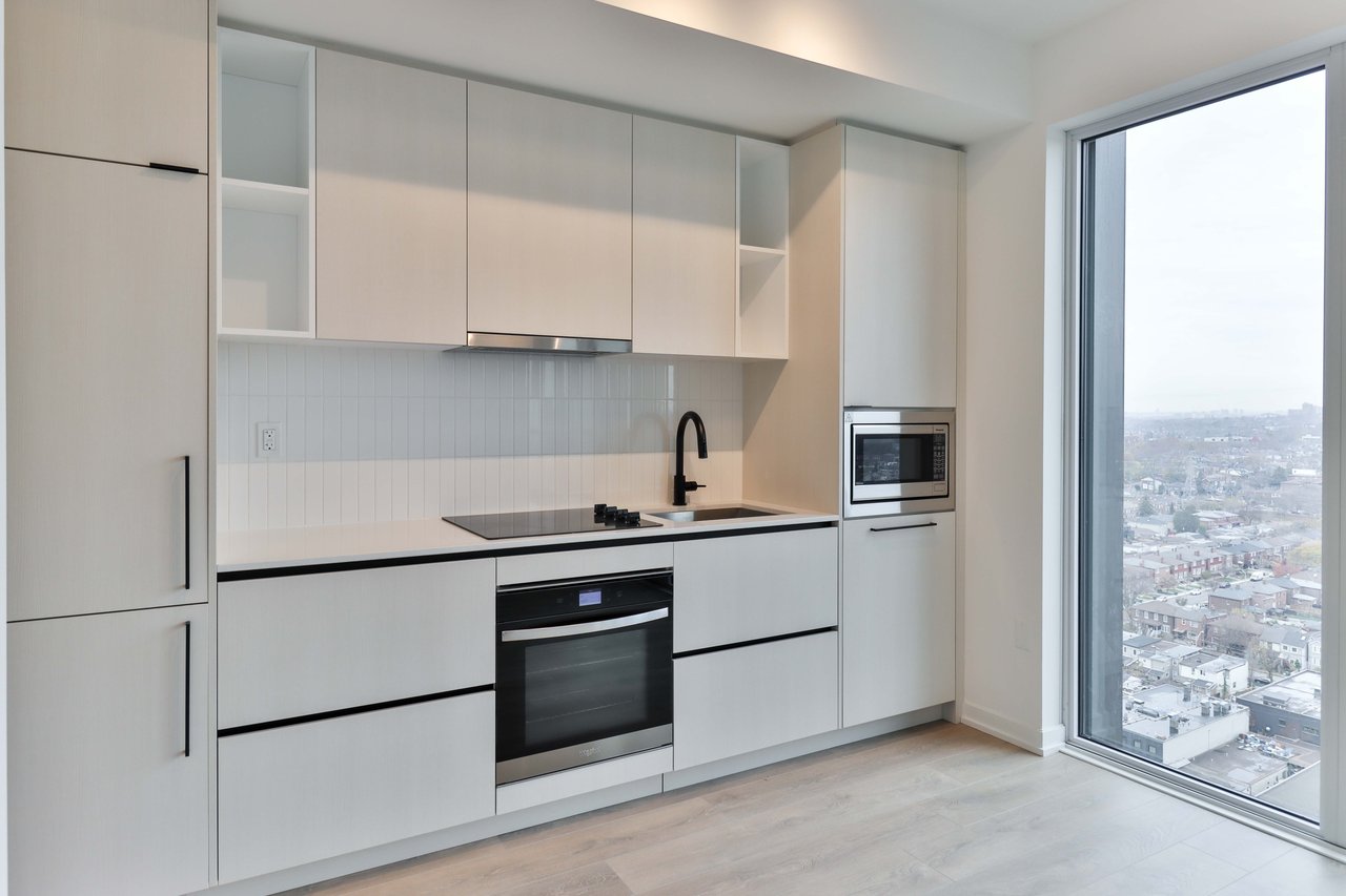 Be the first to live in this brand-new, never-lived-in 1-bedroom, 1-bathroom suite, and features modern finishes, floor-to-ceiling windows that fill the space with natural light, and sleek laminate flooring throughout. The kitchen comes equipped with built-in appliances, including a fridge, stove, oven, microwave, and dishwasher, quartz counter tops, along with in-suite laundry. Ideally located just steps from shops, TTC transit, and restaurants, Geary Street, grocery store and the list goes on. Enjoy an impressive range of building amenities such as an outdoor pool, gym, landscaped terrace, co-working lounge, kids' playroom, games room, and more-urban living at its finest.