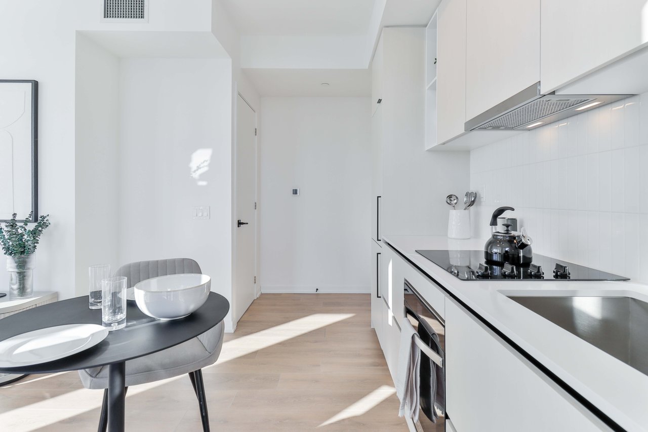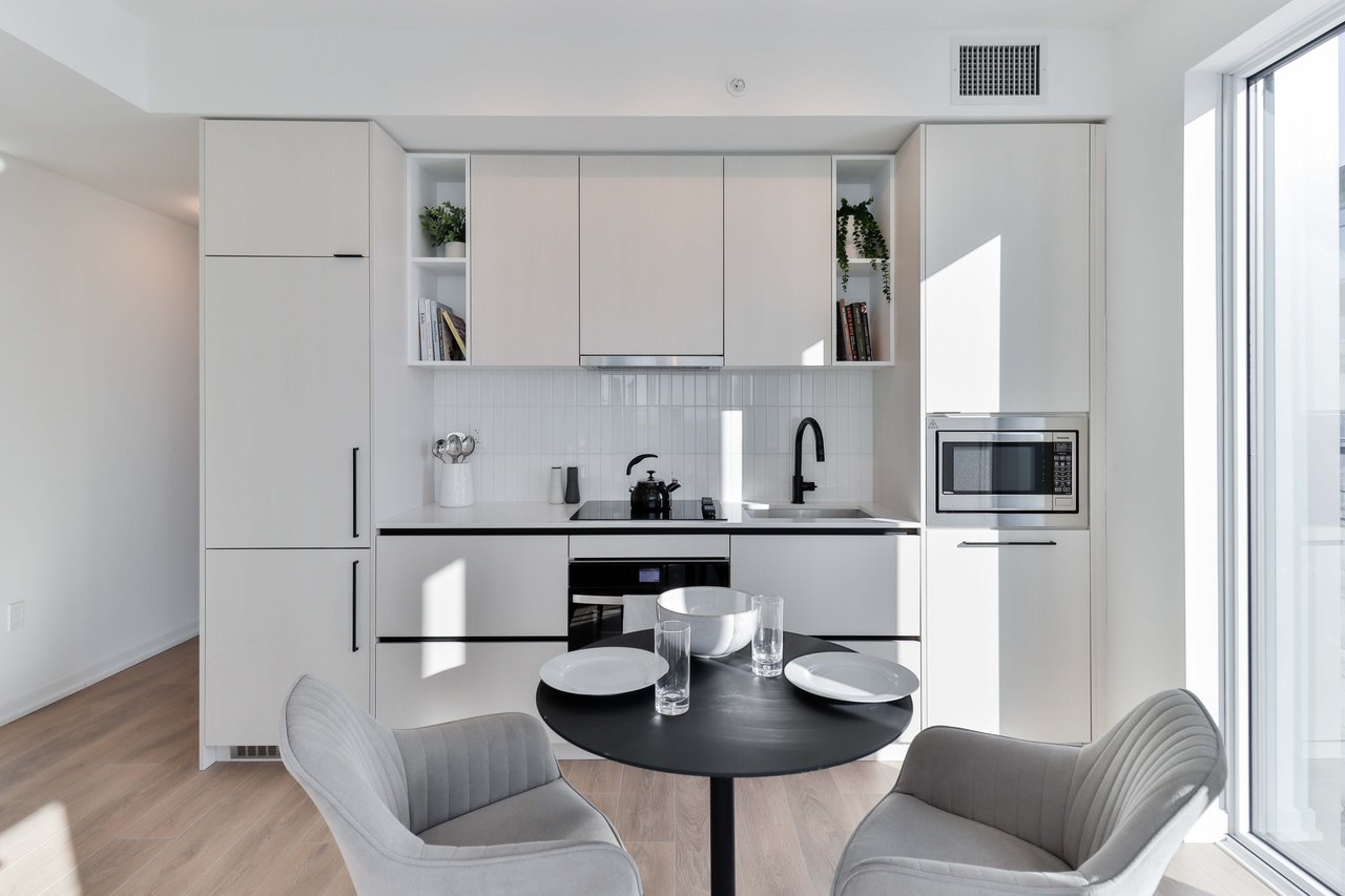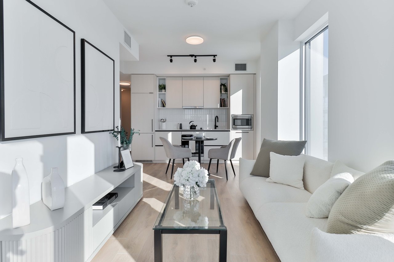 Welcome to this beautifully designed 2-bedroom suite! Offering 708 sq. ft. of thoughtfully planned interior space plus a 104 sq. ft. south west facing balcony, this home combines functionality with elevated modern design. Enjoy floor-to-ceiling windows, wide-plank laminate flooring throughout, and a sleek contemporary kitchen featuring integrated, panelled appliances. Residents have access to over 22,000 sq. ft. of world class amenities, including a rooftop pool, 24-hour concierge, state-of-the-art fitness centre, kids' playroom, co-working lounge, theatre room, BBQ stations, fire pits, and so much more. Nestled within a vibrant, one-of-a-kind master-planned community, you'll be surrounded by over 300,000 sq. ft. of brand new retail and commercial space, a new 8-acre park, and a 90,000+ sq. ft. community centre currently under construction. Enjoy the convenience of multiple TTC stops, easy access to grocery stores, and the lively restaurants and bars along Geary Avenue, all while being moments from Bloor Street, The Junction, The Annex, and Ossington.