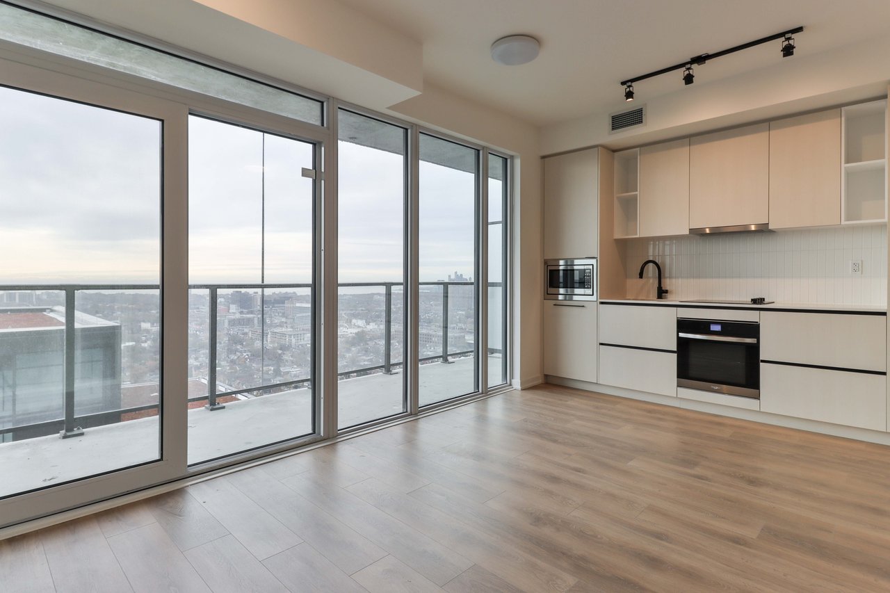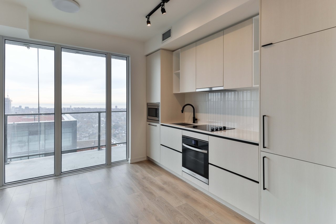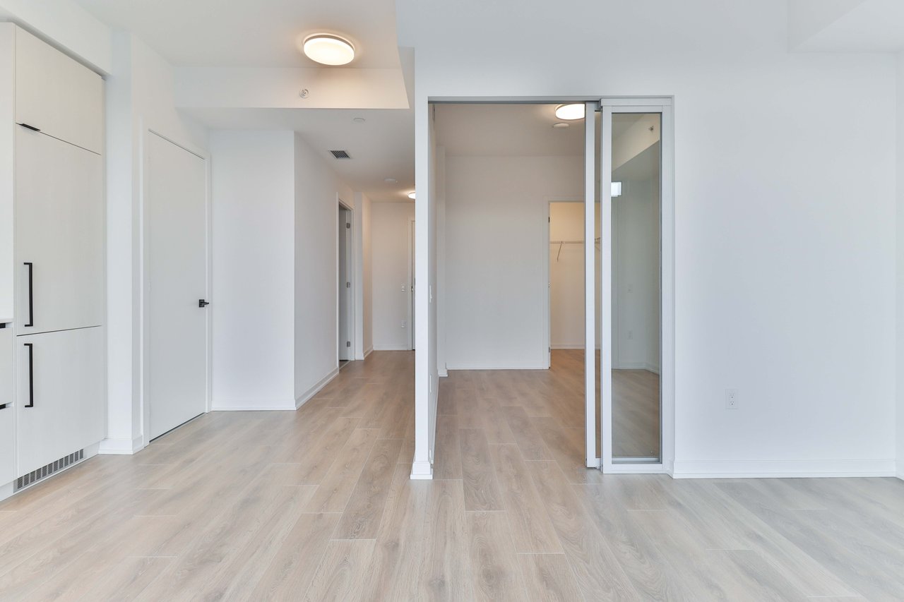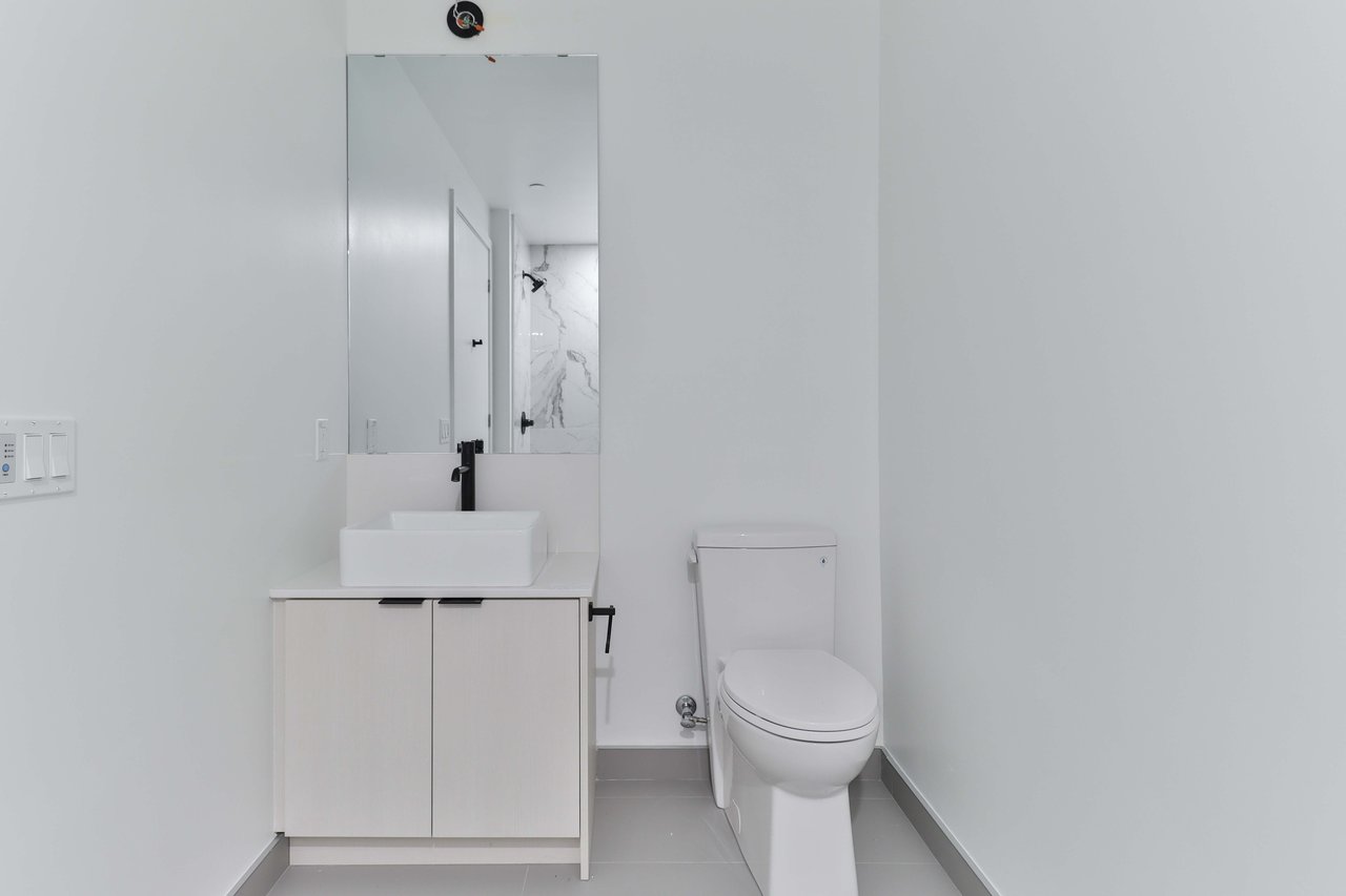 Be the first to live in this brand-new, never-lived-in 1-bedroom, 1-bathroom suite, and features modern finishes, a spacious private 106sq/ft balcony, floor-to-ceiling windows that fill the space with natural light, and sleek laminate flooring throughout. The kitchen comes equipped with built-in appliances including a fridge, stove, oven, microwave, and dishwasher, along with in-suite laundry. Ideally located just steps from shops,