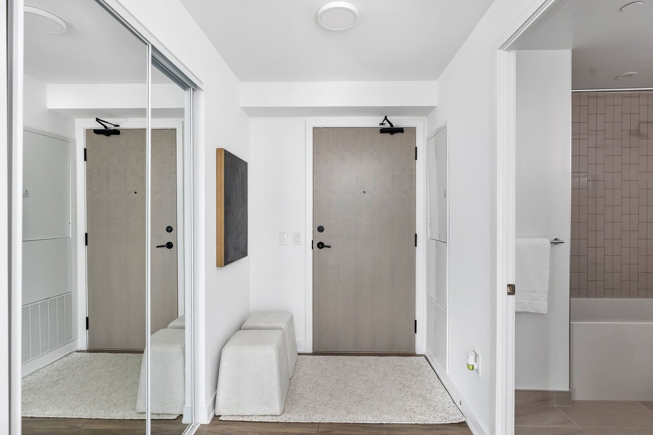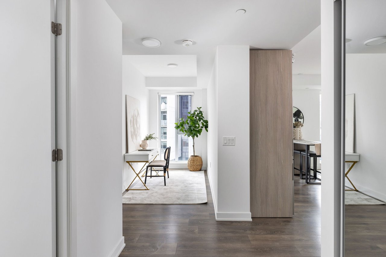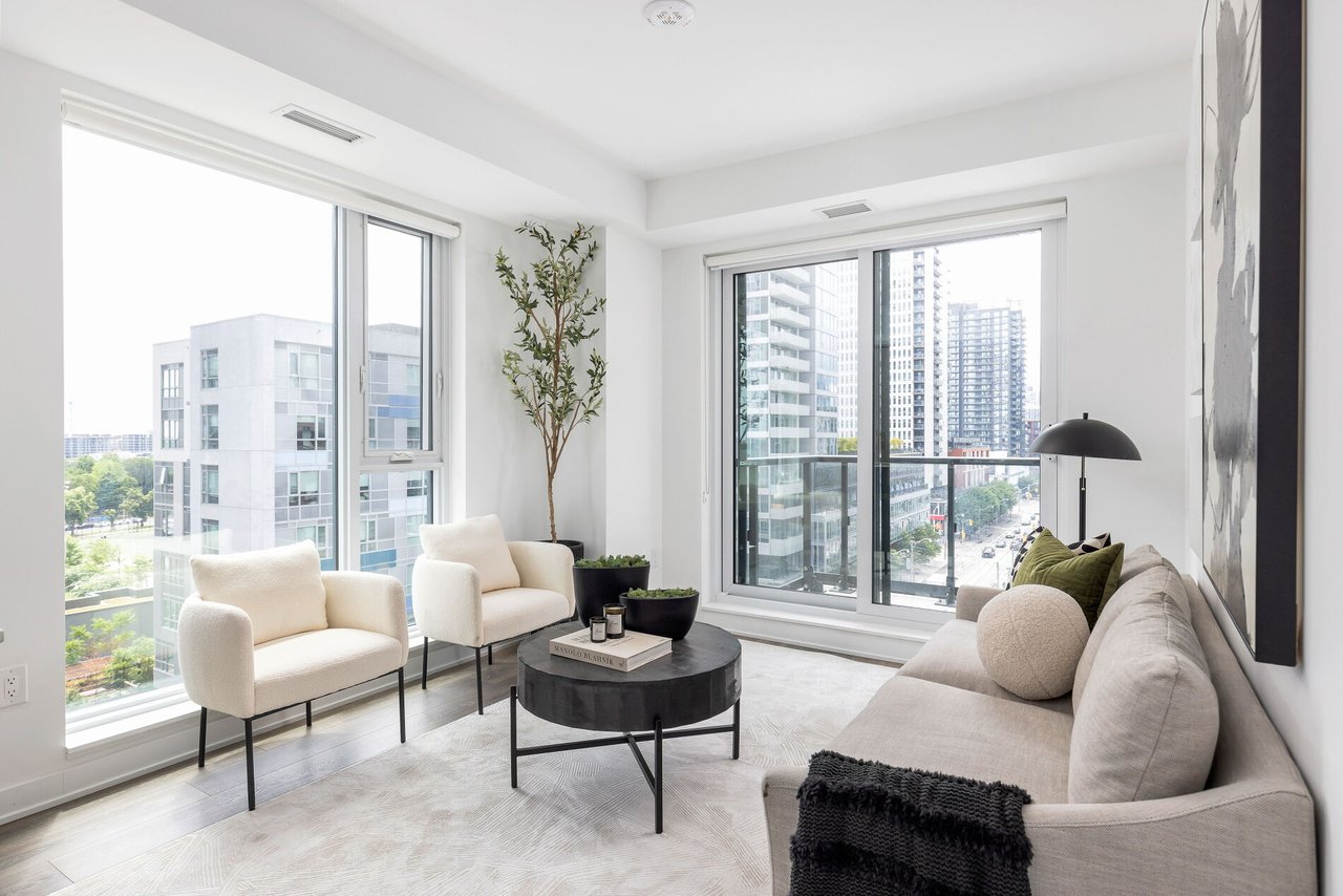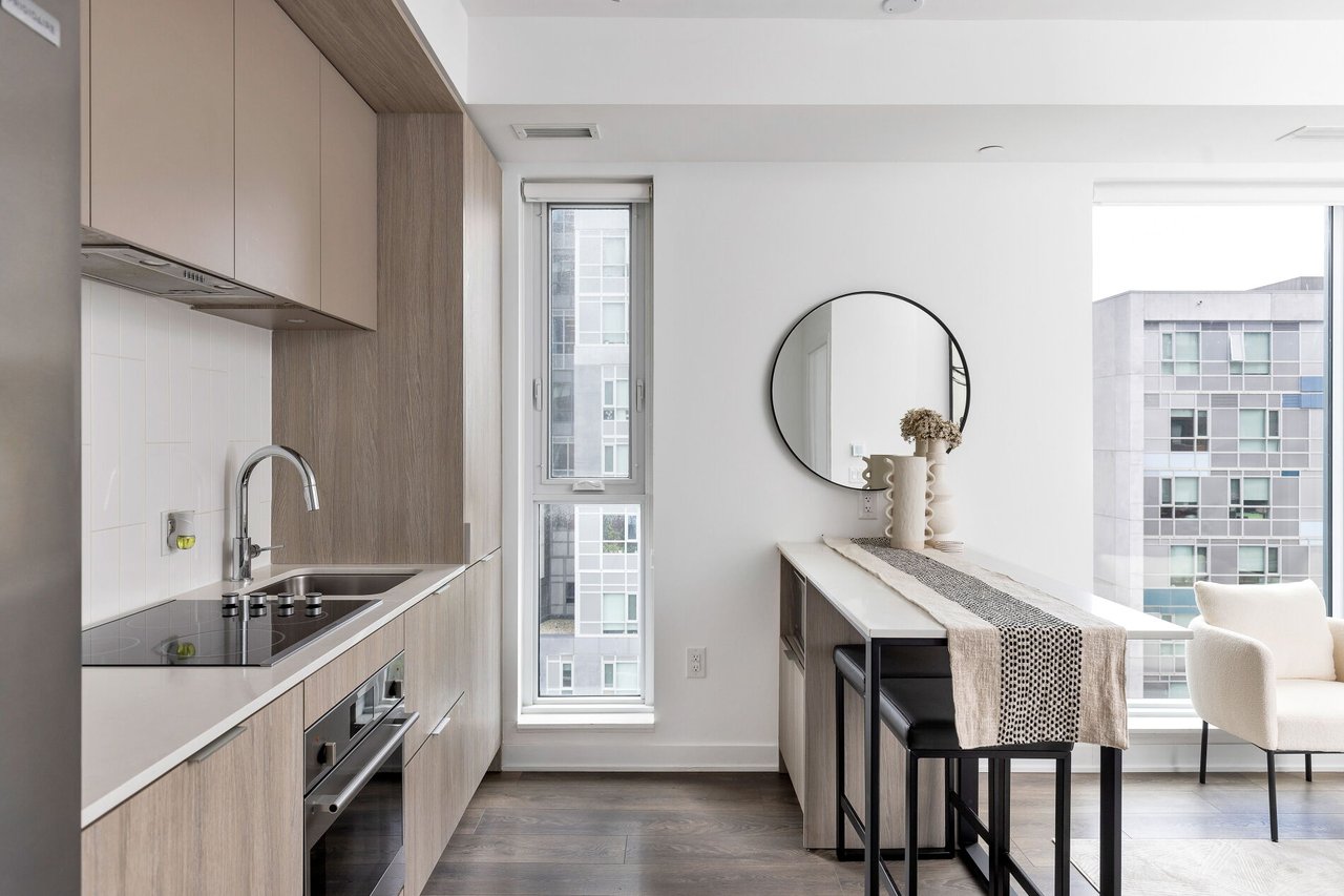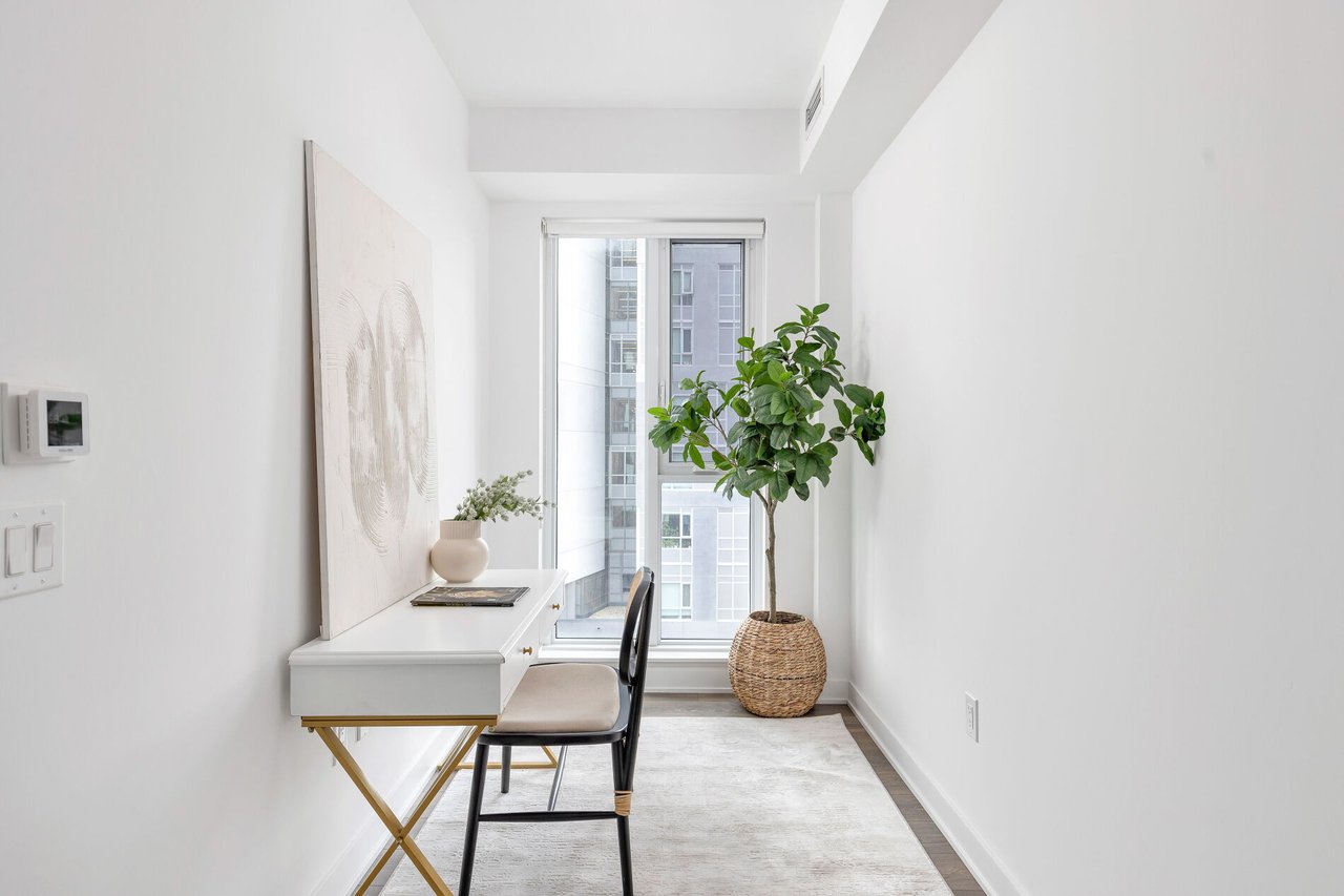 This new building suite offers 926 sq ft of thoughtfully designed living space, featuring a highly functional layout with 2 spacious bedrooms and a den each with its own window for abundant natural light throughout. Enjoy exceptional flow, modern finishes, and a bright, airy atmosphere from every corner. Experience the best of city living with shops, dining, parks, and transit just steps away, plus access to top-tier building amenities including a fully equipped gym, co-working space, outdoor rooftop lounge and a stylish party room.
