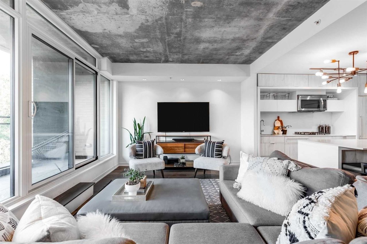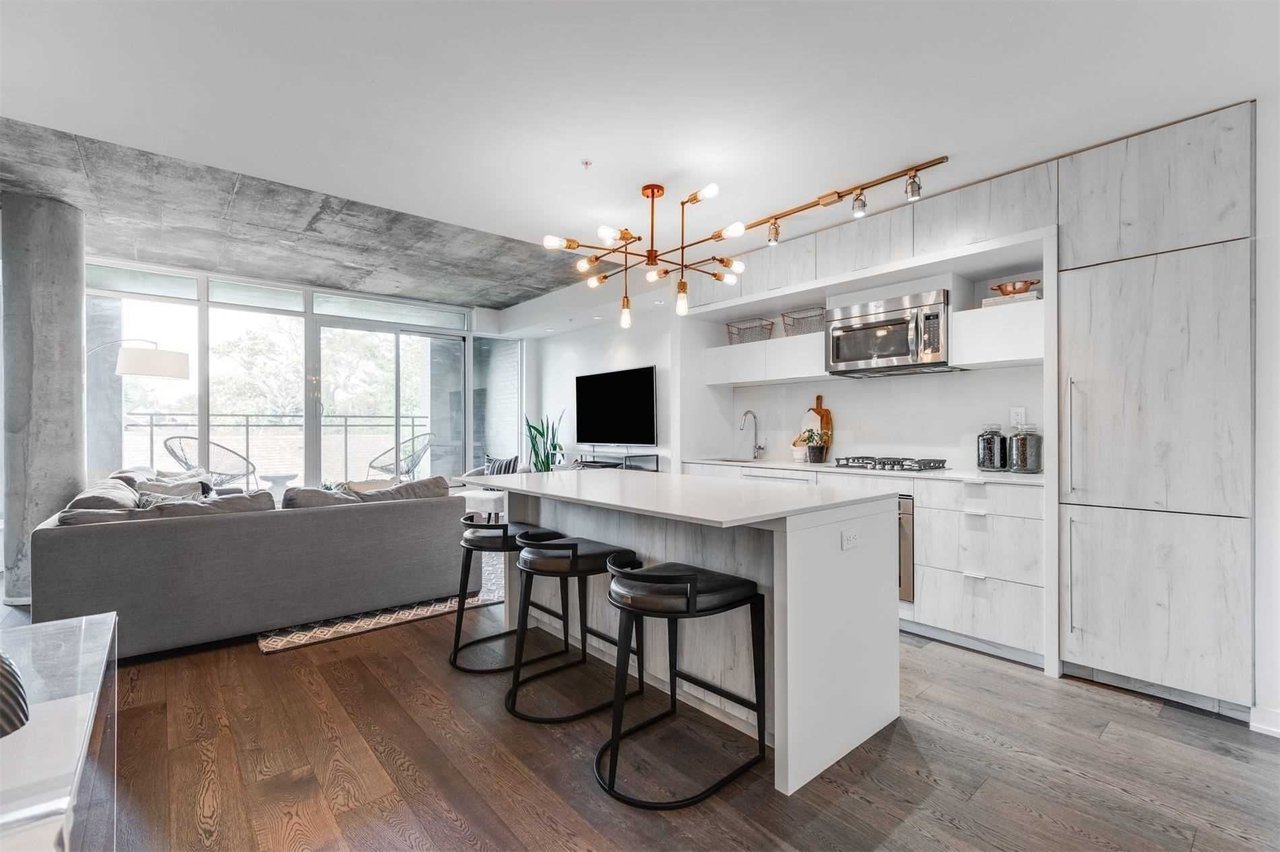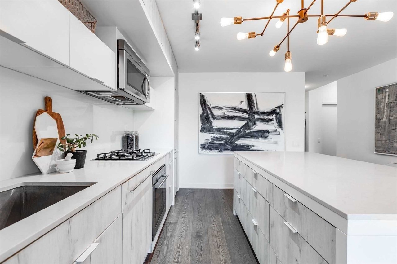 Soft Loft Dreams Are Made Of These!! Spacious 2 Bedroom + Den, 2 Full Bathroom Suite At "It Lofts". Spanning Over 1,047Sf Of Functional Living Space. Beautifully Finished Chefs Kitchen Boasts B/I Appliances, Oversized Waterfall Island, & Stone Countertops. Open Concept Principle Rooms W/ Exposed Concrete Ceilings, Multiple W/O's To The 150+ Sf Balcony. Large Den Can Double As The Perfect Home Office. All Elfs & Window Coverings Incl. Ss & B/I Kitchen Appliances; Fridge, Gas Stove, Microwave, Dishwasher, And Stacked Washer & Dryer, 1 Parking & 1 Locker Incl. W/ 1 Additional Parking Space Also Available For Purchase.