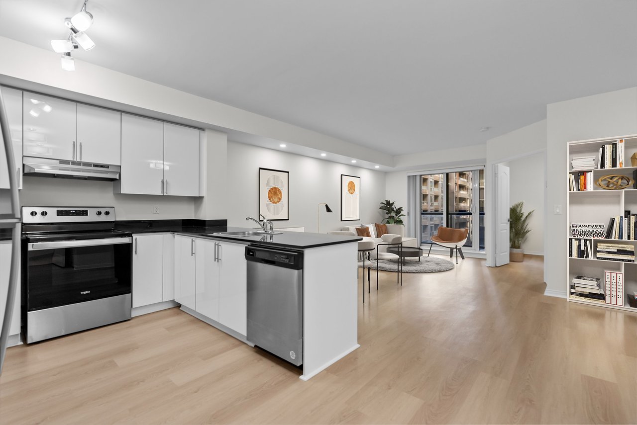 This Spacious One-Bedroom + Den Offers 760 Square Feet Of Thoughtfully Designed Living Space. The Modern, Open-Concept Kitchen Features A Breakfast Bar That Seamlessly Connects To The Living And Dining Areas. Additional Highlights Include Vinyl Flooring Throughout And Pot Lights In Living / Dining. Residents Can Enjoy A Variety Of Amenities, Including A Concierge, Gym, And A Rooftop Terrace With Bbqs, Along With A Party Room And Lounge, Movie Theatre, And Golf Simulator For Added Entertainment. Situated In The Heart Of The City, This Property Offers Unmatched Proximity To The Subway, Financial District, Entertainment District, And The Lively Neighbourhoods Of King And Queen West, With Easy Access To The Gardiner Expressway. Experience Toronto's Finest Restaurants, Theatre, Shopping, And Vibrant City Life Right At Your Doorstep!