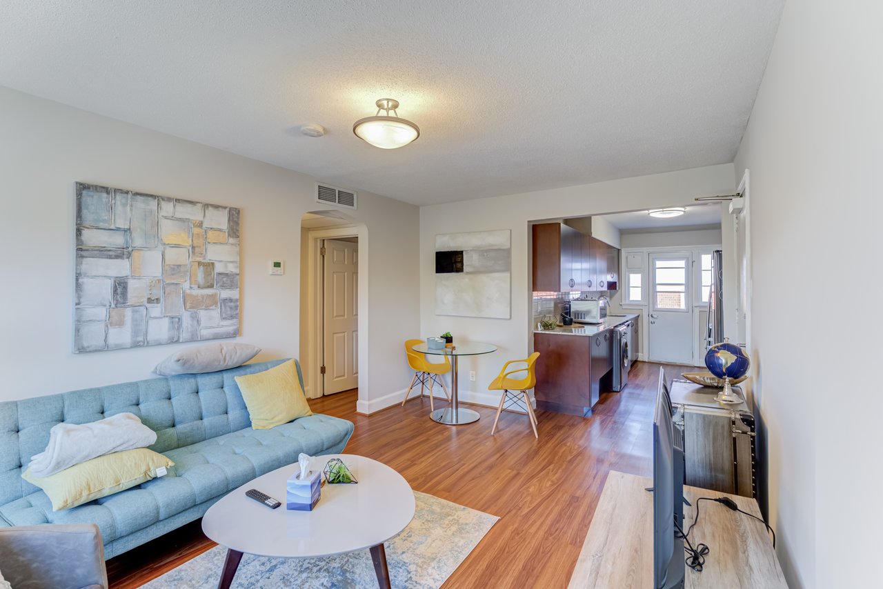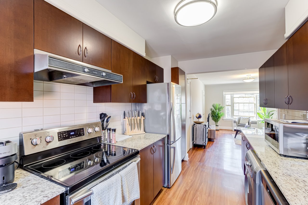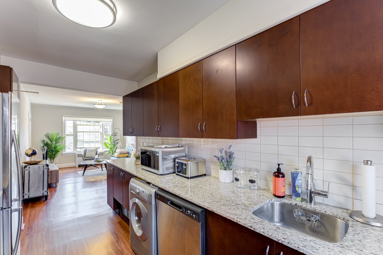 all In Love With Life In Leaside! This Beautifully Finished, Ground Floor Suite Is Perfectly Situated In One Of Toronto's Most Sought-After Neighbourhoods. Featuring A Bright, Open-Concept 1 Bedroom, 1 Bathroom Layout With Highly Functional Living Space. The Modern Kitchen Showcases Full-Sized Stainless Steel Appliances, Stone Countertops, And Convenient Ensuite Laundry. Enjoy A Generously Sized Four-Piece Bathroom, All Light Fixtures And Window Coverings Included With Roller Blinds Throughout. Tenant To Pay Hydro. Suite Is Equipped With Central Air Conditioning. Just Steps To Bayview Shops, Restaurants & Cafes, Top-Rated Schools, Parks, And TTC - Everything Leaside Living Has To Offer Is Right At Your Doorstep. Photos Are Of 2nd Floor, Model Suite Which Is Staged - Which Has The Same Layout & Finishes/Colours As The Listed Suite.
