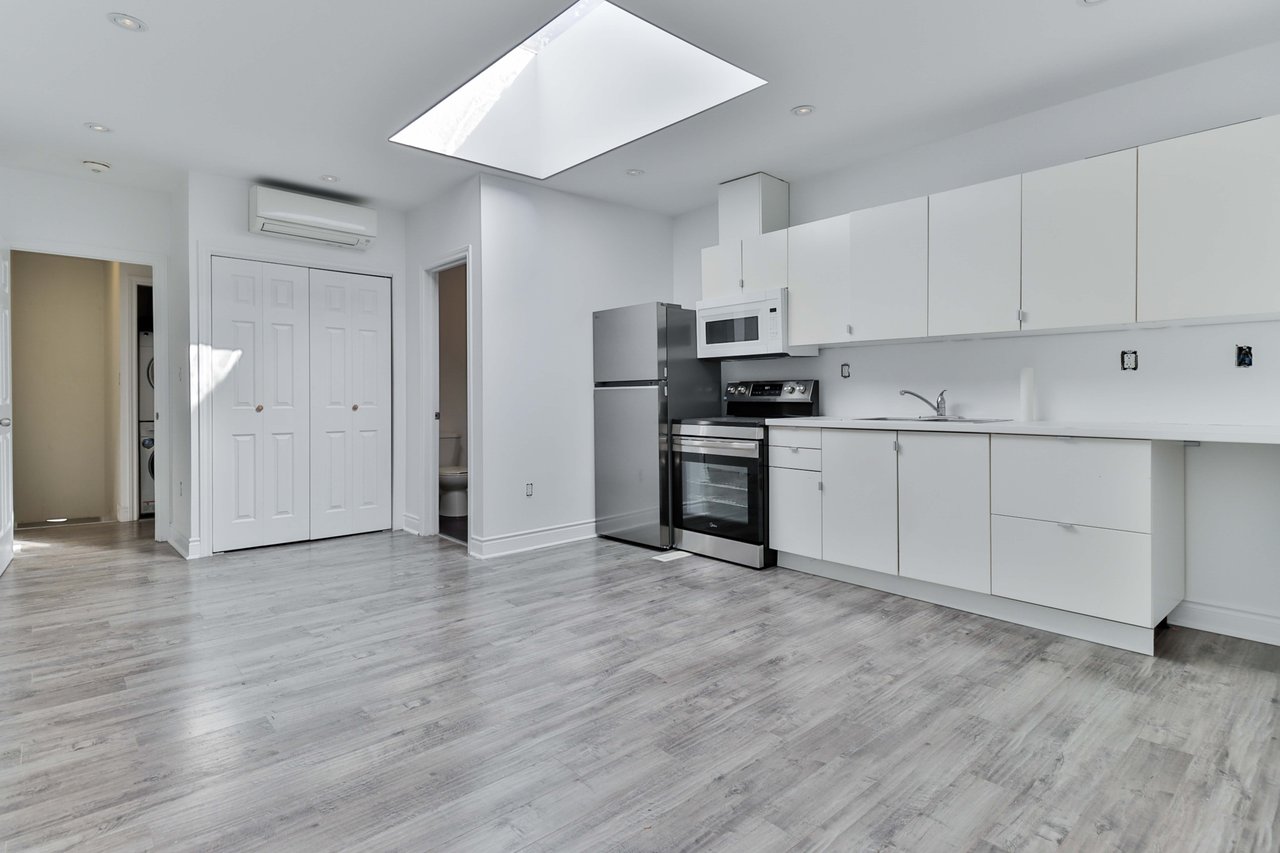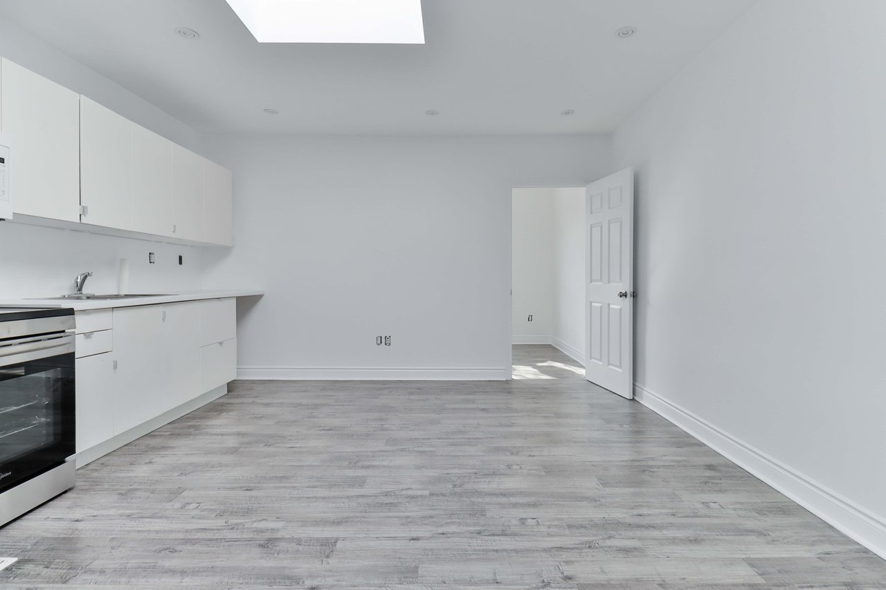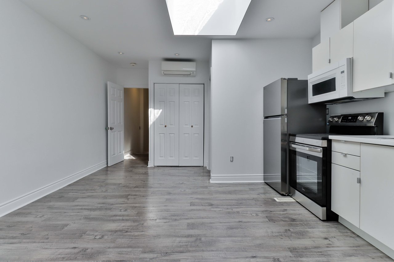 Fantastic And Clean Second Floor Apartment, Fully Renovated in 2017, New Hardwood Throughout The Unit. Kitchen, Pot Lights, Skylight. The units are all freshly painted and very clean. Close To TTC, Shops, Restaurant, Library - all within walking distance. Walk Score Of 96, Transit Score Of 82. Utilities (Gas and water) are included. Hydro is separate.