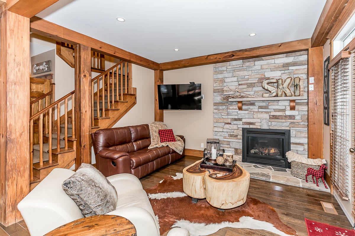 PERFECT FOR SEASONAL RENTALS! Rental is from APR-NOV 2026. Just move in to this spectacular home in Historic Snowbridge. Walk to the lively Blue Mountain Village, or order your own personal shuttle service to the hill! And just quick drive to Thornbury or Collingwood for cafes, shops, galleries and grocery stores and every amenity you can think of. This 5 bedroom, 4 bathroom home has ample space to host a large family. This home is loaded with charm. Post & beam wood accents throughout. Lovely spacious front foyer, open concept living space with