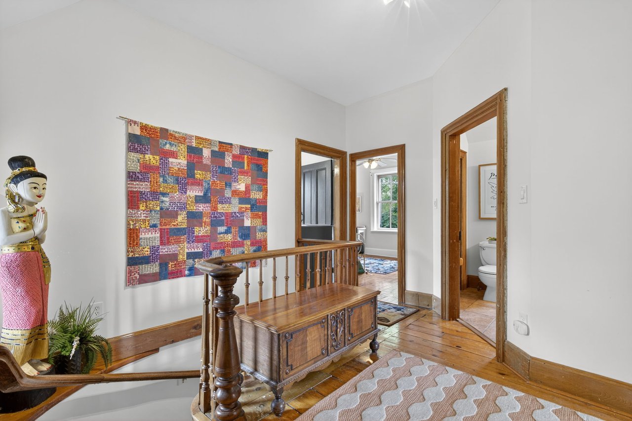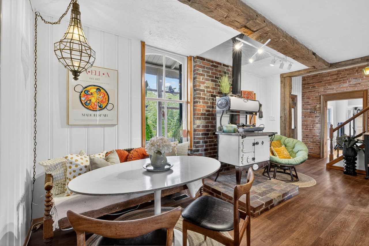 Discover a rare historic estate in the charming village of Cheltenham. Set on 1.4 private acres with approximately 200 feet of frontage this 1862 residence blends timeless character with thoughtful modern updates. Enjoy walking proximity to the General Store, Credit River, Caledon Trail way, and the Badlands, with Pulpit Golf Club, Caledon Ski Club, cafés, and breweries only minutes away. Pearson Airport is a quick 30-minute drive. A stately tree-lined drive leads to over 3,700 square feet of bright, inviting living space. Tall windows, high ceilings, and generous principal rooms create an open, airy feel throughout. The flexible layout includes four bedrooms, three bathrooms, a family room, dining room/library, office/living room, and a versatile loft ideal for studio, fitness, or creative use. Utilize this fantastic property as a family home, weekend retreat from the city or unlock the potential of the property by exploring the possibility of lot severance. Modern geothermal heating and cooling- along with radiant heat on all tiled floors- provide efficient, ecofriendly comfort year-round. Outdoors, enjoy multiple patios, a sunlit solarium, a landscaped pond, and mature trees offering complete privacy. The wide frontage also offers A one-of-a kind heritage offering in one of Caledon's most beloved villages, where historic charm meets modern living.