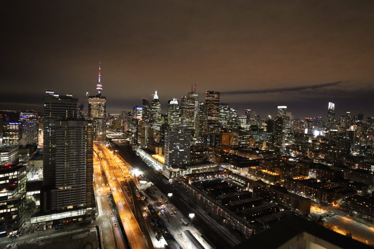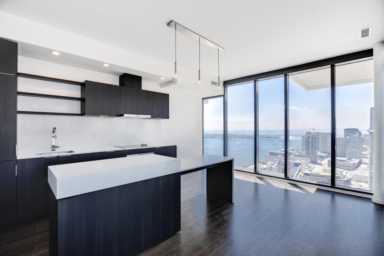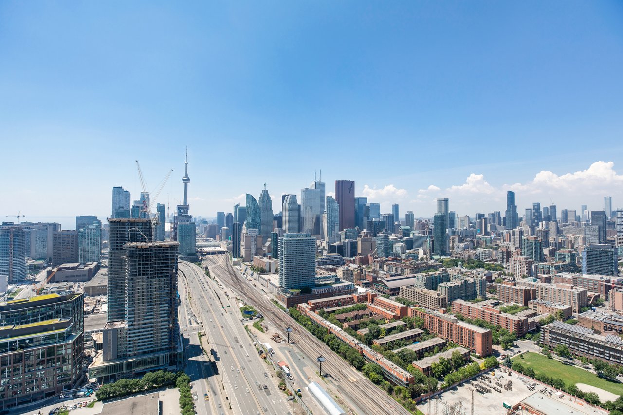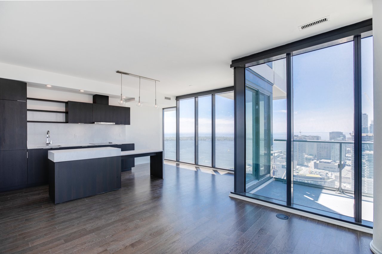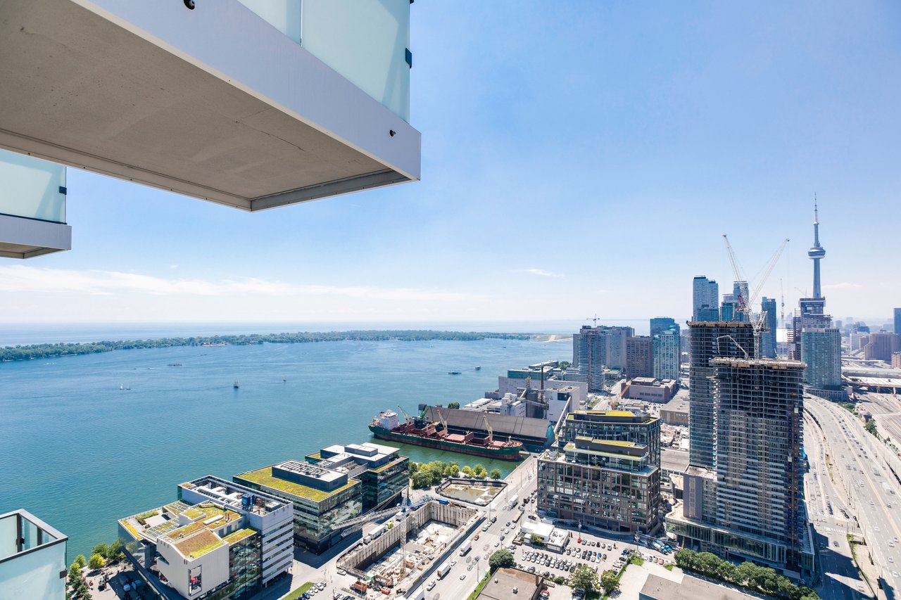Live Where The City Meets The Water At Monde Condos. This Open-Concept 2-Bedroom Corner Sub-Penthouse Showcases Spectacular Views Of Both The Lake And The Downtown Skyline. Floor-To-Ceiling Windows Fill The Suite With Natural Light, Complemented By A Balcony. Additional Highlights Include A Modern Kitchen With A Quartz Centre Island And Engineered Hardwood Flooring Throughout. Residents Enjoy Elevated Amenities, Including An Outdoor Infinity Pool With Cabanas, Expansive Sundeck, Sports & Party Lounge, Fully Equipped Fitness Centre, And Sauna/Steam Rooms. Perfectly Located With Easy Access To The Gardiner Expressway And TTC, And Just A Short Walk To The Distillery District, St. Lawrence Market, Sugar Beach, And A Variety Of Trendy Restaurants And Cafes. Experience Modern Waterfront Living At Its Finest In One Of Toronto's Most Sought-After Communities.