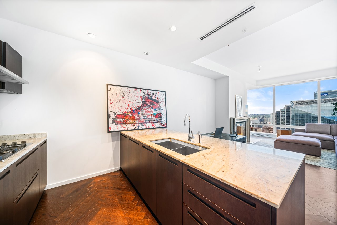 Welcome To The Private Estates At Shangri-La Toronto! Suite 5405 Is A Beautifully Appointed 1 Bedroom, 1 Bathroom Spanning Upwards Of 900SF - This Layout Represents The Largest 1 Bedroom Plan In The Building. As A Resident Of The Private Estates Collection [Floors 50 & Above] You'll Enjoy Soaring 10ft Ceilings, Marble Clad Bathrooms, Direct High Speed Elevators, As Well As Complimentary Valet Services Associated To Your Parking Space. Eastern Exposure Allows For Sweeping City & Lake Ontario Views - Automated Window Coverings Throughout Are Included. Boffi Kitchen Boasts Integrated Miele & Sub Zero Appliances, Gas Cook Top, Stone Countertops & Oversized Island. Primary Bedroom Retreat Offers Large, Walk In Custom Closet & Spa-Like 4pc. Semi-Ensuite Bathroom. 1 Parking & 1 Premium Locker Included [Adjacent To One Another]. Building Is Rich In Amenities: 24 Hr. Concierge, World Renowned Spa, Pool, Sauna, State Of The Art Fitness Centre, Valet & Visitor Parking.