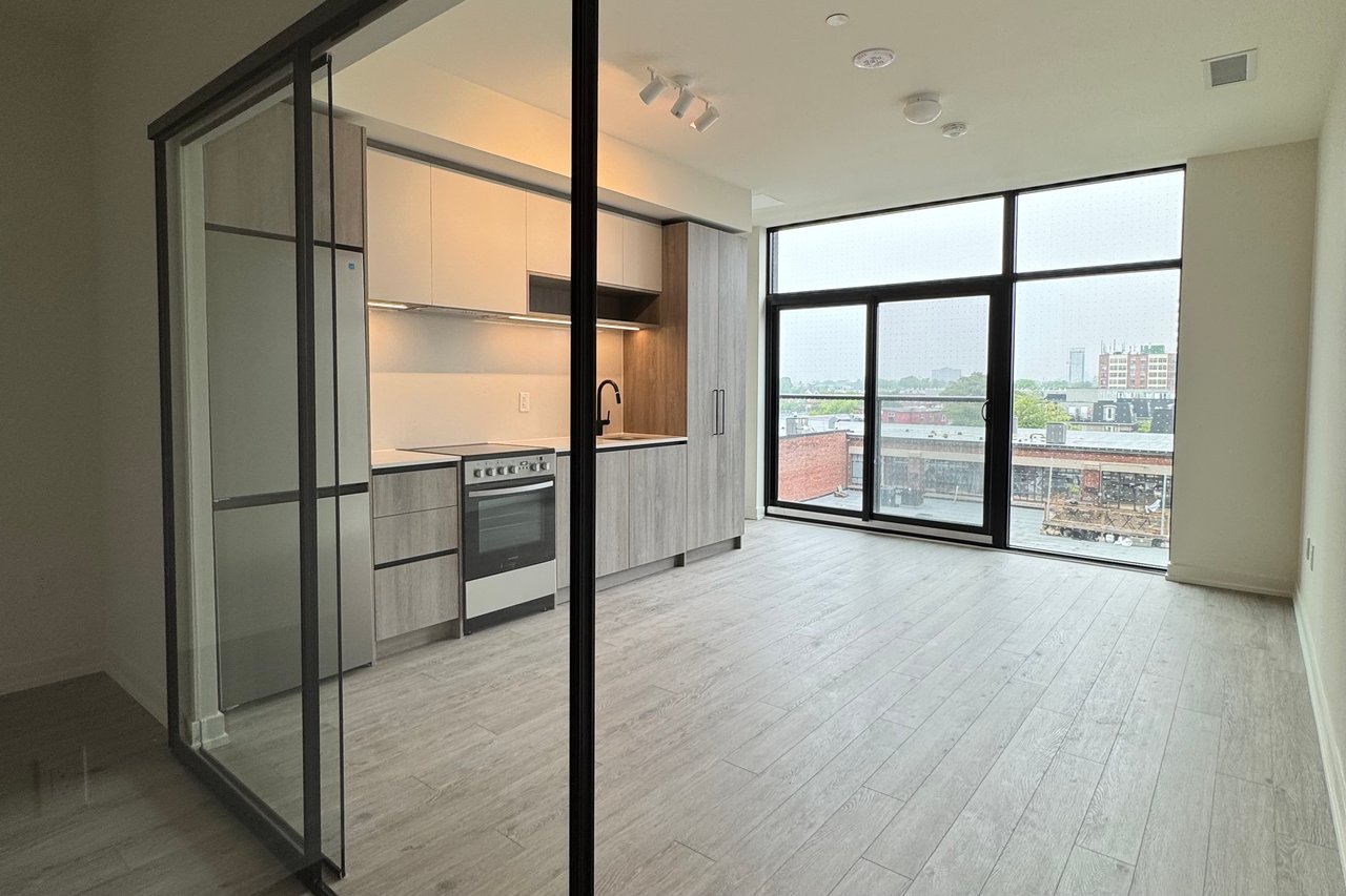 Welcome to 181 Sterling Road House Of Assembly! A bright and spacious 1-bedroom + den / 1 bathroom suite, nestled in one of Torontos most dynamic and rapidly evolving neighbourhoods. This modern residence boasts floor-to-ceiling windows, engineered hardwood flooring, a sleek kitchen with quartz countertops, integrated appliances, and a juliette balcony. The versatile den offers the ideal space for a home office or guest room. One locker is included for additional storage space. Perfectly located with seamless access to GO Bloor Station, UP Express, TTC, and the West Toronto Rail path. Just steps to MOCA, Henderson Brewery, local cafés, and vibrant shops. Exceptional building amenities include a fully equipped gym, yoga studio, rooftop terrace, and a co-working lounge urban living at its finest.