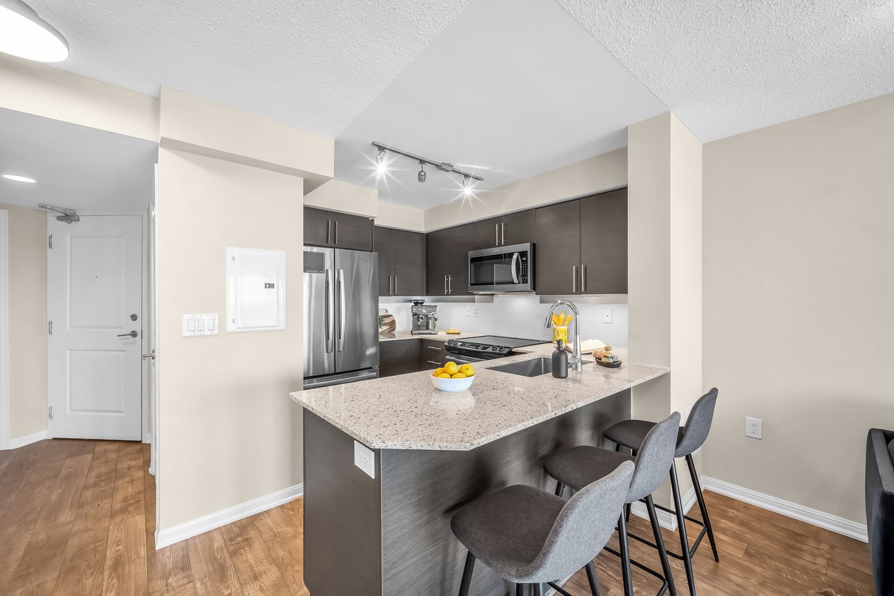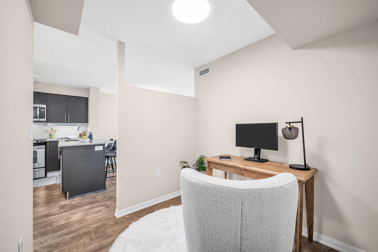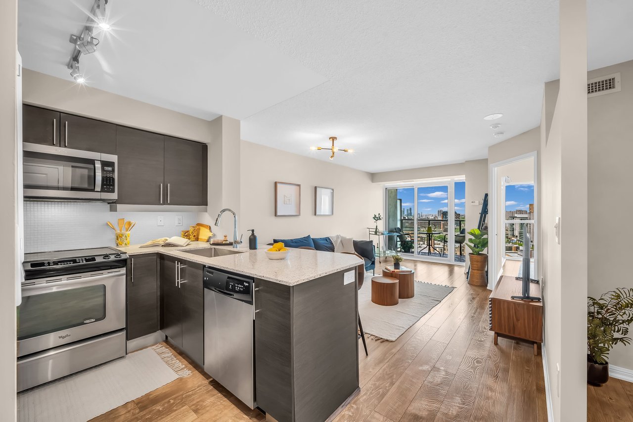 Kick Off Your House-Hunting Shoes, The Perfect Unit Has Hit The Market!** Picture This: A Meticulously Maintained 1 Bedroom + An Actual Den (Not A Dent In The Wall), Not One But TWO Full Bathrooms, Parking For Your Wheels, & A Locker To Stash All Your Treasures. But Wait, There's More! Say Hello To Freshly Painted Walls, Upgraded Flooring Throughout, New Kitchencountertop & Brand New Fixtures!But The Fun Doesn't Stop There. Step Outside, And You're Greeted By The Hustle And Bustle Oftoronto's Vibrant Scene. Need Groceries? Metro's Just A Hop, Skip, & A Jump Away. Craving Some Delicious Eats Or A Caffeine Fix? Restaurants & Cafes Are Lining Up To Cater To Your Every Whim! And Let's Talk Convenience. With The TTC At Your Fingertips & Major Highways Within Reach, Getting Around Town Is A Breeze.