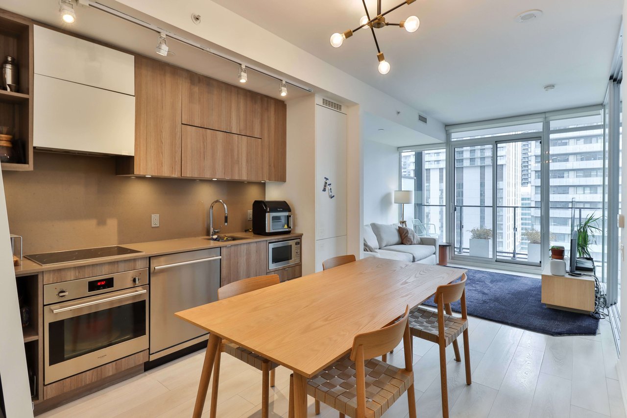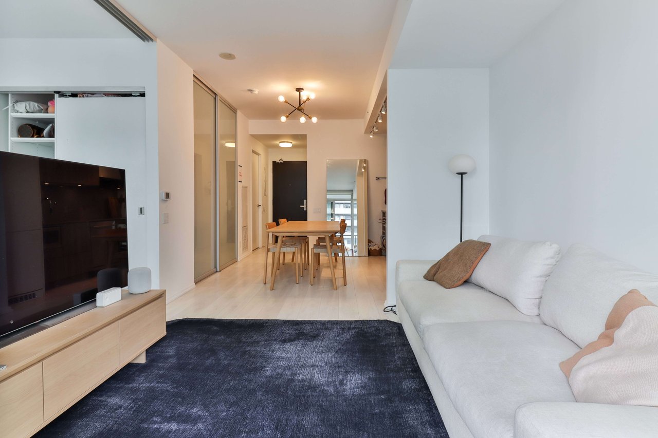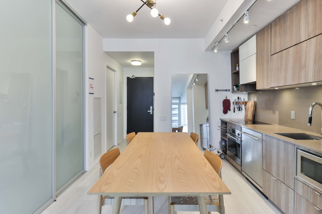 Welcome To This Beautiful & Well-Maintained 1 Bdrm + Den, 1 Bath At Tableau Condos! This South Facing Unit Features A Spacious & Functional Layout W/ 9 Ft Ceilings, Modern Kitchen W/ Integrated Appliances & Luxury Finishes By Cecconi Simone, Large Walk-In Laundry Rm W/ Storage, Primary Bdrm W/ Floor-To-Ceiling Windows & Gorgeous Custom Closet W/ Built-In Storage & Lighting, Spacious Separate Den W/ Sliding Door, & Impressively Large Balcony! Ideally Located In The Heart Of Downtown, Walking Distance To Everything You Could Ever Need: Ttc, Restaurants, Nightlife, Shopping, Sporting Venues, Cafes, Parks, Financial District, Chinatown, Theatres, Tiff Lightbox, Banks, The Path, Lcbo, Hospitals, Next Door To Grocery Store! Easy Access To Gardiner Expressway.