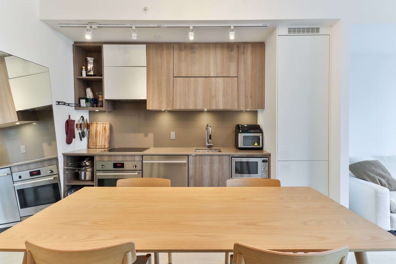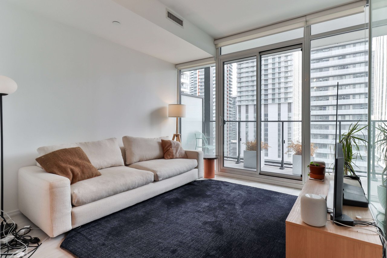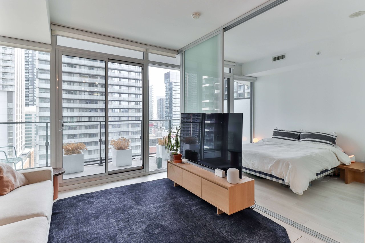 Welcome To This Beautiful & Well-Maintained 1 Bdrm + Den, 1 Bath At Tableau Condos! This South Facing Unit Features A Spacious & Functional Layout W/ 9 Ft Ceilings, Modern Kitchen W/ Integrated Appliances & Luxury Finishes By Cecconi Simone, Large Walk-In Laundry Rm W/ Storage, Primary Bdrm W/ Floor-To-Ceiling Windows & Gorgeous Custom Closet W/ Built-In Storage & Lighting, Spacious Separate Den W/ Sliding Door, & Impressively Large Balcony! Ideally Located In The Heart Of Downtown, Walking Distance To Everything You Could Ever Need: Ttc, Restaurants, Nightlife, Shopping, Sporting Venues, Cafes, Parks, Financial District, Chinatown, Theatres, Tiff Lightbox, Banks, The Path, Lcbo, Hospitals, Next Door To Grocery Store! Easy Access To Gardiner Expressway.