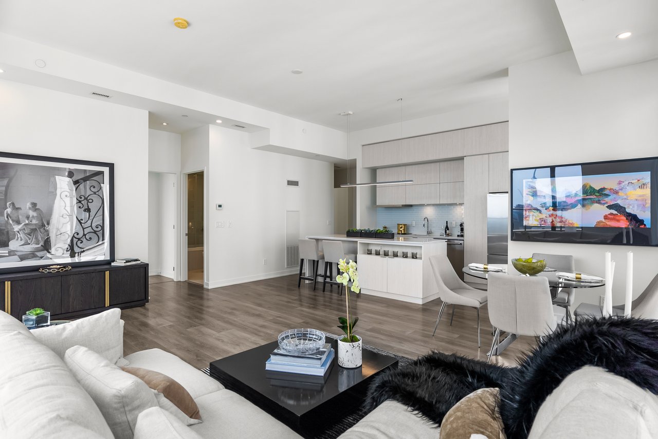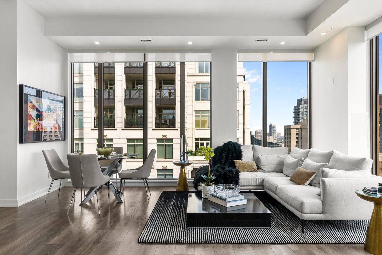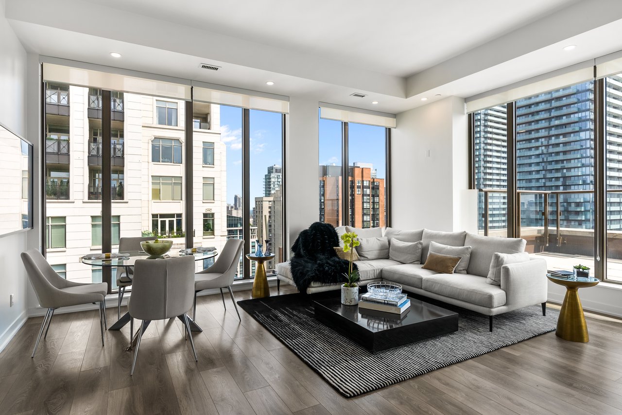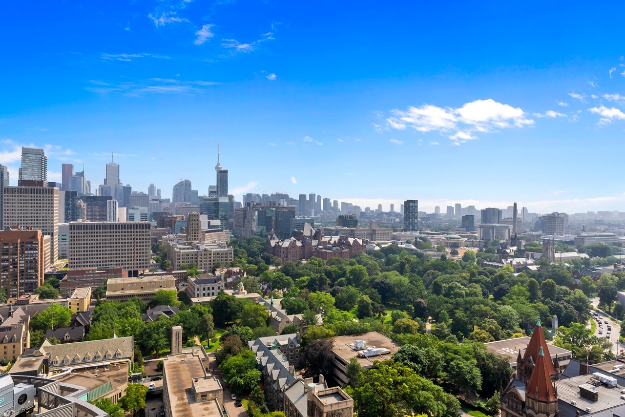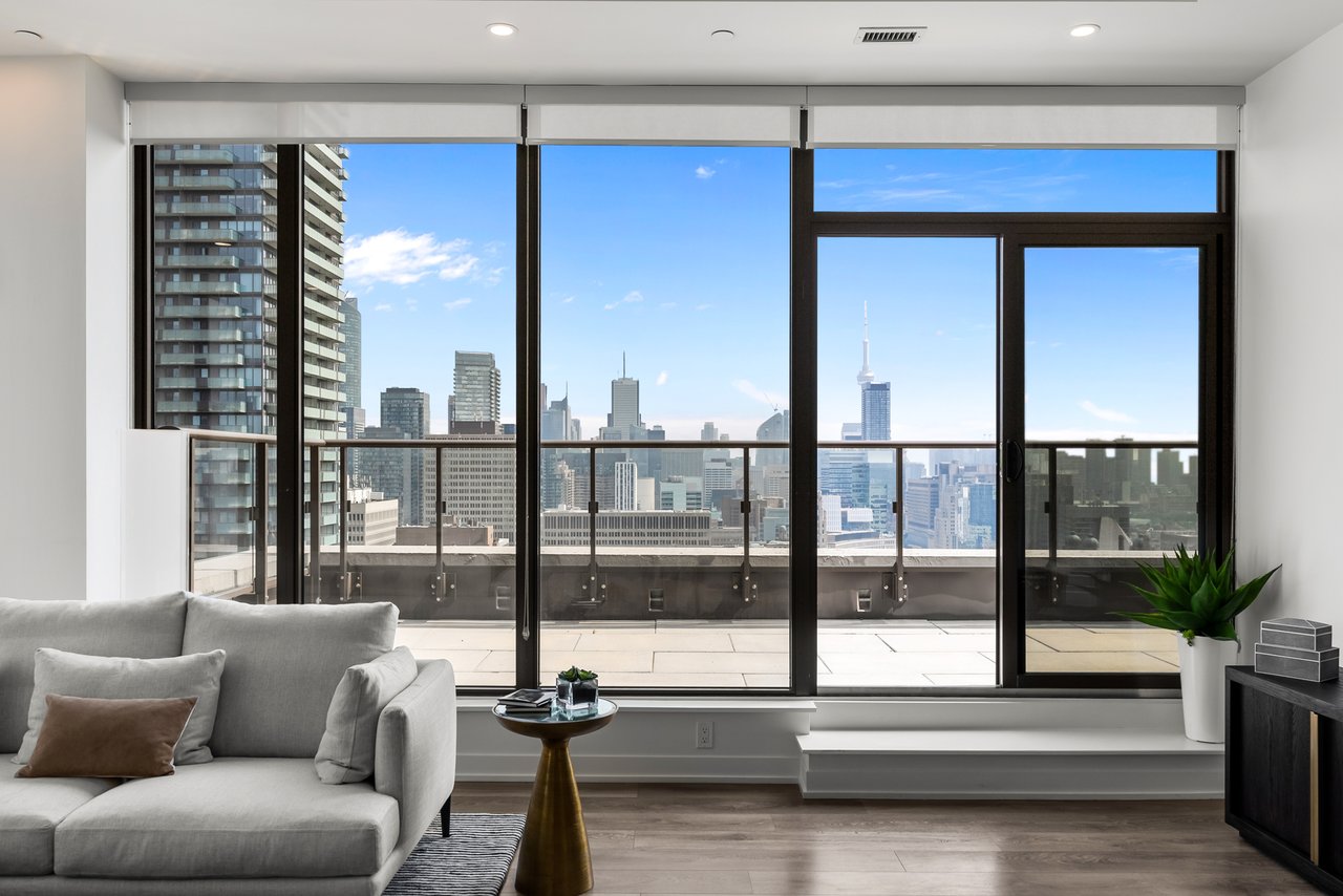 Welcome to Two St. Thomas, where luxury living meets exceptional service, just steps from Yorkville. This impressive penthouse corner suite offers a spacious split-bedroom layout with 2 bedrooms, 2 bathrooms, a den, and 1,245 sq. ft. of interior space. Soaring 11-foot ceilings enhance the open feel of the kitchen, dining, and living areas, while expansive floor-to-ceiling windows fill the home with natural light. Thoughtfully designed for indoor-outdoor living, the suite features a 250 sq. ft. south-east facing terrace, ideal for hosting or unwinding with scenic views of the Toronto skyline. Residents of Two St. Thomas enjoy world-class amenities, including a full-service concierge, state-of-the-art fitness centre, rooftop terrace with BBQs and lounge areas, party room, and an in-house pet spa. Experience the best of luxury living just steps from Yorkville's finest shops, dining, and lifestyle offerings.
