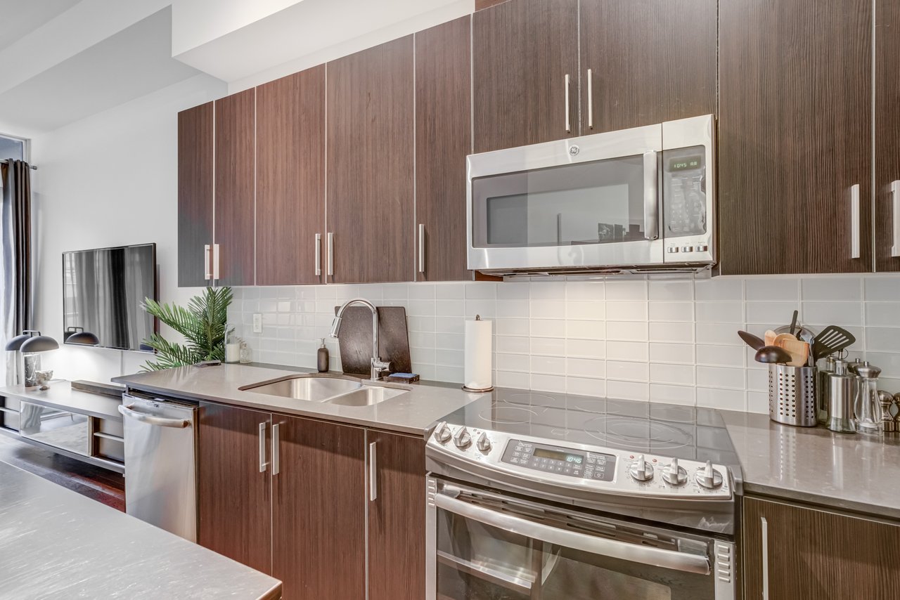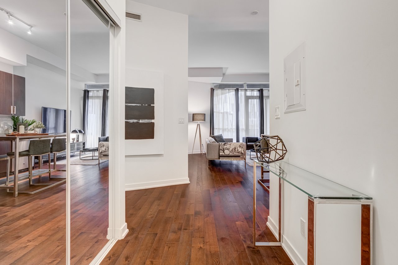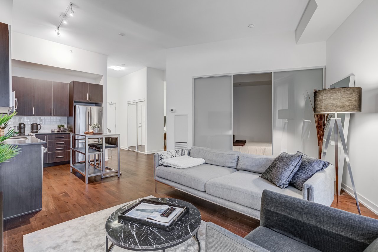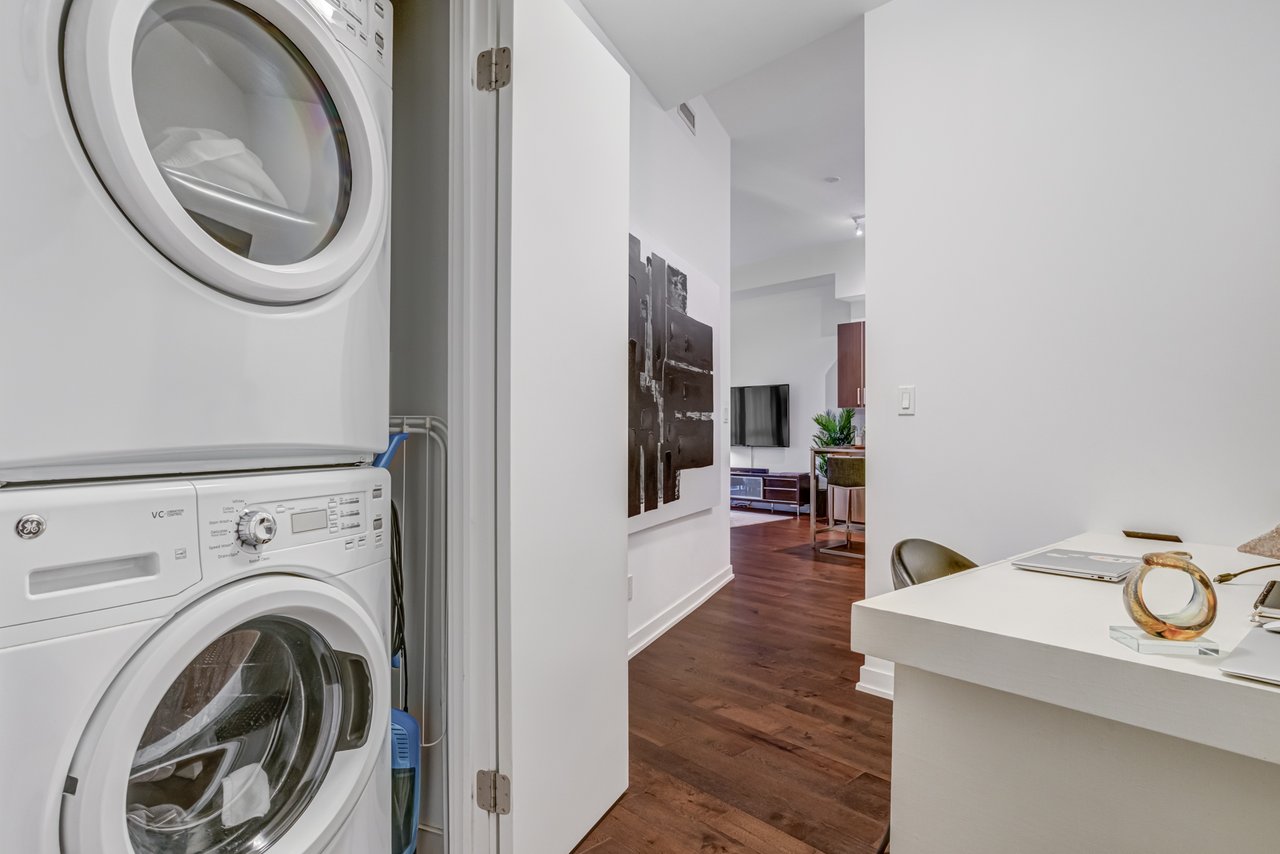Welcome To The Yards At Fort York. This Absolutely Stunning Open Concept **760 Square Foot Unit Has Many Upgrades: 11 Foot Smooth Ceilings ** Engineered 4 Inch Hardwood ** Gourmet Kitchen ** Upgraded Stainless Steel Appliances (Waterline) ** Backsplash Tiles And Extended Upper Cabinets ** Marble/Limestone In The Bathroom. This Unit Is Very Spacious And An Entertainers Delight.