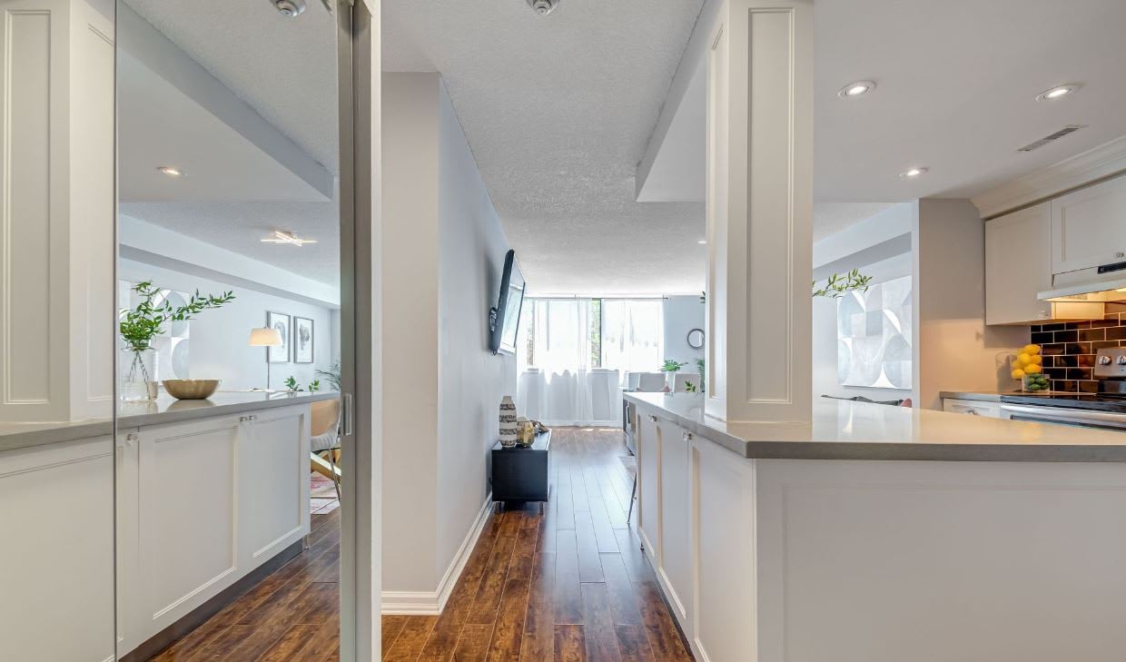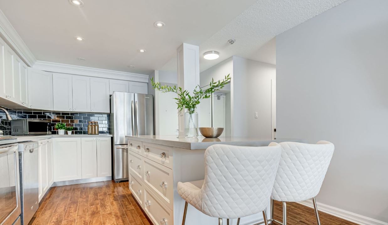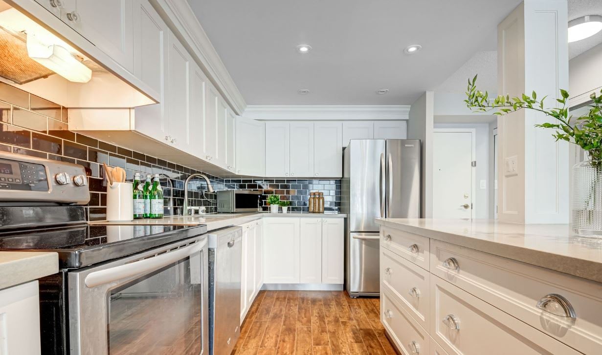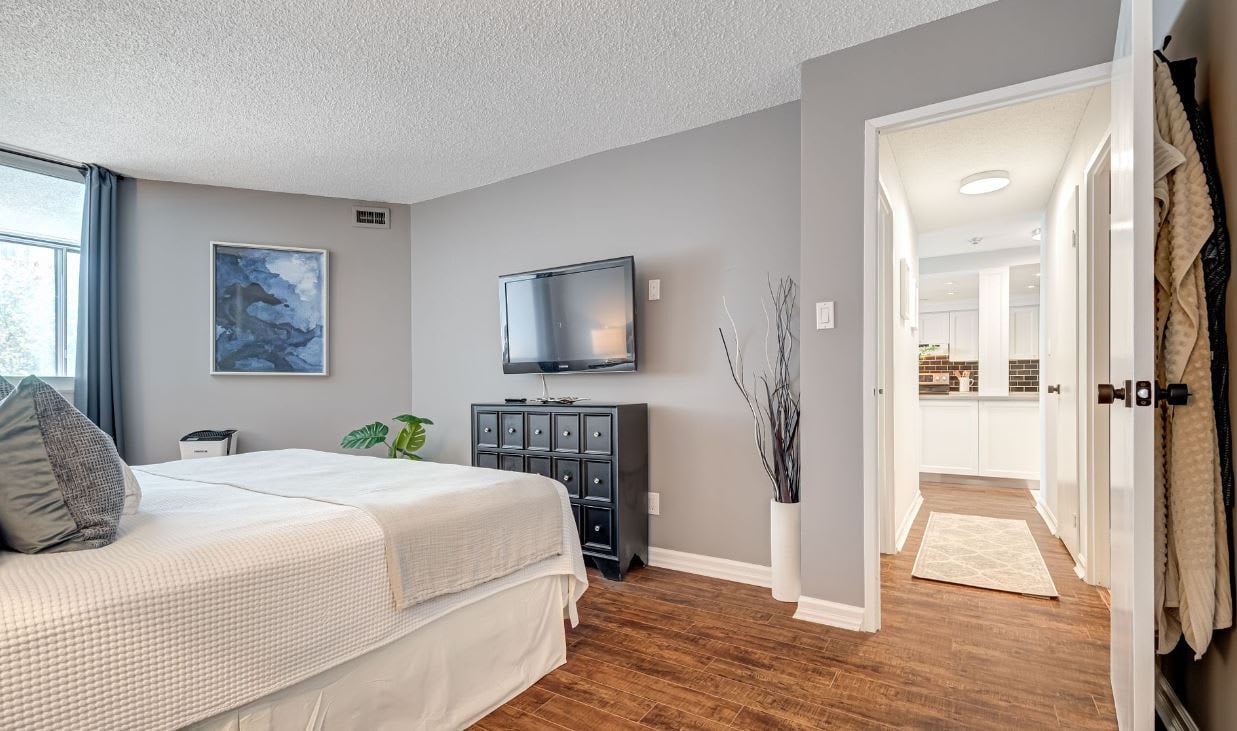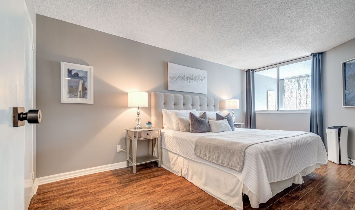 Welcome To Village Gate! This Is A Fully Renovated Unit With Two Bedrooms And A Solarium That Can Easily Be A Third Bedroom, It Has A Very Functional Layout, A Designer Kitchen With Cesar Stone Countertops, Breakfast Bar, Stainless Steel Appliances, Laminate Flooring, Tasteful Light Fixtures, Ensuite Laundry, Freshly Painted Unit And Has Large Windows That Flood This Home With An Abundance Of Natural Light. This Building Is Very Well Maintained And Is Located In A Quite/Friendly Community Close To Highways, Parks, Schools, Shopping Centres, And Transit Right At Your Doorstep! It's Move-In Ready! Come And Visit Asap!