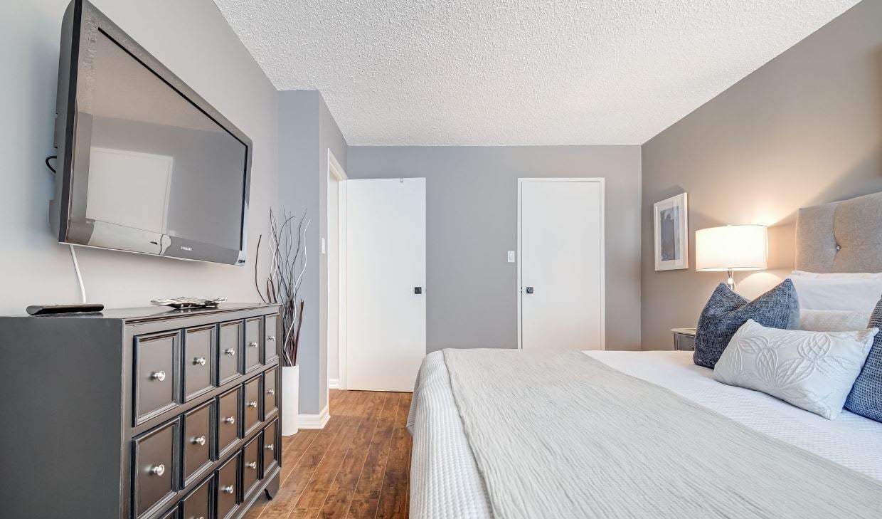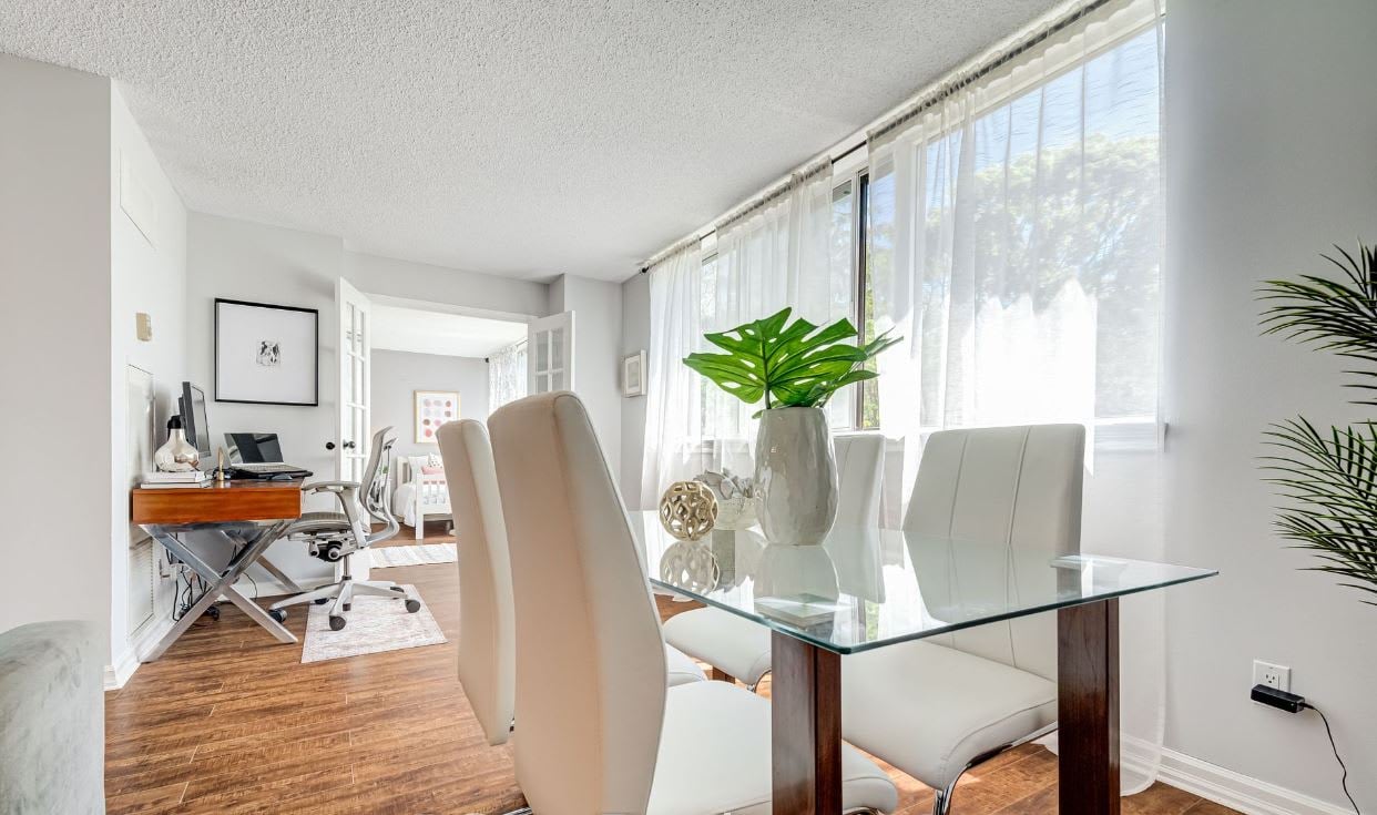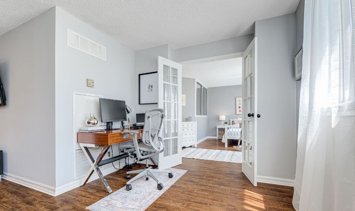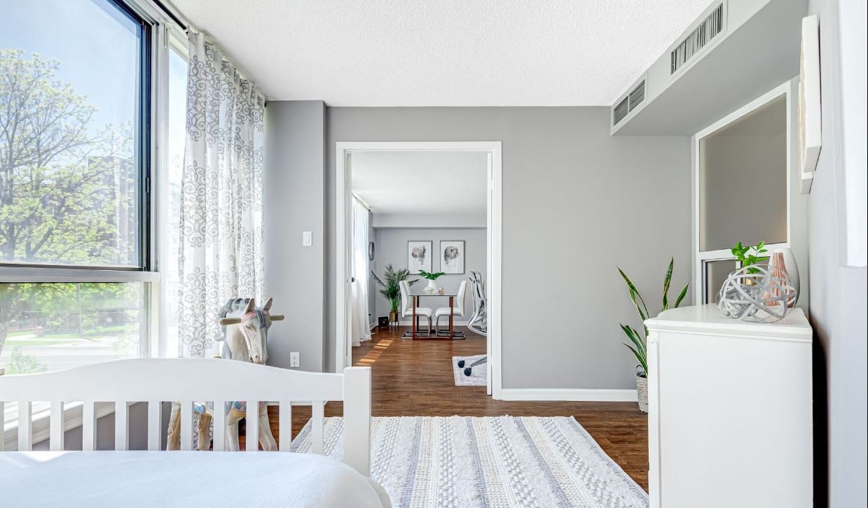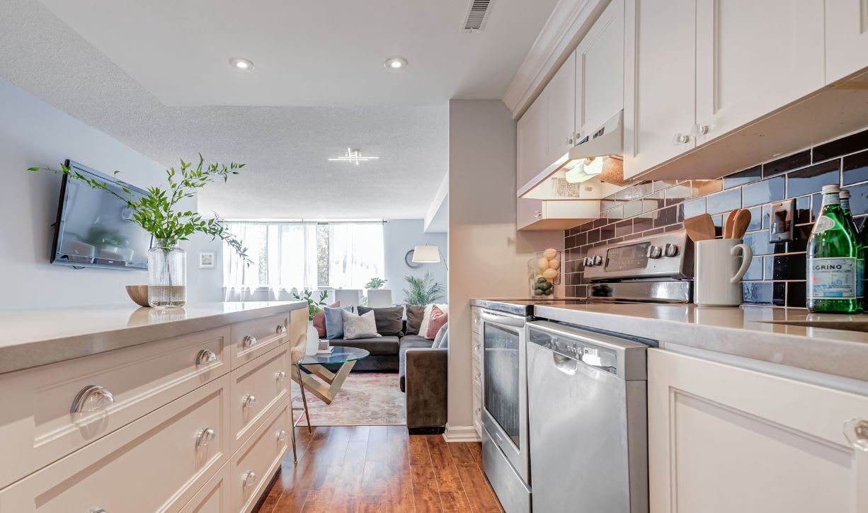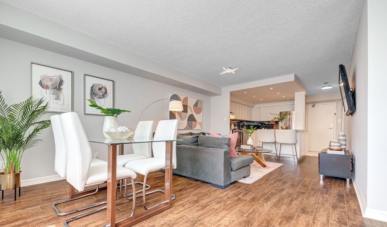 Welcome To Village Gate! This Is A Fully Renovated Unit With Two Bedrooms And A Solarium That Can Easily Be A Third Bedroom, It Has A Very Functional Layout, A Designer Kitchen With Cesar Stone Countertops, Breakfast Bar, Stainless Steel Appliances, Laminate Flooring, Tasteful Light Fixtures, Ensuite Laundry, Freshly Painted Unit And Has Large Windows That Flood This Home With An Abundance Of Natural Light. This Building Is Very Well Maintained And Is Located In A Quite/Friendly Community Close To Highways, Parks, Schools, Shopping Centres, And Transit Right At Your Doorstep! It's Move-In Ready! Come And Visit Asap!