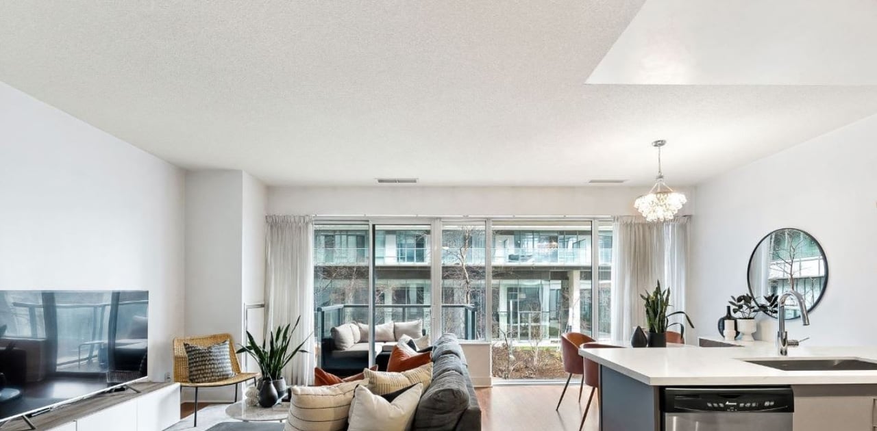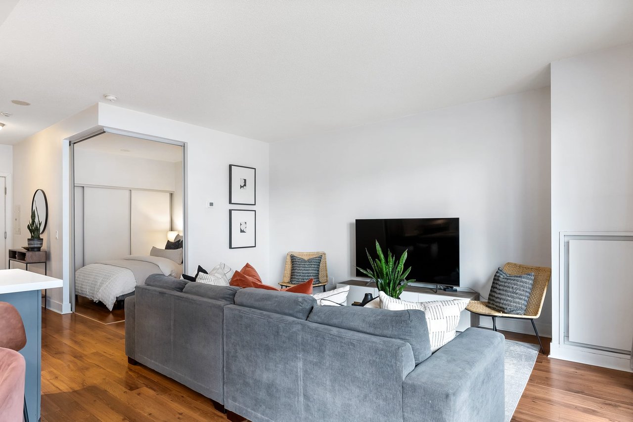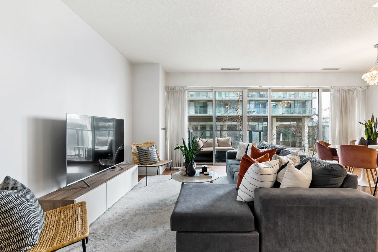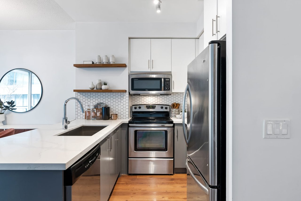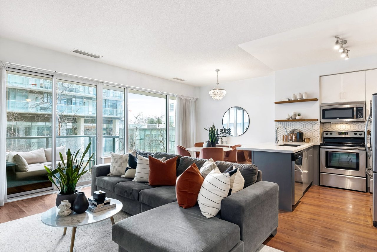 Chic Urban Living Awaits! Beautifully Appointed 1 Bedroom, 1 Bathroom Suite Nestled In The Highly Sought After Quay West Condos - Offering Not Just A Home But A Lifestyle. Enjoy Rarely Available, Open-Concept Floorplan Spanning Just Shy Of 700 SF. For The Eco-Conscious, This Urban Gem Comes With 1 Parking Space Equipped With One Of The Last Building Permitted EV/Tesla Chargers - Your Gateway To Sustainable & Convenient Living. Layout Boasts An Airy & Inviting Atmosphere. Modern Kitchen, Recently Renovated With Full Sized Stainless Steel Appliances, Quartz Countertops, Designer Backsplash, & Oversized Island. Primary Bedroom Offers Large Custom Closet & Frosted Glass Doors For Added Privacy. West Exposure Lends To Ample Natural Light With Floor To Ceiling Windows, Private Balcony, & Serene Garden Views.Building Is Rich In Amenities; 24hr Concierge, Visitor Parking, State Of The Art Fitness Centre, Sauna, Business Centre, Guest Suites, & Much More. This Is Your Opportunity To Live The Quintessential City Life With Tranquil Waterfront Trails & Parks Just Steps From Your Doorstep.