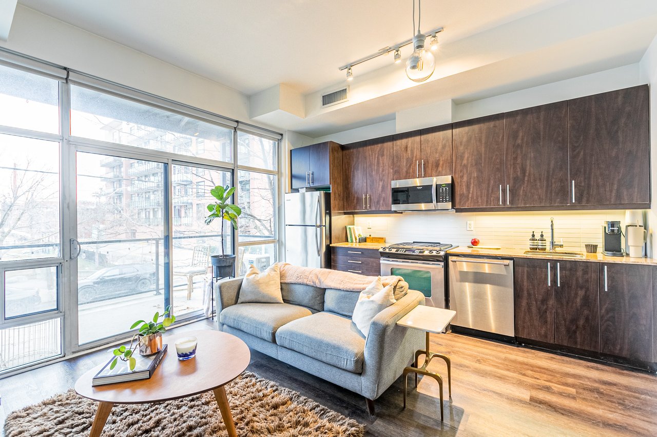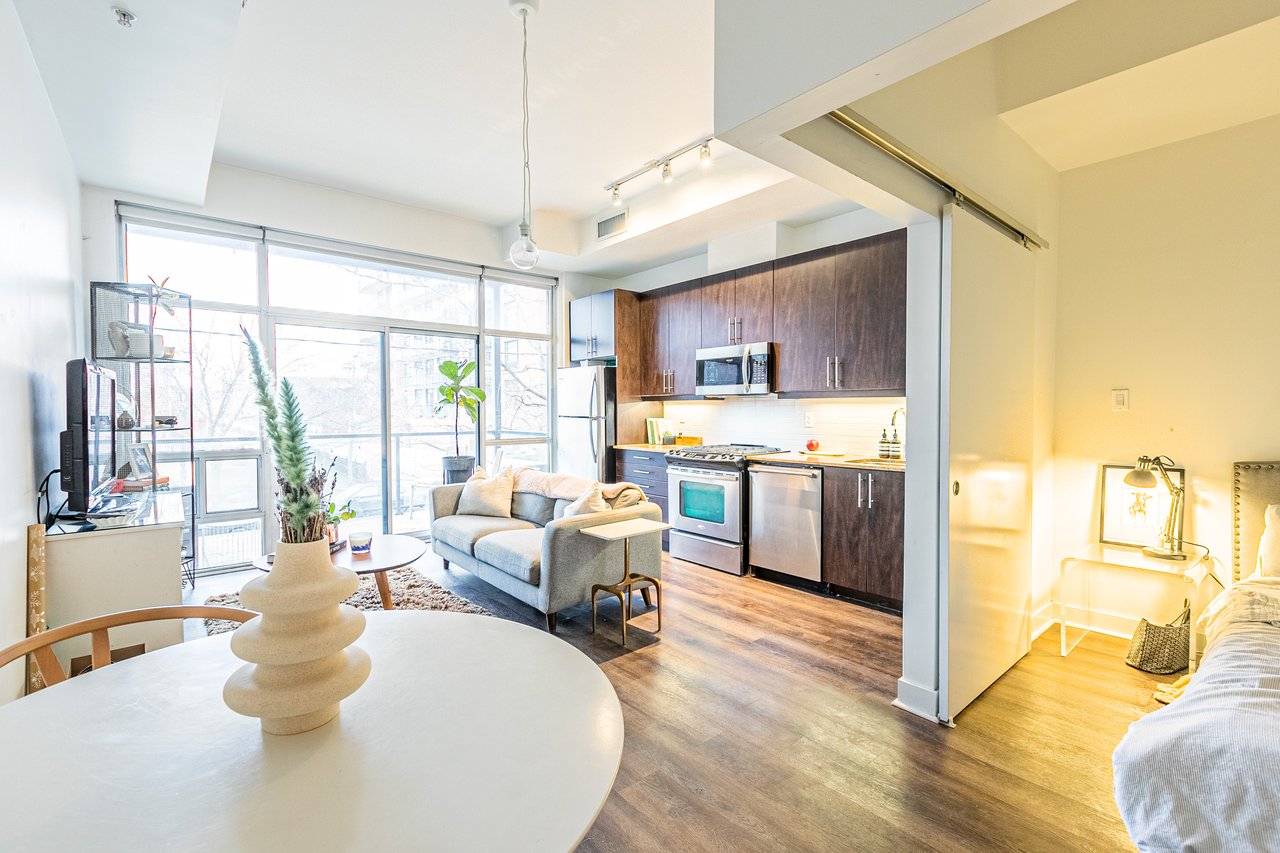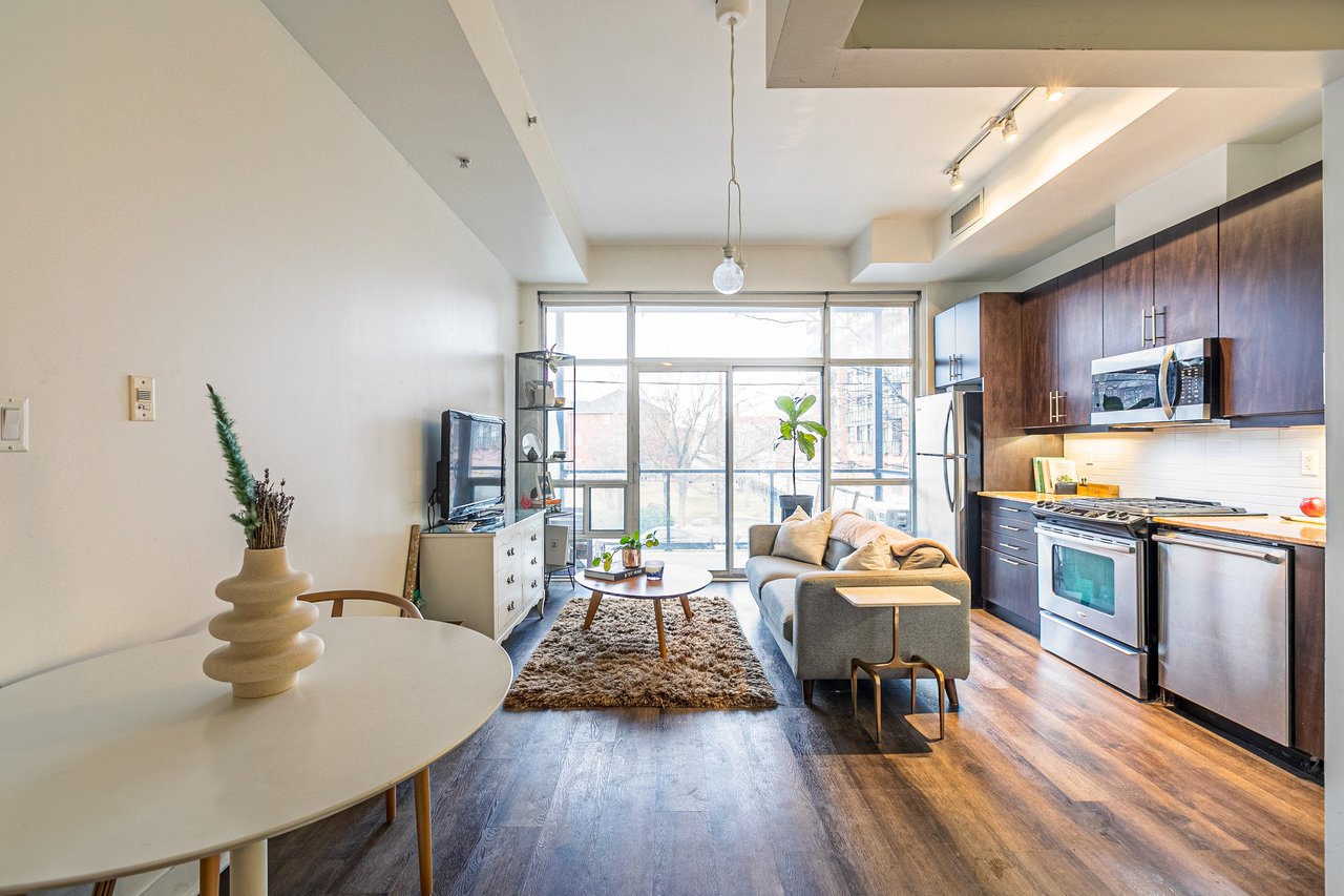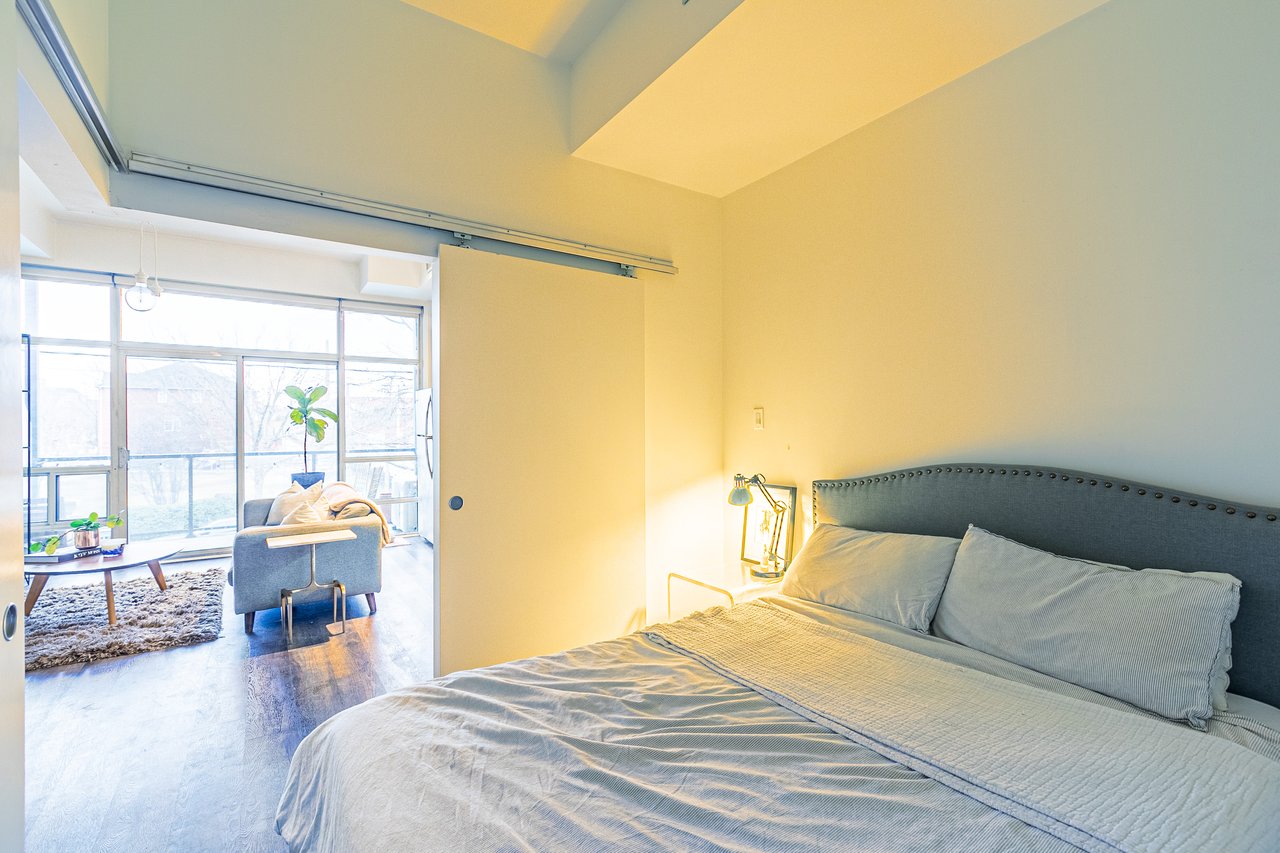 Welcome to Adobe Lofts in Leslieville! Bright One-bedroom unit facing a beautiful private park. BBQ hookup on your own oversized balcony just in time for the warmer weather! Renovated and spacious unit, located on a quiet tree-lined street, just steps to bustling Queen St E. You'll fall in love with this rarely available suite in this boutique four-storey building.