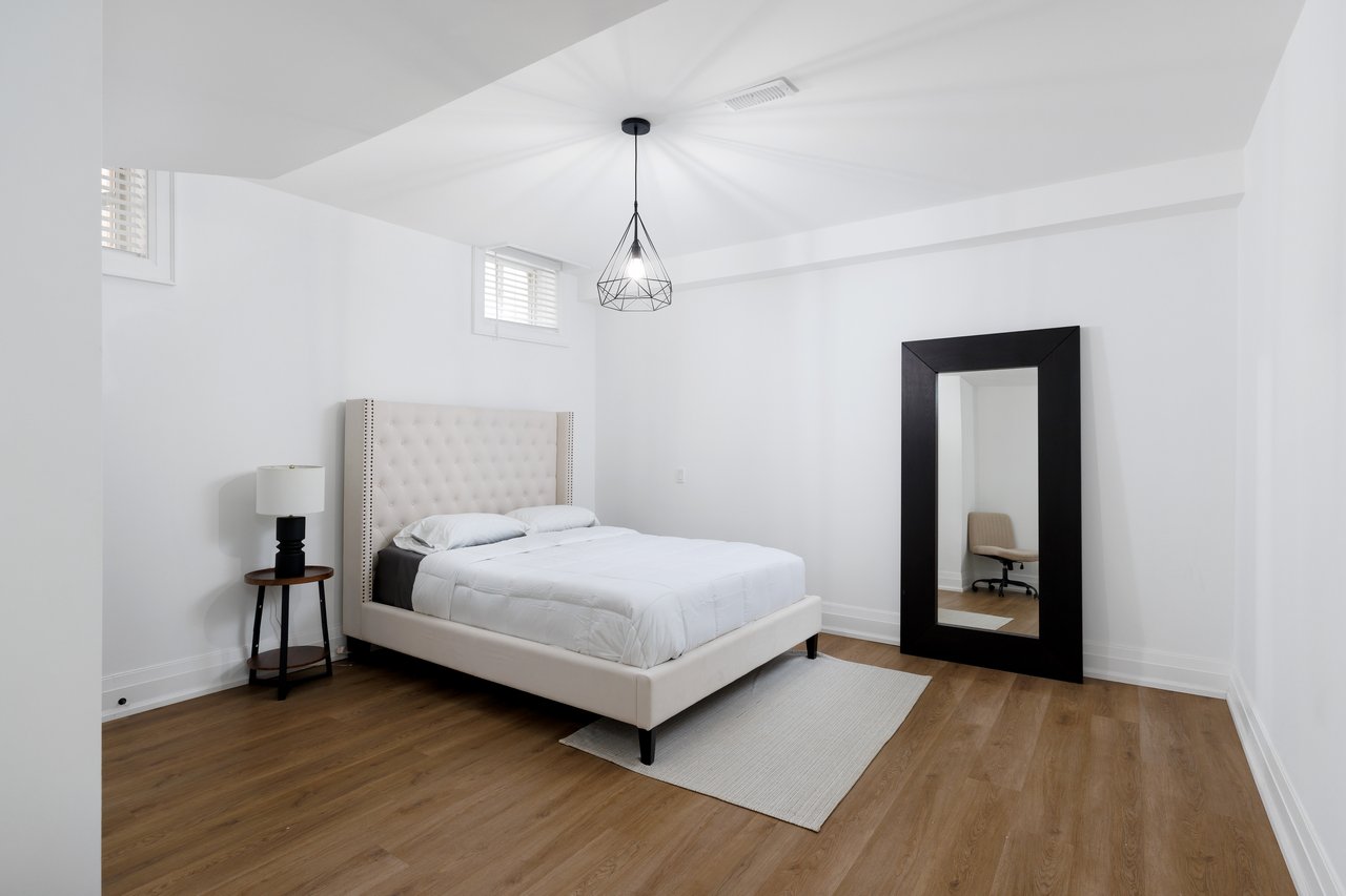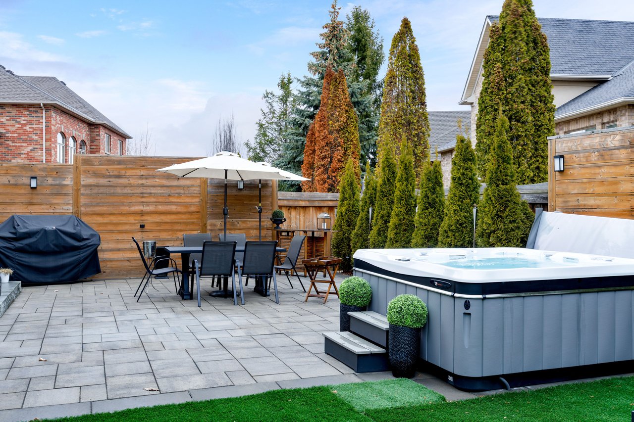 Welcome to 2040 Bingley Crescent, a fully customized Fernbrook bungaloft set on a premium 56 ft ravine lined lot in sought-after Bronte Creek, steps to Bronte Creek Provincial Park. Offering over 3,300 sq.ft. above grade plus a finished lower level, this extensively redesigned home, showcases elevated, designer finishes throughout. Professionally landscaped with irrigation, an oversized driveway and 2-car garage, plus a private, resort-style backyard featuring a Caldera hot tub, cabana shed, maintenance-free turf, hardscaping, and gas BBQ line. Inside, a sun-filled 2-storey foyer with custom millwork leads to an open-concept main floor with office, formal dining, and a stunning Misani kitchen with Wolf & Sub-Zero appliances overlooking a dramatic 2-storey great room. Rare main floor primary retreat with custom his & hers closets and a spa-inspired 7-piece ensuite. Upper level offers 2 bedrooms with California Closets and a 5-piece bath. Finished basement with 9 ft ceilings includes a gym, bar, rec/media space, 4th bedroom, bath, and ample storage. Extensive upgrades throughout including custom millwork, Kohler fixtures, heated floors, designer lighting, new trim, doors, roof, furnace, and A/C. A refined, turnkey offering in one of Oakville's most desirable communities.