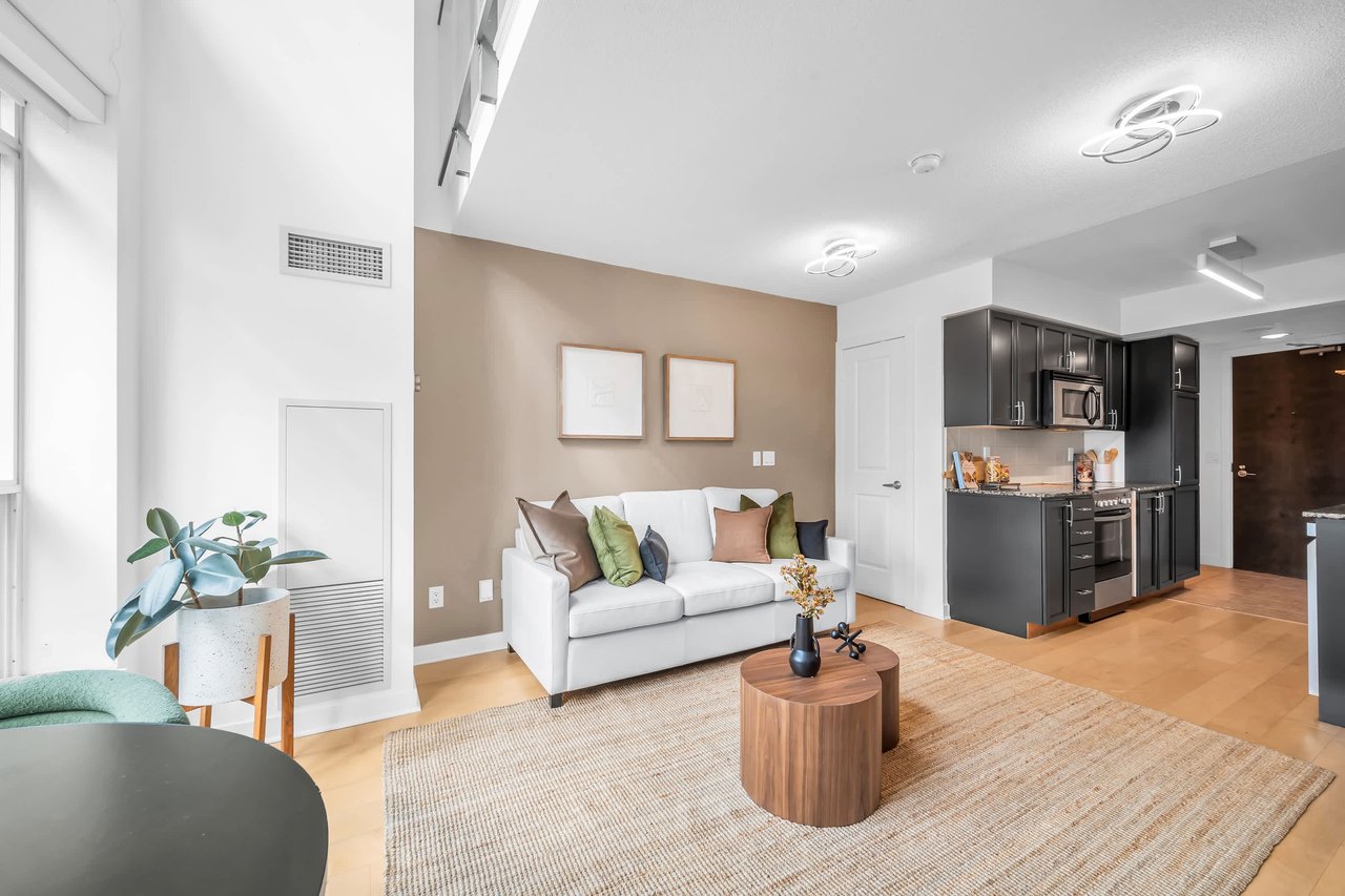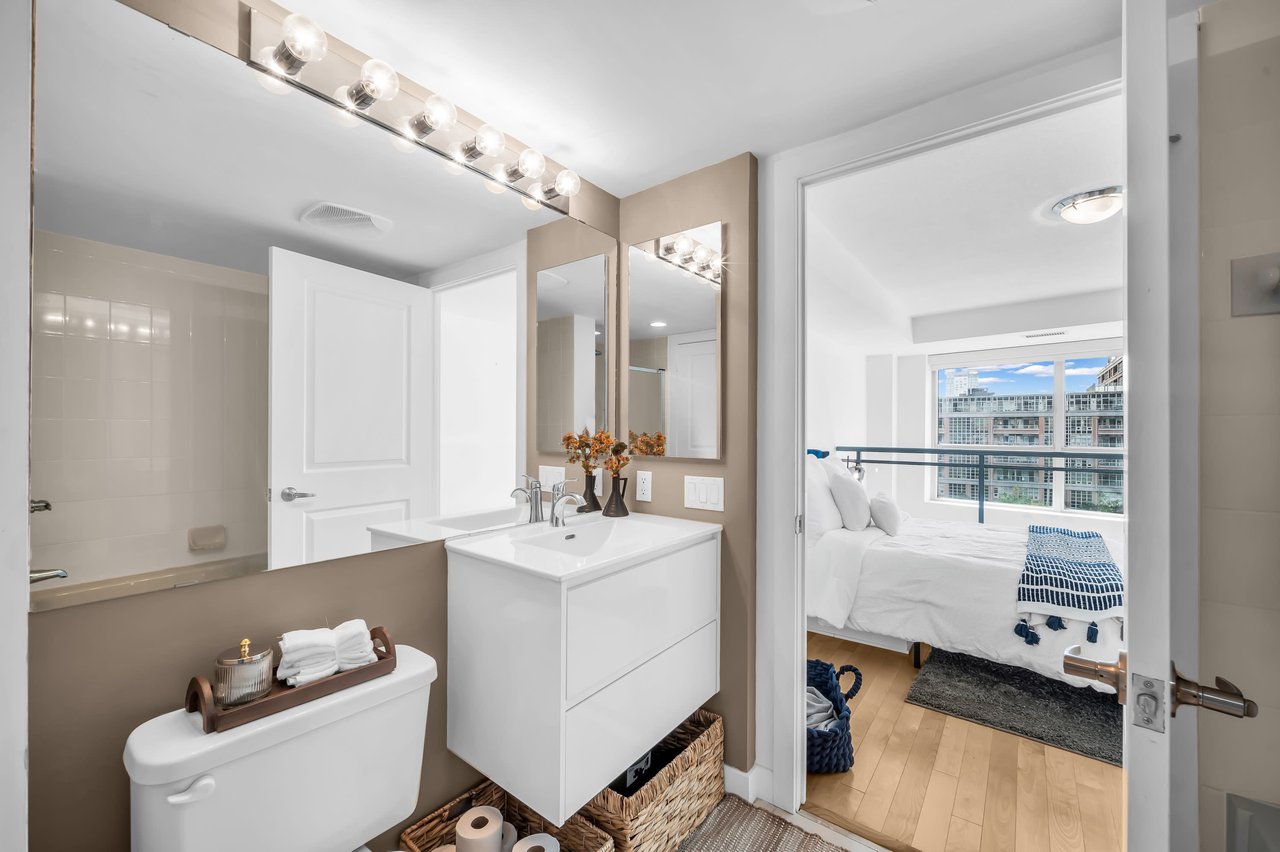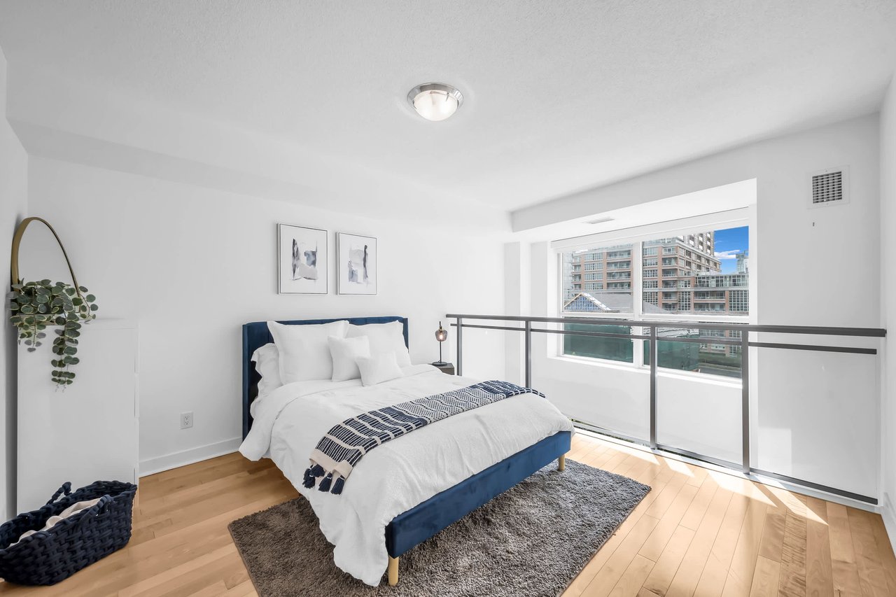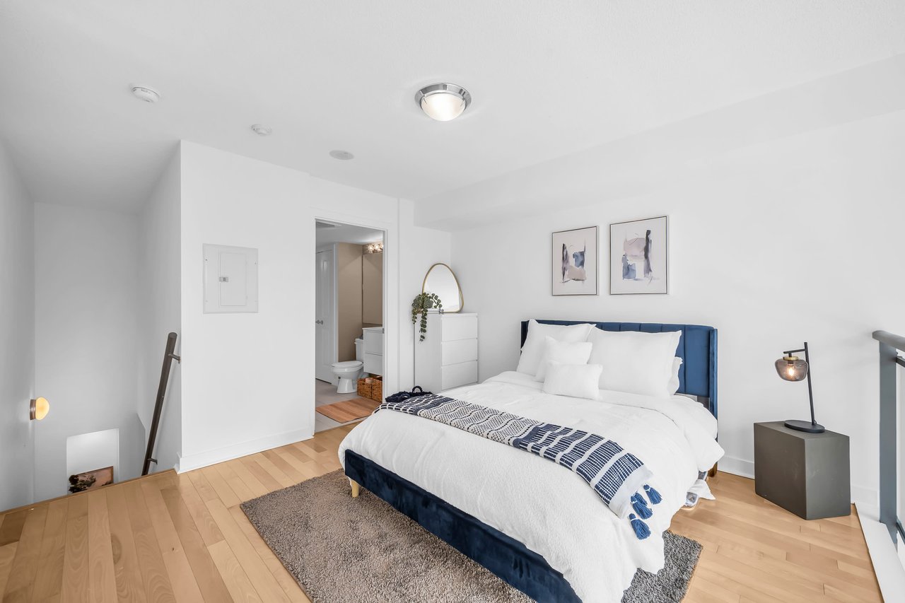 Step Into This 700 Sq. Ft., 2-Storey Stunner And Prepare To Fall Head Over Heels. With A Bright South-Facing Exposure Overlooking The Park, This Place Is Drenched In Natural Light-Perfect For Plant Parents & Sun Lovers Alike. The Layout? Incredibly Functional. Every Inch Is Maximized In This Spacious 1-Bedroom Loft, Complete With 2 Washrooms Because, Let's Be Real, One Is Never Enough. Now, Let's Talk Storage Goals. We're Talking Built-In Storage To Keep Your Wardrobe Marie Kondo-Level Organized Without Lifting A Finger. Got More Stuff Than You Care To Admit? No Sweat, There's A Massive Locker Just Steps Away On The Same Floor, So You Can Stash Those "Just In Case" Items With Ease. And The Best Part? You Control The Vibe. With Motorized Blinds, The Sunshine (Or Shade) Is Literally At Your Fingertips. One Click And Viola-Sunshine Pours In. Manual Blinds! Never Heard Of Her.