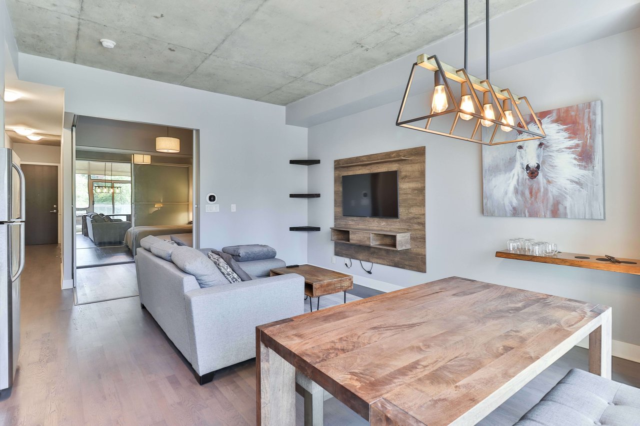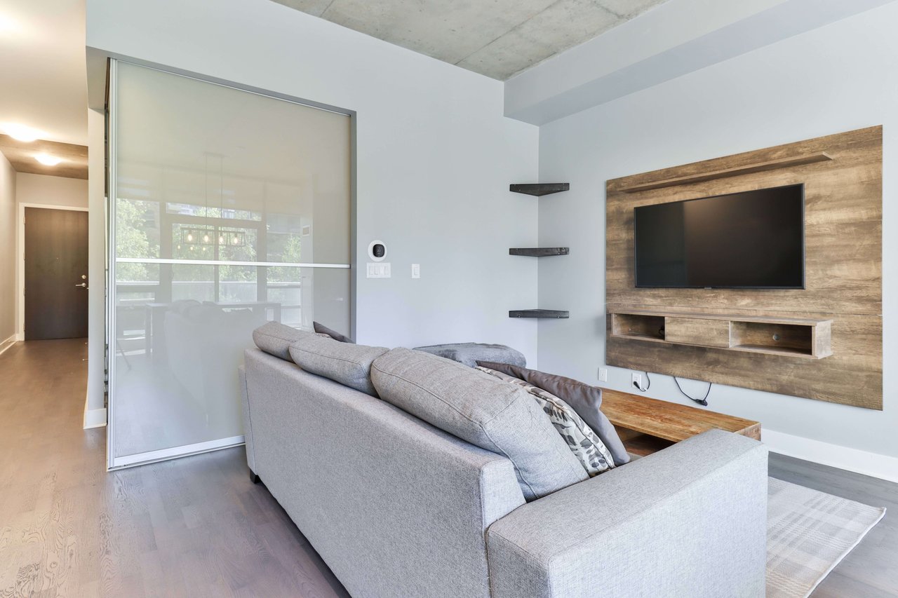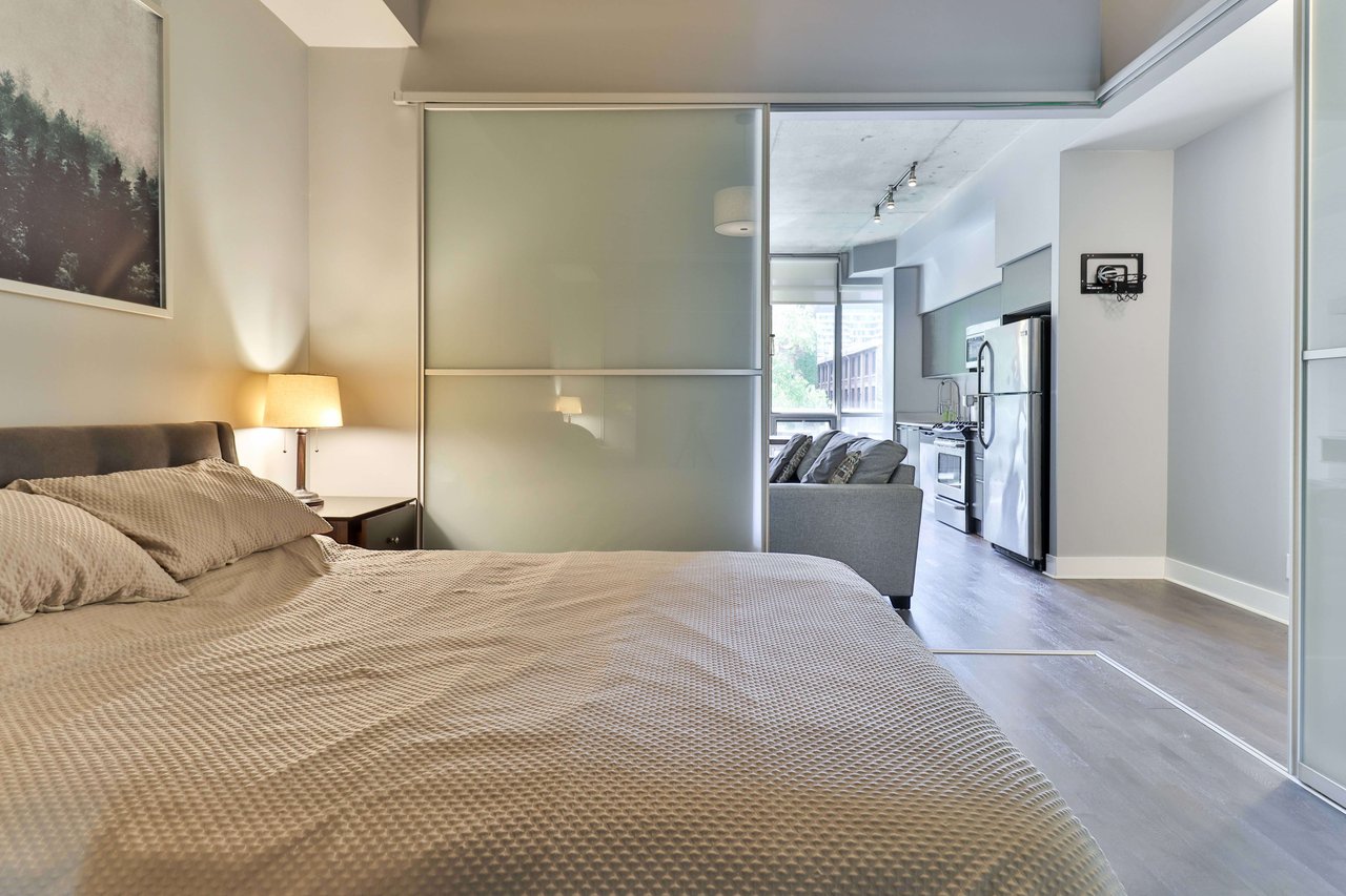 Welcome To 399 Lofts, A Boutique Loft Building W/ Fantastic Amenities Centrally Located Between King West, Queen West, Entertainment District + Financial District! Spacious & Fully FURNISHED South Facing 1 Bed + Den, 1 Bath, 755 Sq Ft + Balcony, Featuring 10 Ft Exposed Concrete Ceilings, Huge Primary Bdrm Closet, Kitchen W/ Gas Stove & Full Sized Stainless Steel Appliances, Bathroom W/ Step-In Glass Shower, Large Open Concept Living/Dining Area, Separate Den, Hardwood Floors Throughout & Large Balcony Overlooking Courtyard. Parking Included! Walk Score 100! Steps To King & Queen West Bars/Restaurants, TTC, Grocery, Financial District, Gardiner Expressway, Rogers Centre, Chinatown, Shops, & More!