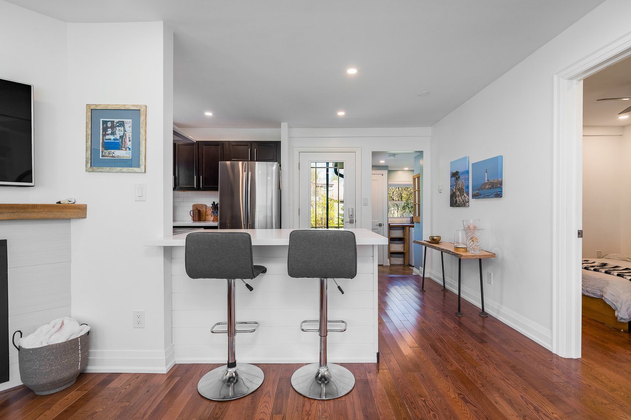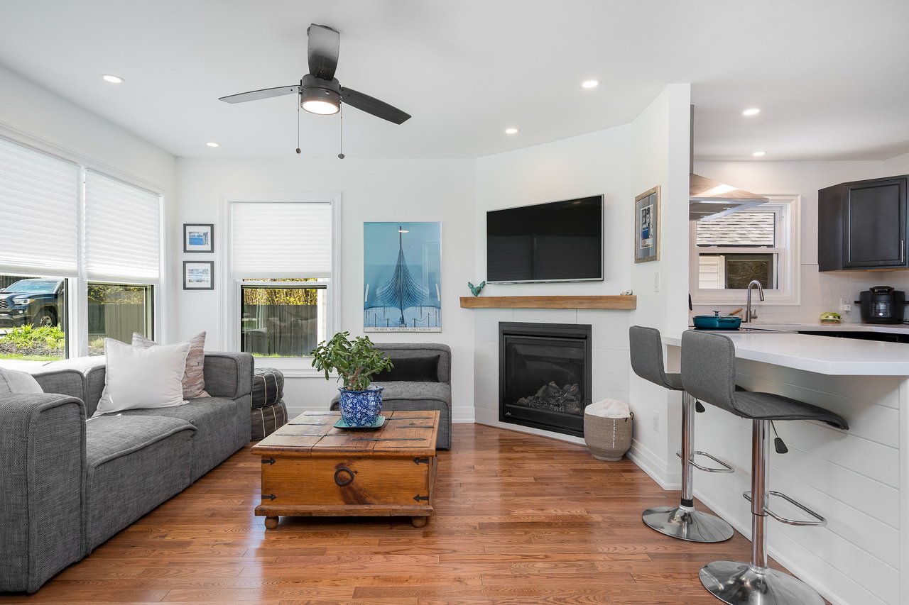 Nestled at the end of a quiet dead-end street and surrounded by nature, this bright and beautifully updated 2-bedroom, 1-bathroom bungalow offers the perfect blend of tranquility and convenience. Back yard is a spacious serenity zone. Elegant landscaping frames the property. Fully renovated and reconstructed in 2021, the home features hardwood floors, a stylish kitchen with stone countertops, gas fireplace, modern pot lights, and an abundance of natural light throughout. Windows were upgraded in Spring 2022 with award winning Ecotech and an EV charger has been thoughtfully installed for your convenience. A versatile detached garage provides even more possibilities - use it as a gym, studio, workshop, or extra storage space to suit your lifestyle needs. Located just steps from the pristine shores of Georgian Bay, you'll enjoy quick access to kayaking, skiing, golfing, bike/walking trails, and the world's longest freshwater beach - Wasaga Beach. Explore nearby shops, restaurants, charming Sunset Point, Blue Mountain Village, skiing/snowboarding in the winter, a movie theatre, hospital, and a vibrant calendar of local events year-round. Also listed for SALE, MLS#S12145577.
