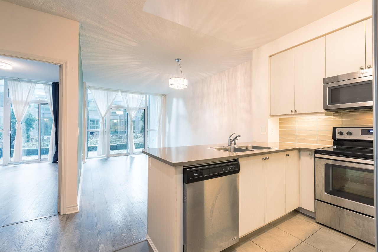 Location Is Key! This Ground-Level One-Bedroom Suite Offers Direct Access To Your Own Private Terrace. The Generous Primary Bedroom Includes A Double-Door Closet And Expansive Floor-To-Ceiling Windows. The Open-Plan Kitchen/Living Area, Featuring A Spacious Center Island, Is Perfect For Hosting Guests. Take Advantage Of A Wealth Of Amenities Including A Gym, Party Room, BBQ Area, Games Room, Basketball Court, And Guest Suites. Conveniently Situated Just Steps Away From The PATH, Events, CN Tower, Union Station, Restaurants, And More.