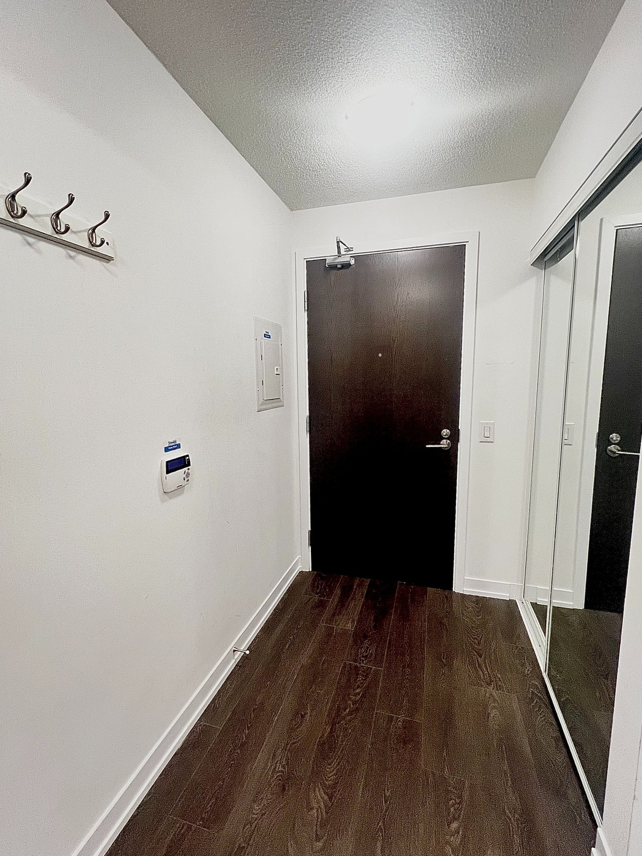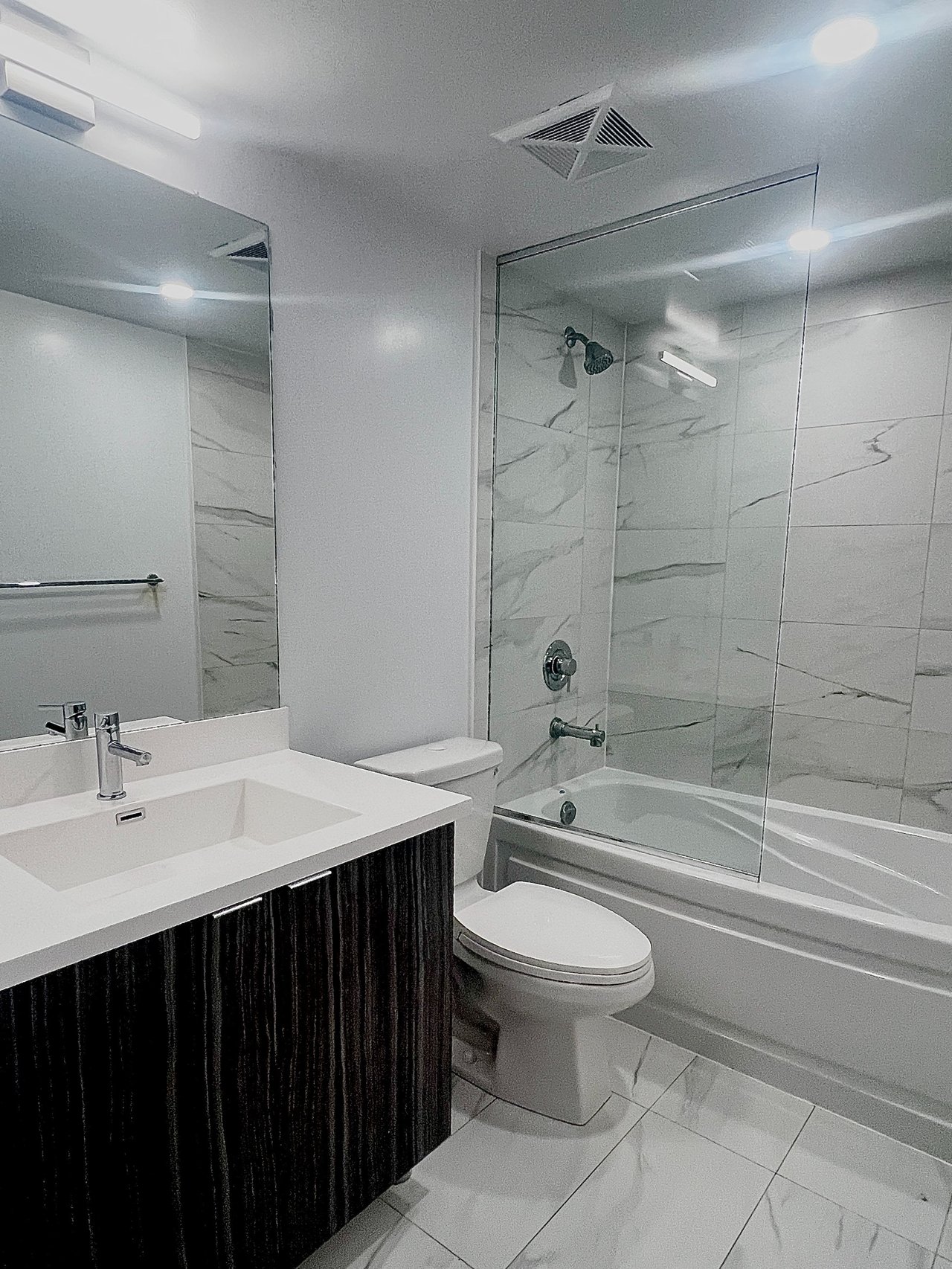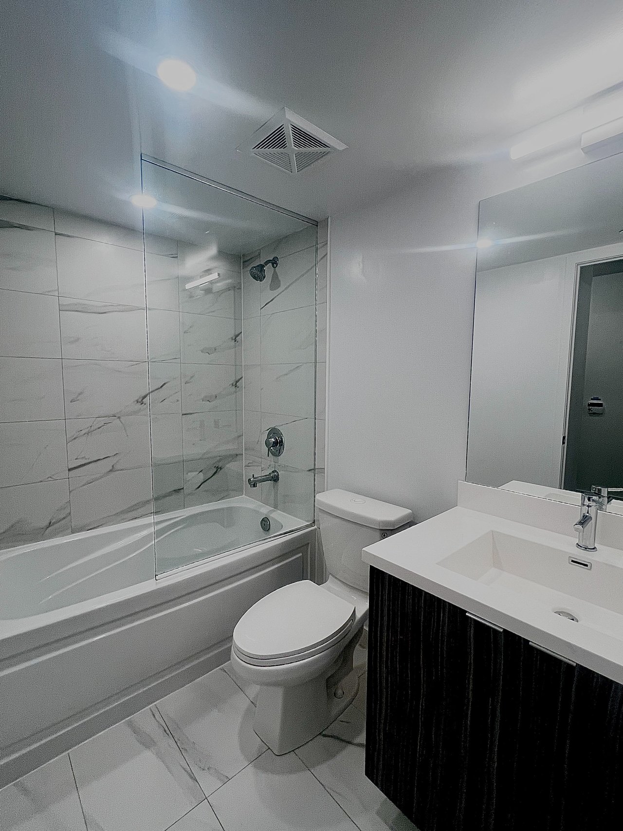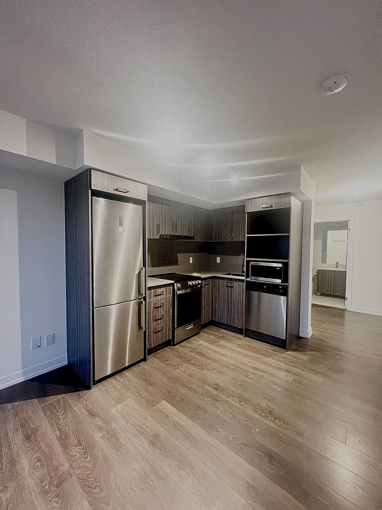 Brand New 1+1 Unit At In.De Condo By Menkes. Functional Layout, 2 Full Baths Unit; Large Den W/Windows Can Be Used As A Great Rm/2nd Br/Office. Large Balcony, Se Facing W/Clear City View. Model Design Kitchen W/Luxury Brand Of Appliances. Excellent Location. Close To Ryerson, Ut, Ocad And George Brown College. Short Walk To Dundas Sq & Eaton Centre, Door Steps For Street Car, Tim Hortons/Starbucks. Lots Of Shops And Restaurants. *1 Parking Included*