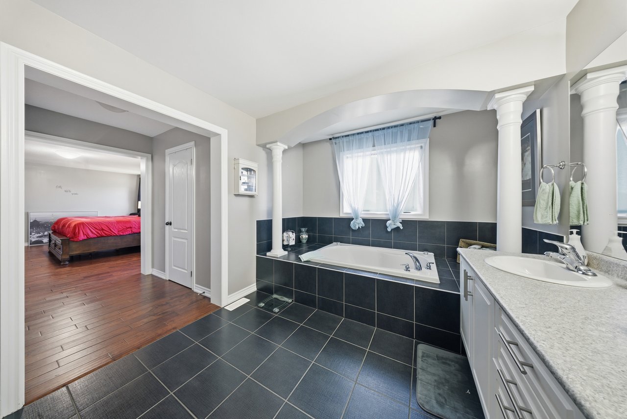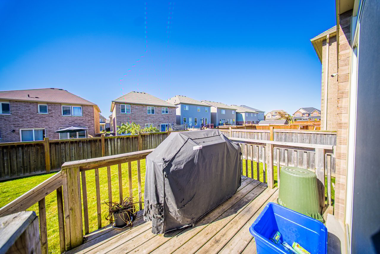 Discover this exceptional West Brant residence featuring 4 bedrooms, 2.5 bathrooms, and your own private backyard retreat! Thoughtfully designed and situated near parks, walking trails, and highly-rated schools. "Lanier Model" 4 Bedrooms. 2.5 bathrooms. 2864 sq. ft. Immaculate and Lovingly maintained Spacious foyer welcomes you home immersed in White oak hardwood throughout. Hardwood staircase w/wrought iron spindles, soaring 9 FT ceilings on main with Upgraded trim and baseboards. Open concept kitchen and great room. Separate dining / family room. Media room located off the kitchen. Eat in kitchen features breakfast bar ideal for hosting sizeable gathering dinette area, upgraded Eurodesign kitchen cabinetry, revosmosis water faucet, quartz counters, glass back splash and Dual pantries. Main floor 2 piece bath, mudroom /garage entry, Dlb car garage . Sliders open up to a deck and fully fenced yard. Second level features expansive primary suite includes a walk-in closet and spa-inspired ensuite. A large master bedroom with a spa like ensuite - soaker tub, Dlb sinks, glass shower and water closet. His/Her walk in closets and a secondary Junior suite and 2 additional generous sized bedrooms, a 4 piece main bath and bedroom level laundry. The basement is awaiting your finishing touches offering ample space for potential inlaw suite or separate apartment with larger windows, cold room and rough in. Conveniently located to everyday amenities. Schools, parks, trails and transit. Move in Ready! Just needs You! The exterior showcases impressive street presence with professionally landscaped garden, paved driveway. This turnkey property combines lifestyle, functionality, and easy-care living. Perfect for Growing Family.