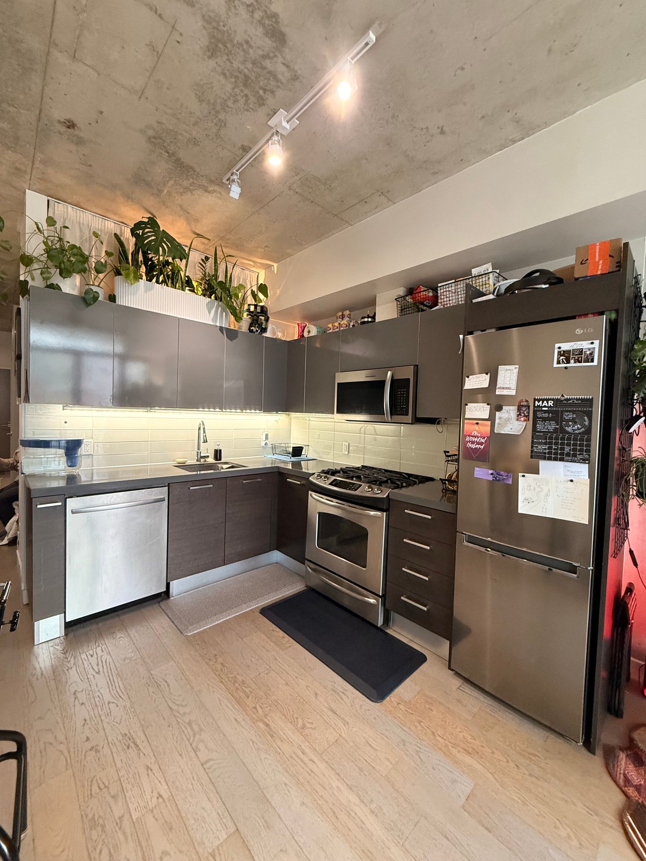 Beautiful Jr. One Bedroom At The Coveted Parc Lofts! Soaring 10' Exposed Concrete Ceilings And Multiple Concrete Feature Walls. Great Sized 'L' Shaped Kitchen With Full Sized Gas Range Oven, And Stainless Steel Appliances. Hardwood Floors Throughout And A W/O To A Beautiful West Facing Balcony With Gas Line & Bbq Included. Amazing boutique building with direct access to Stanley Park & steps to King West!